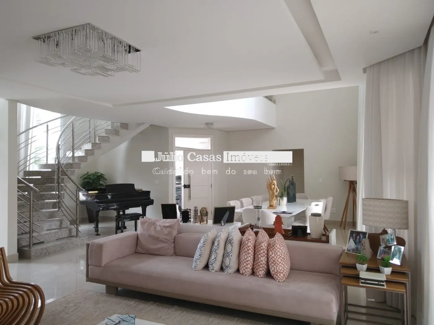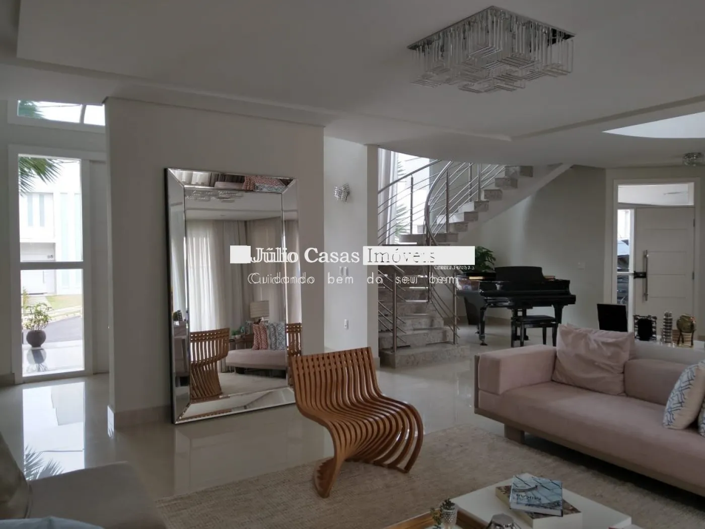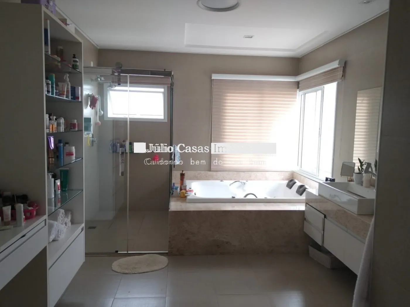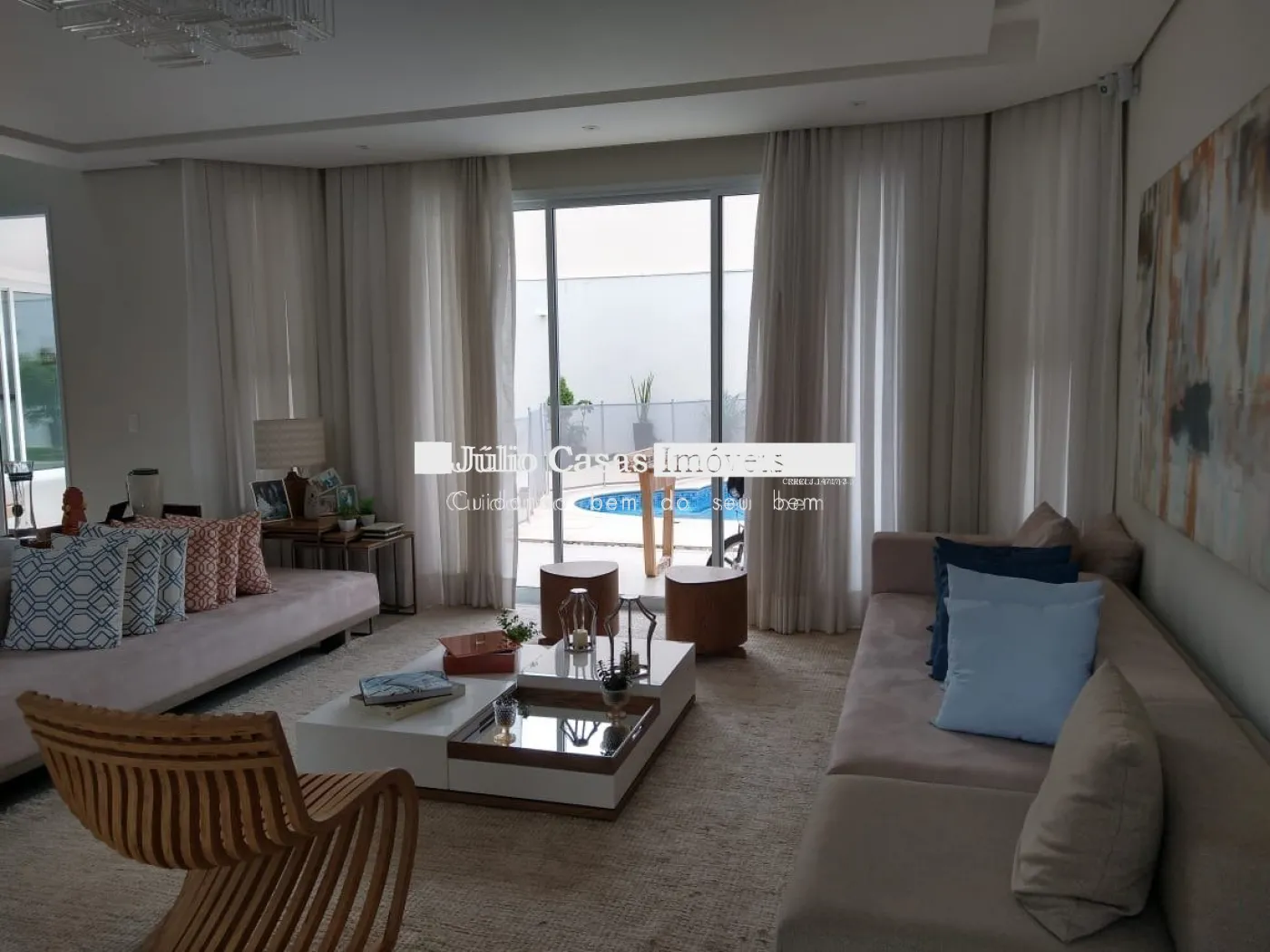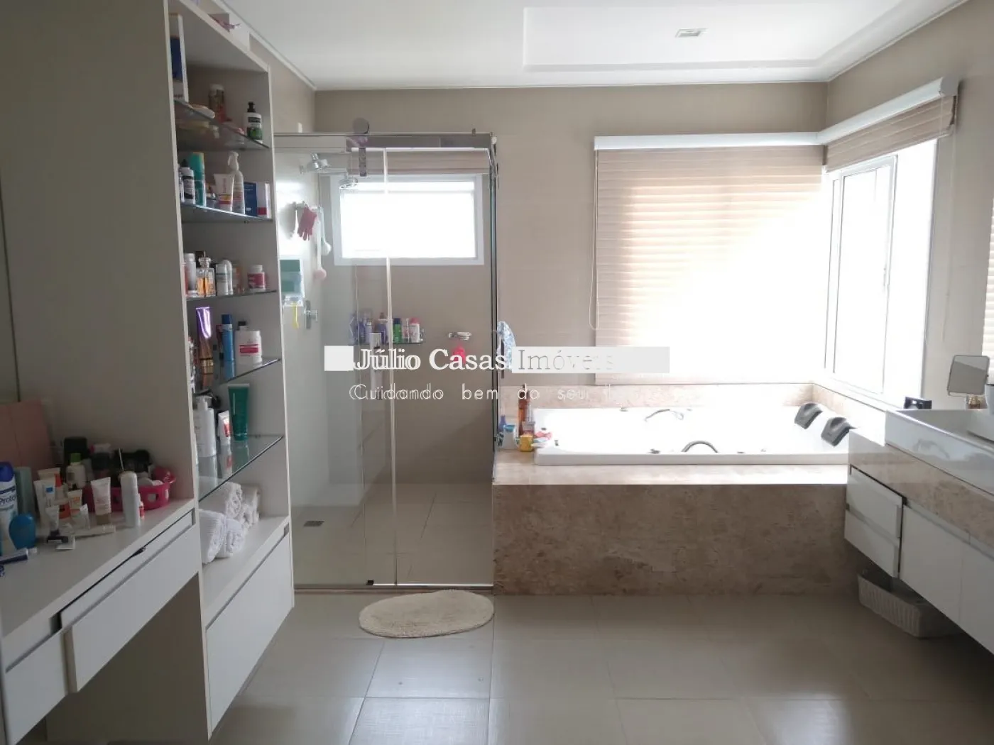 Casa modulada com sala 3 ambientes com pé direito 6 metros, integrada com a área gourmet com portas em alumínio branco e vidro temperado, proporcionando amplitude no ambiente, escritório com lavabo, 4 suítes uma sendo máster com varanda, hidro e duas duchas com duas cubas, toda em acabamento em porcelanato e gesso com closet.