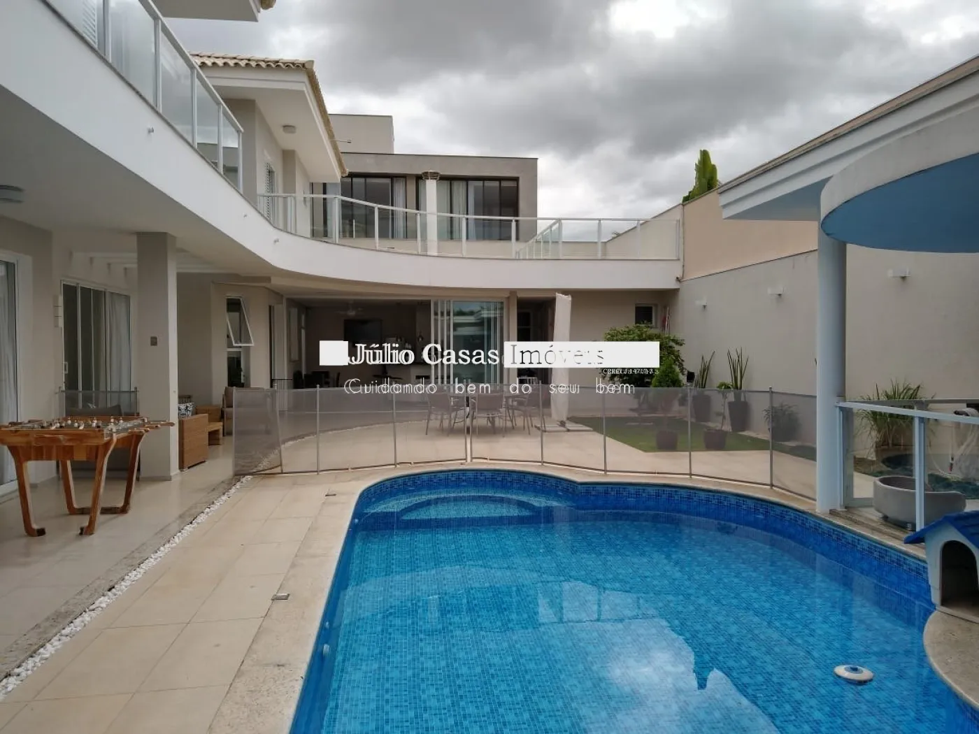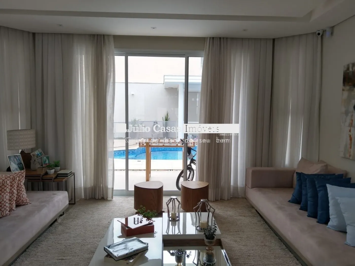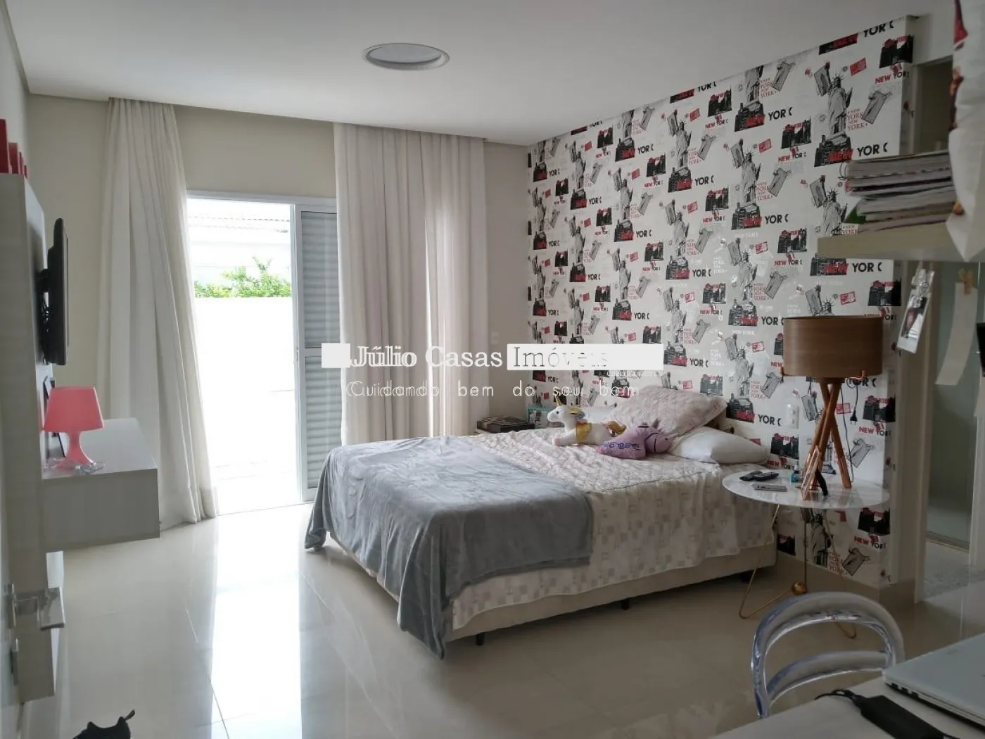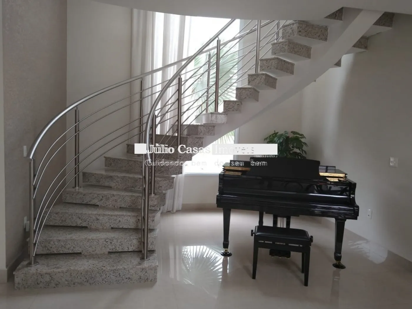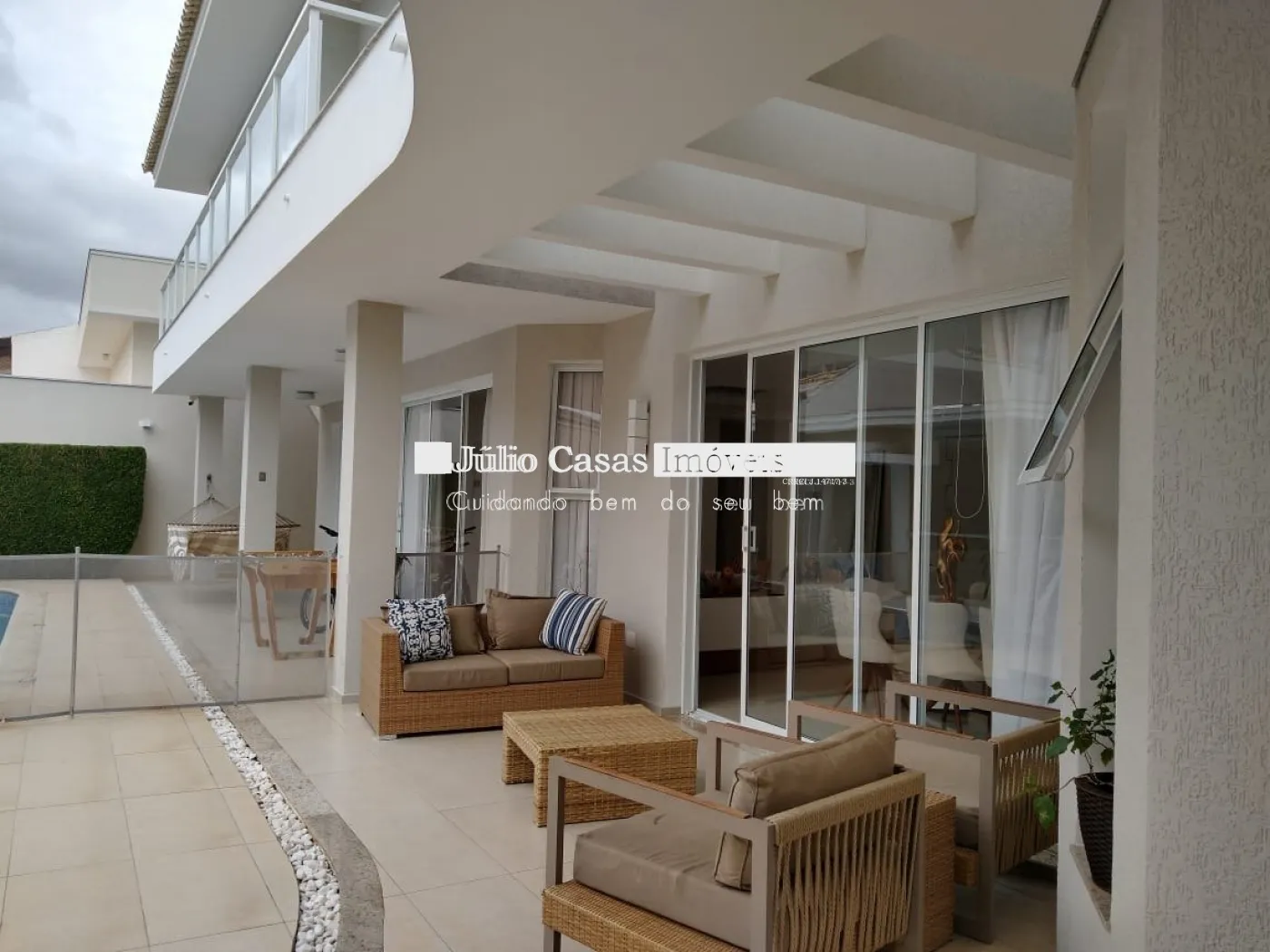 Casa modulada com sala 3 ambientes com pé direito 6 metros, integrada com a área gourmet com portas em alumínio branco e vidro temperado, proporcionando amplitude no ambiente, escritório com lavabo, 4 suítes uma sendo máster com varanda, hidro e duas duchas com duas cubas, toda em acabamento em porcelanato e gesso com closet.