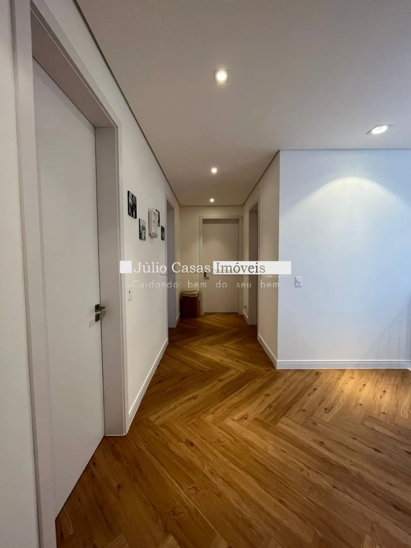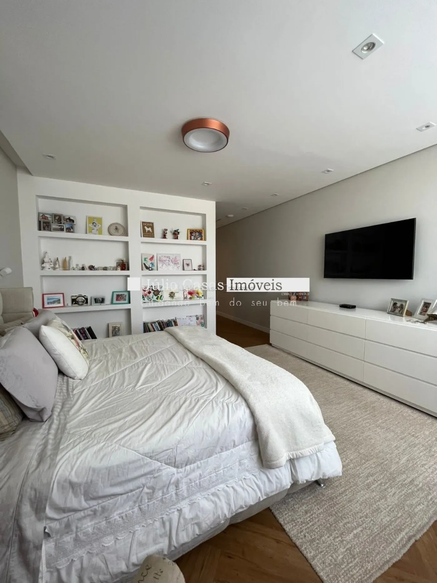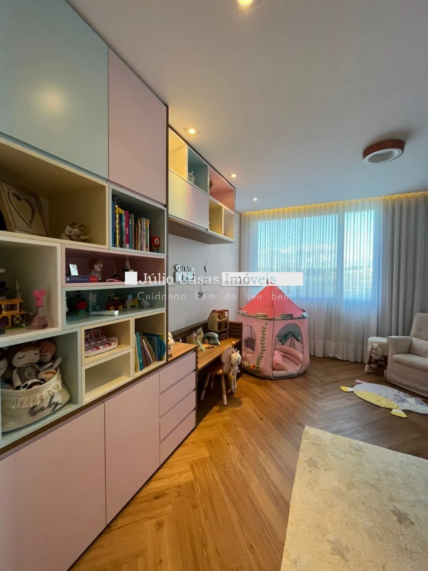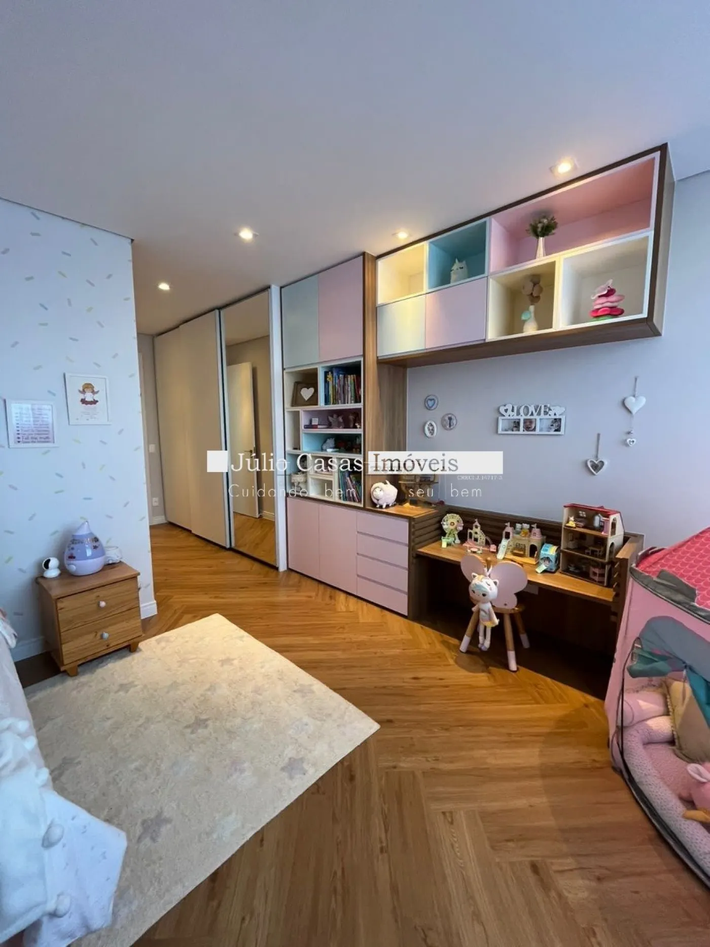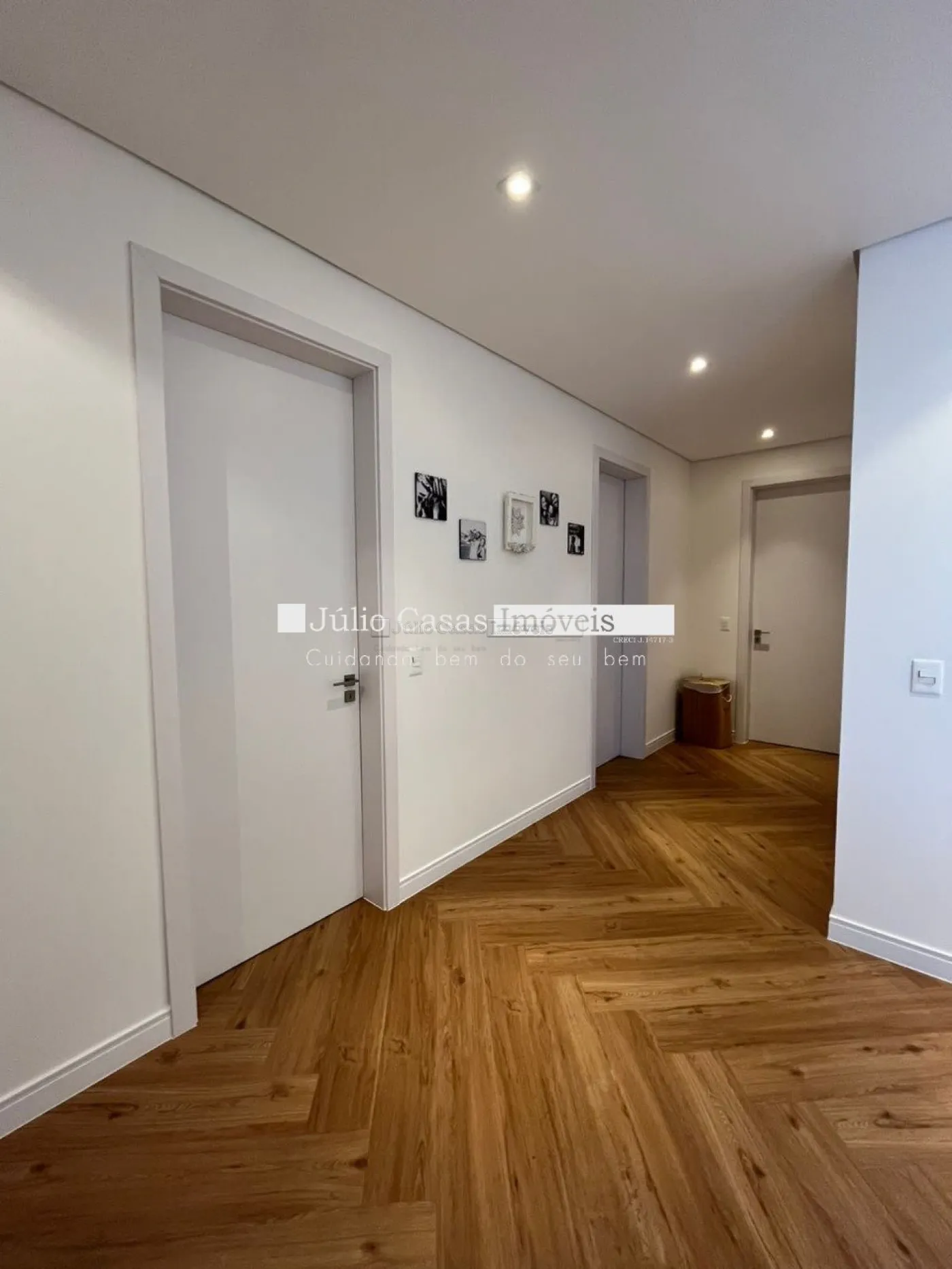 O andar térreo também conta com uma lavanderia espaçosa com ampla despensa, uma varanda técnica e um depósito de 30 m², oferecendo soluções práticas para o dia a dia. No andar superior, encontra-se uma ampla sala que serve como espaço de convivência, além de quatro suítes, sendo uma máster com closet e banheira, proporcionando um ambiente de luxo e conforto. O hall deste andar inclui um amplo roupeiro e um frigobar embutido, garantindo praticidade e sofisticação.