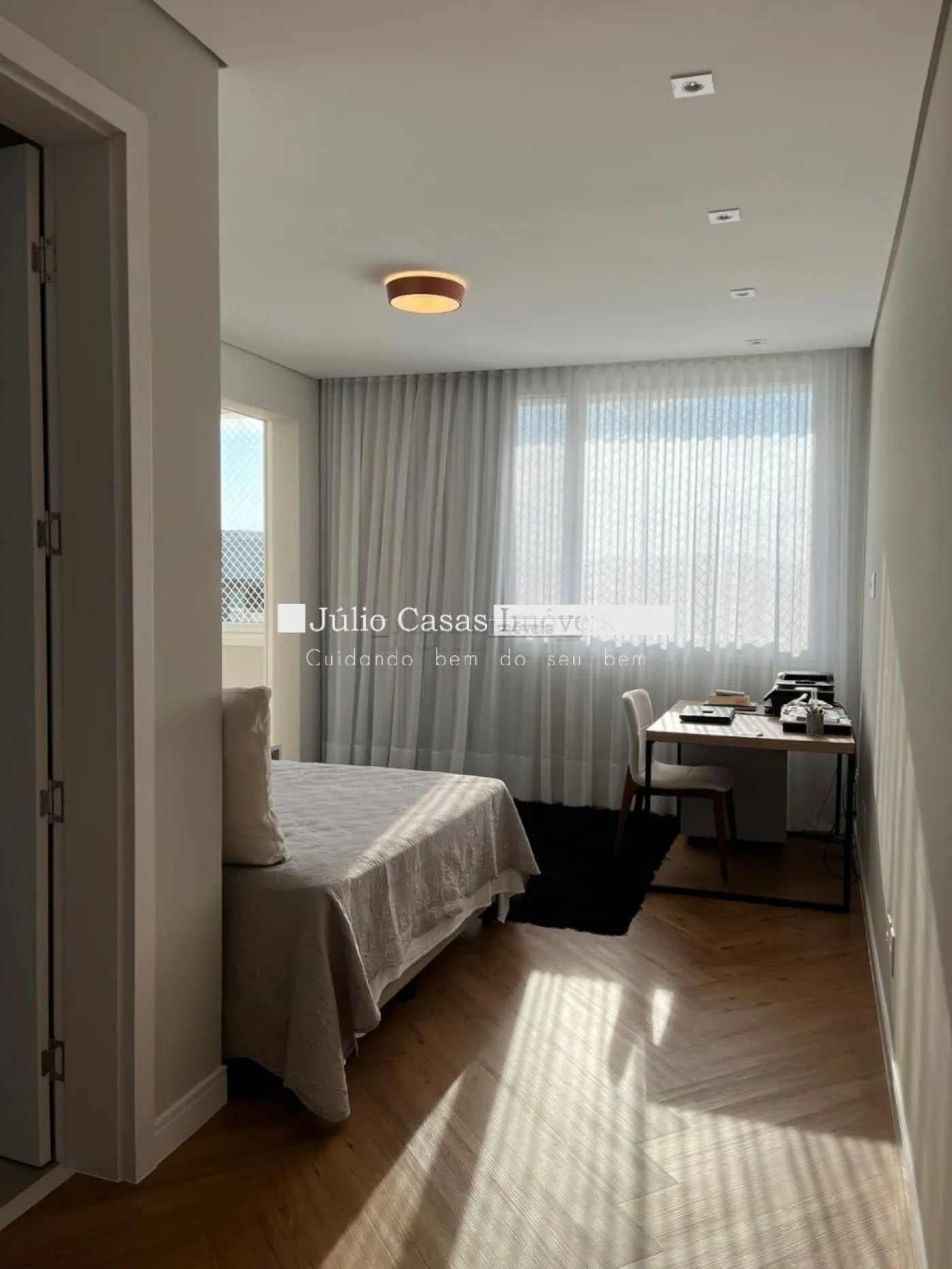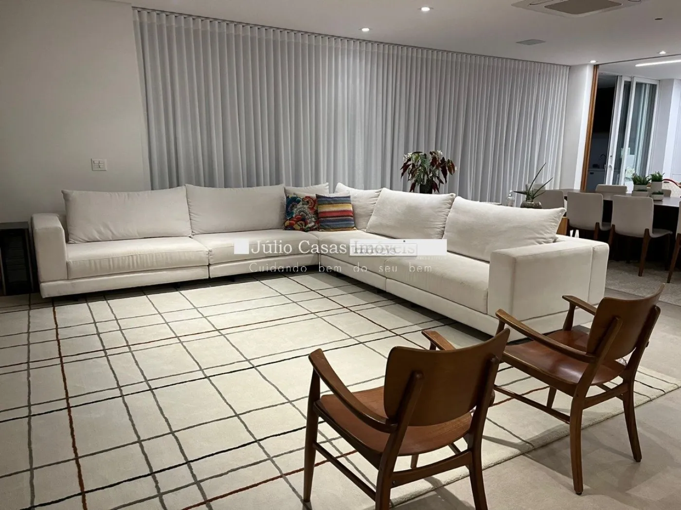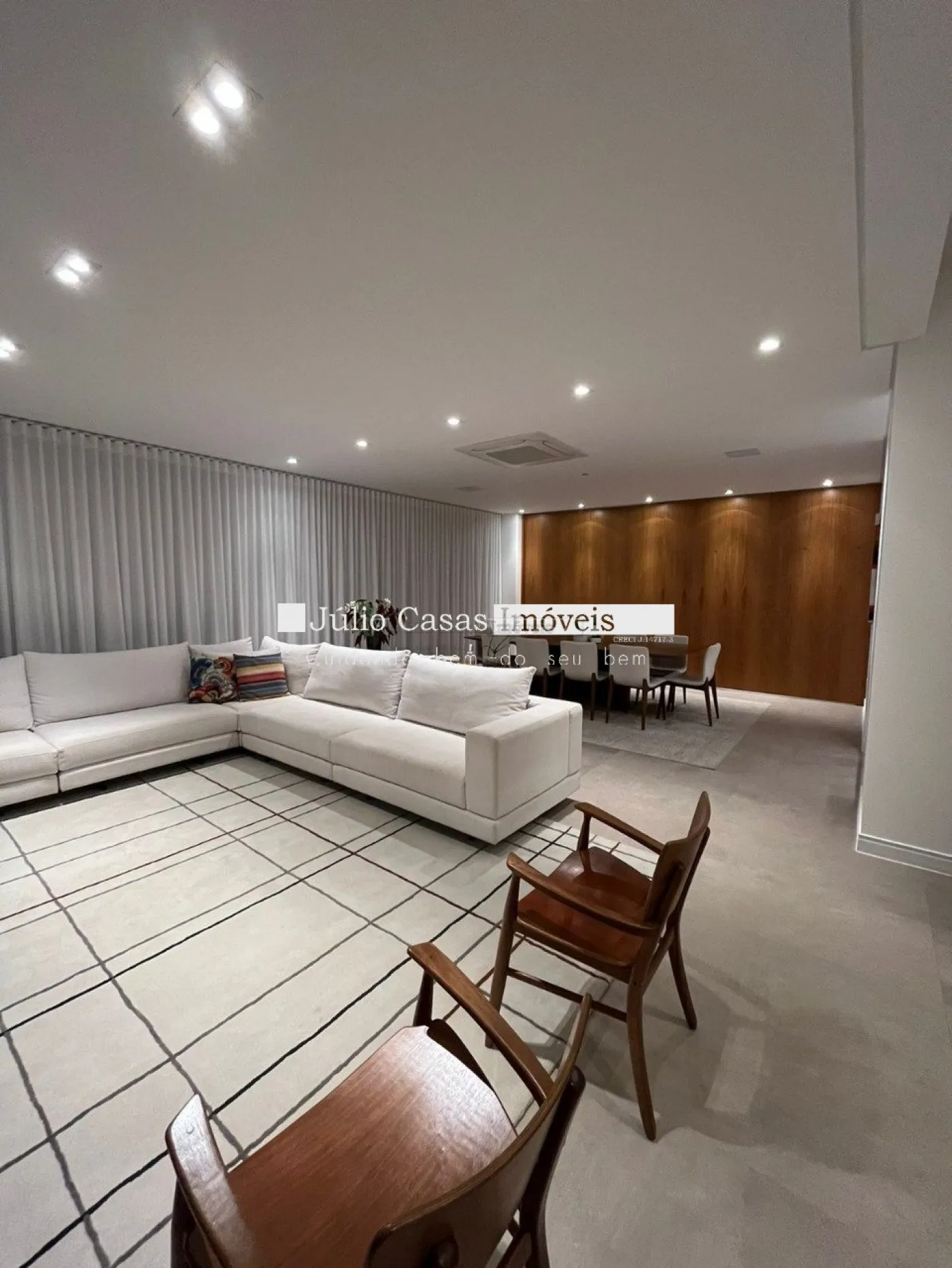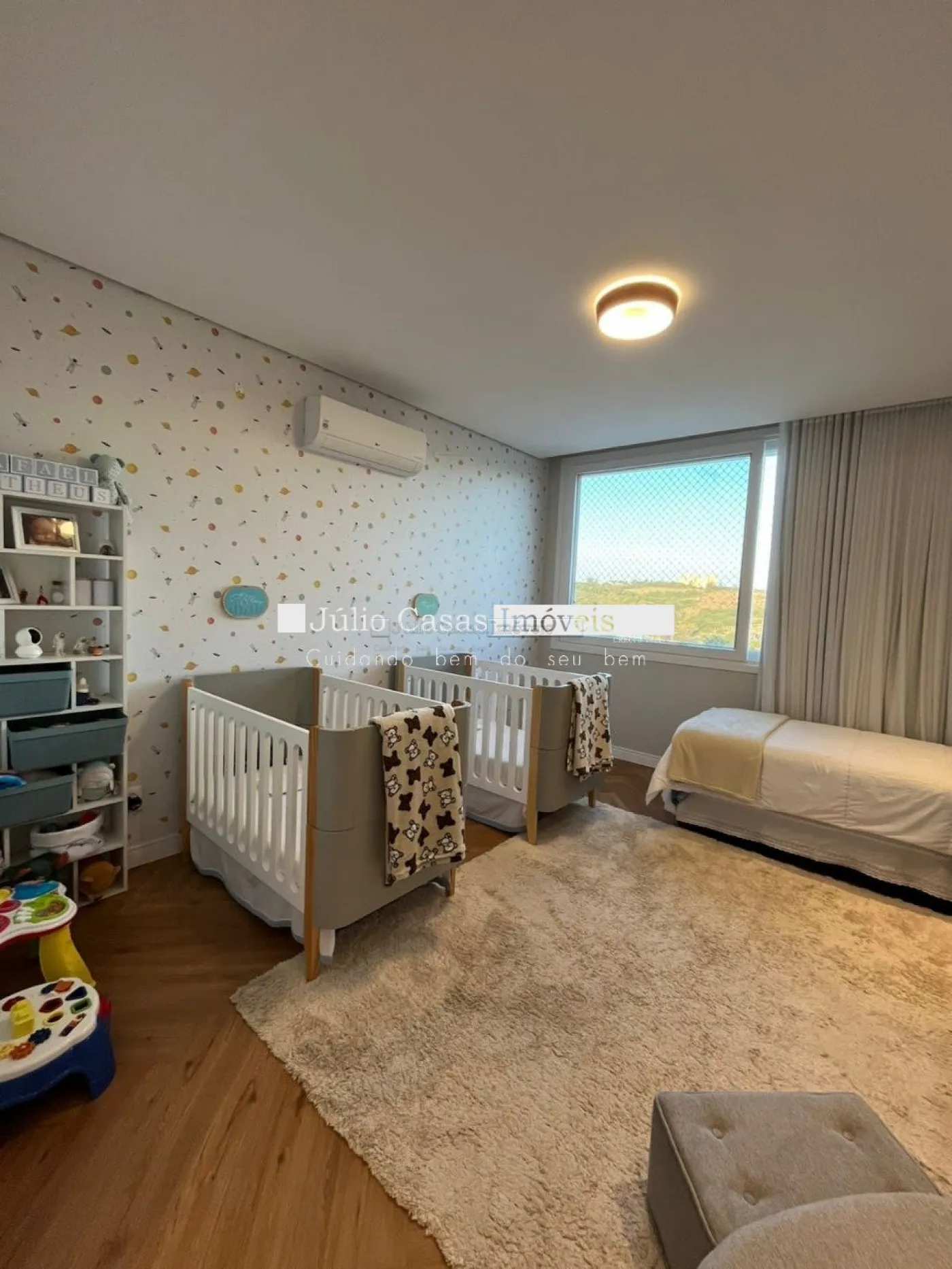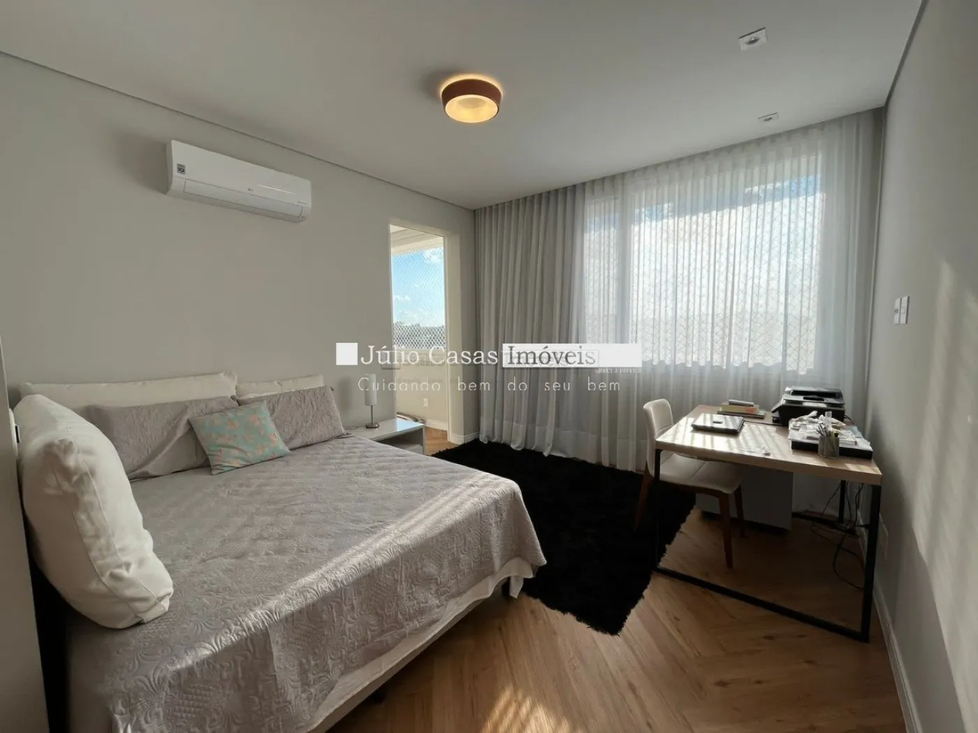 O andar térreo também conta com uma lavanderia espaçosa com ampla despensa, uma varanda técnica e um depósito de 30 m², oferecendo soluções práticas para o dia a dia. No andar superior, encontra-se uma ampla sala que serve como espaço de convivência, além de quatro suítes, sendo uma máster com closet e banheira, proporcionando um ambiente de luxo e conforto. O hall deste andar inclui um amplo roupeiro e um frigobar embutido, garantindo praticidade e sofisticação.