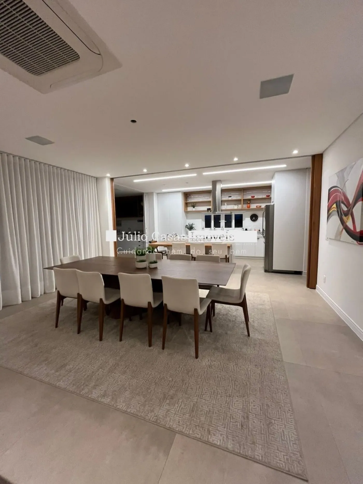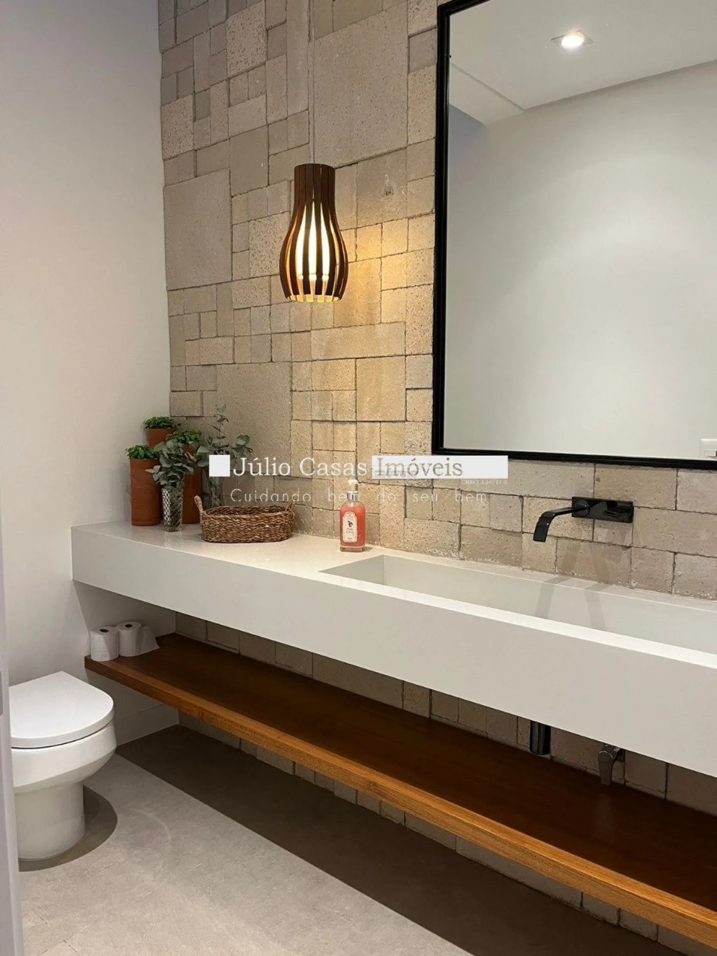 Esta linda casa em condomínio oferece uma experiência de vida contemporânea com suas áreas sociais integradas. A sala de estar e jantar apresentam um conceito aberto, conectando-se harmoniosamente com a cozinha totalmente modulada e a área gourmet. Esta área gourmet é equipada com balcão refrigerado, ilha, pia de apoio, churrasqueira e uma piscina aquecida com borda infinita, criando um espaço ideal para receber amigos e familiares. Para entretenimento, a casa possui um home theater com sistema de som instalado, além de um lavabo para conveniência dos convidados.