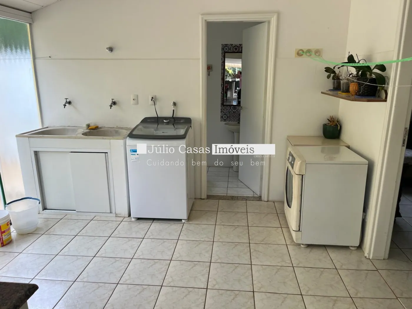 Área de serviço com banheiro e quarto. Corredor lateral dos 2 lados.