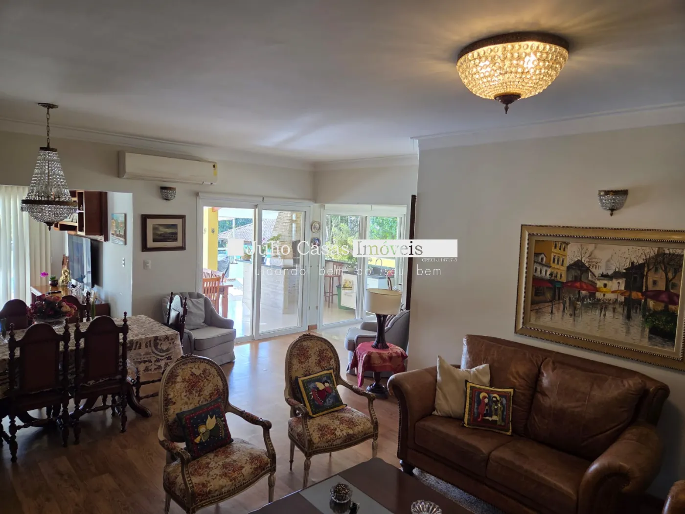 Sala de tv, sala de estar, jantar e copa.