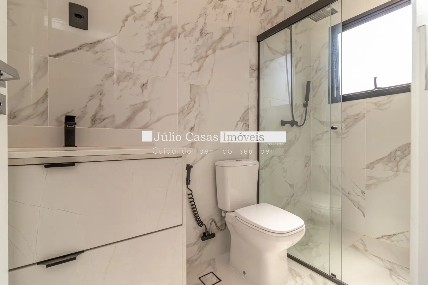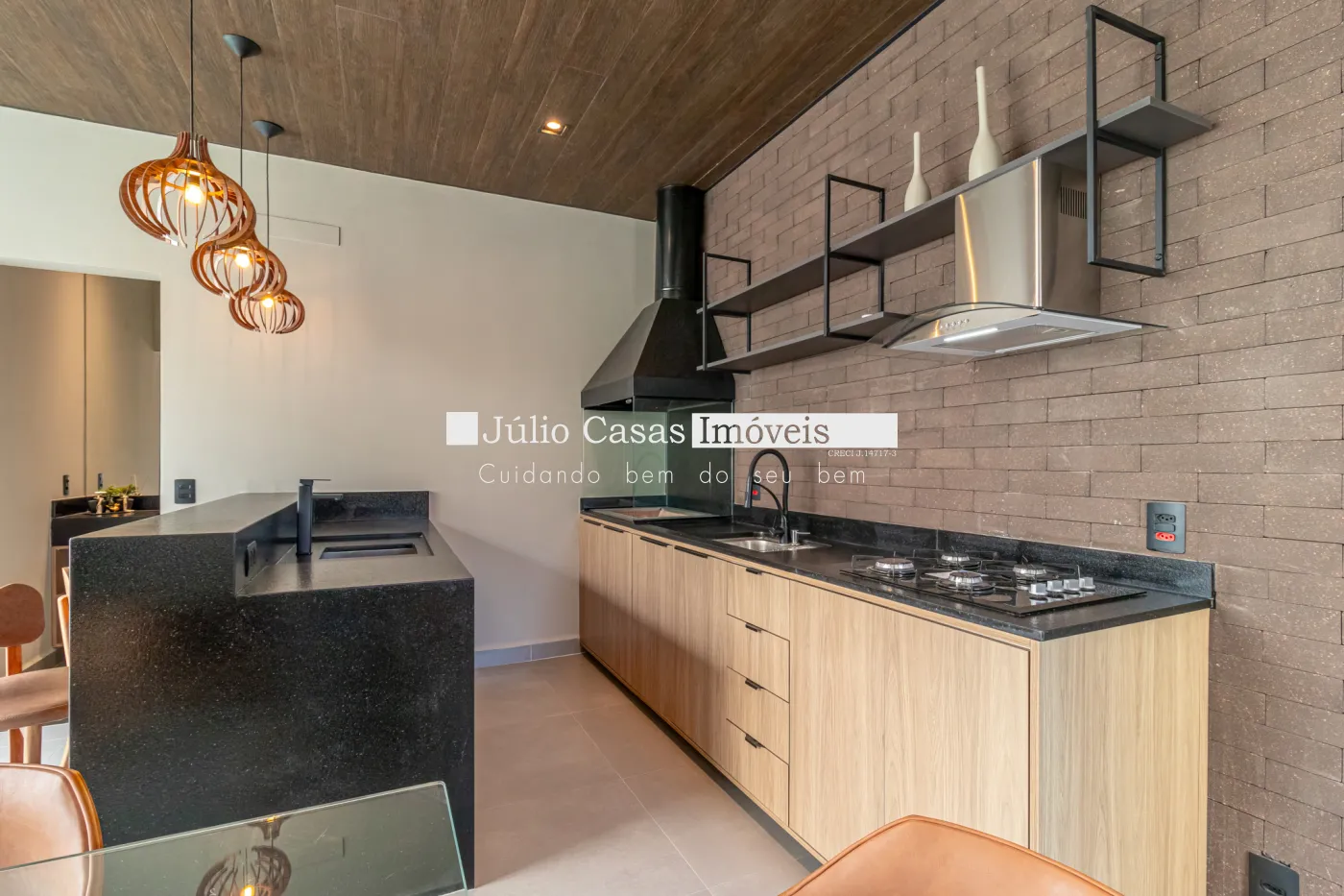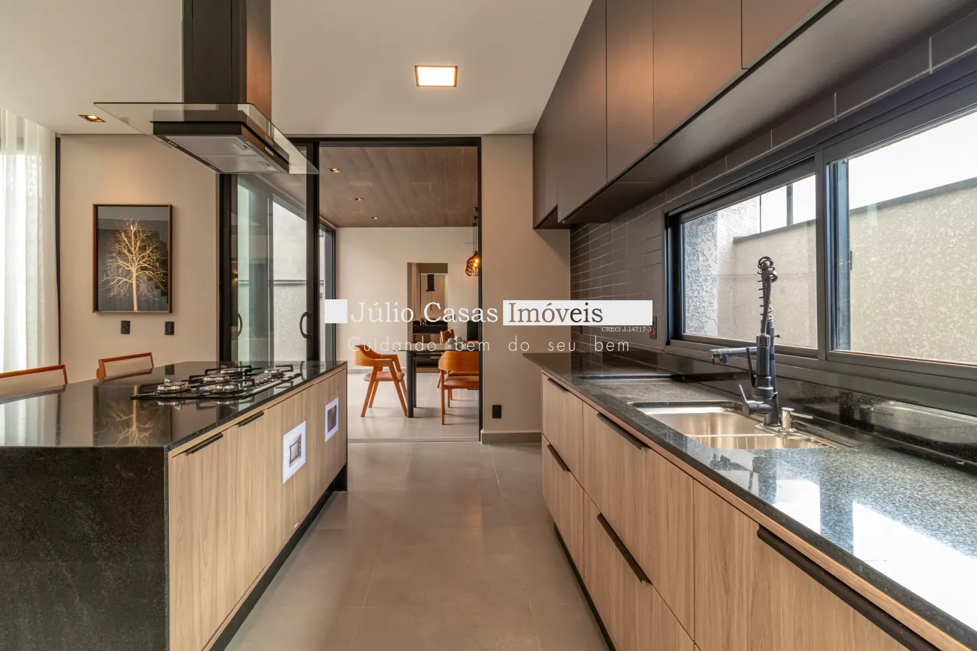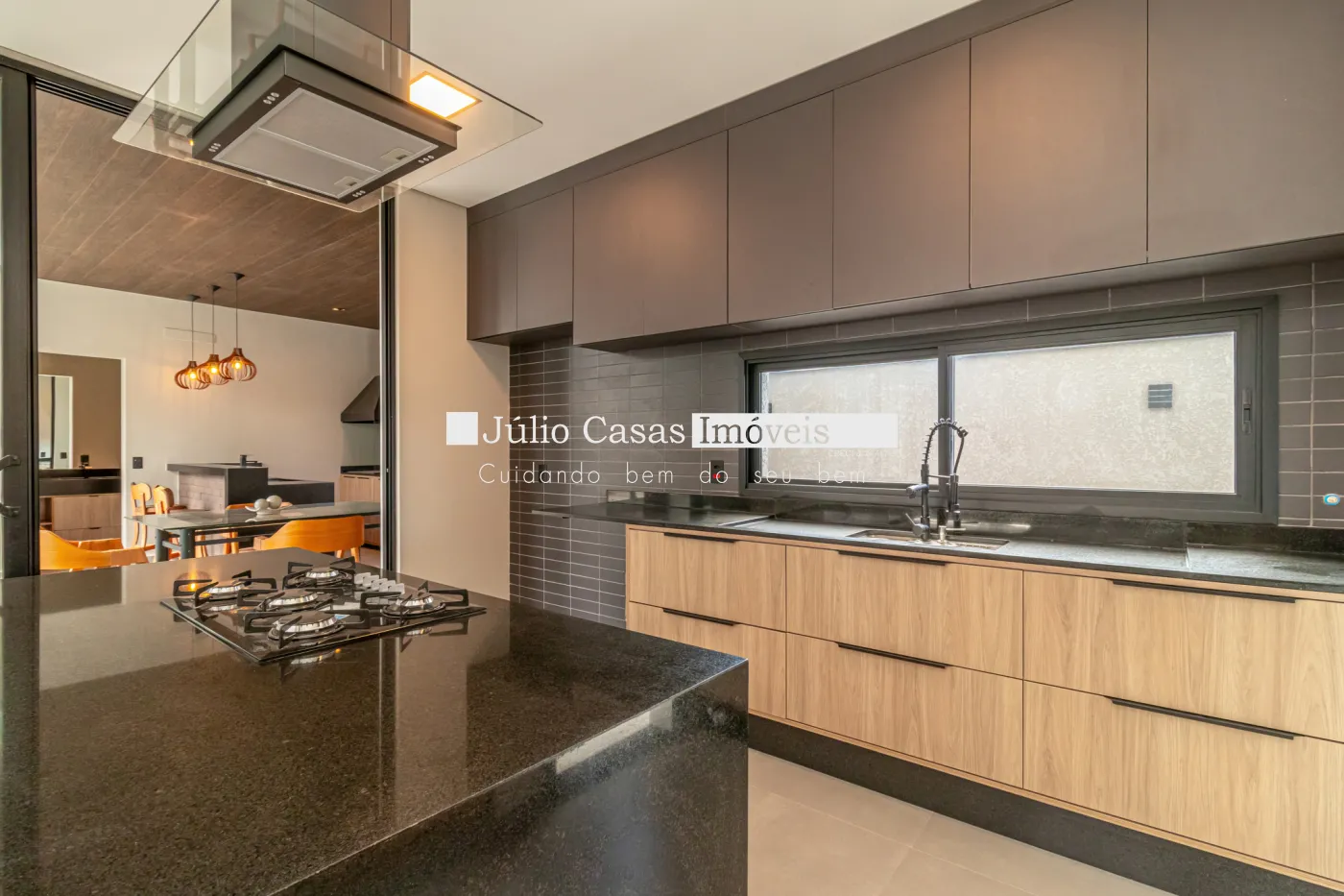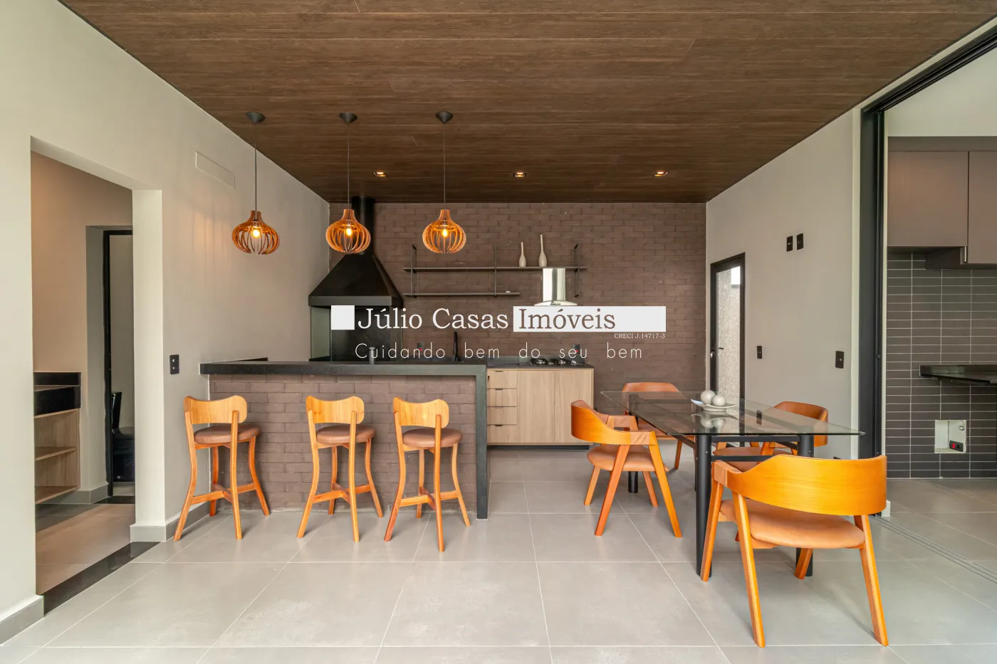 Requinte, qualidade e riqueza nos acabamentos. Possui 03 suítes no piso superior, sendo uma master (closet e banheira) e as outras com closet. No piso inferior possui um escritório, reversível para uma suíte, Lavabo andar térreo Armários planejados na casa completa. (Quartos, banheiros, cozinhas, despensa, lavanderia, sala TV), pisos em porcelanato acetinado cinza, piso vinifico nos dormitórios superiores cor madeira e rodapé polipropileno branco, todas as suítes com janelas amplas e automatizadas para maior iluminação e ventilação, esquadrias de alumínio linha Gold cor preta , portas dos dormitórios e banheiros na cor branco fosco, aquecedor solar e rede de água pressurizada e quente nas torneiras dos dormitórios, cozinha e espaço gourmet, preparação para ar-condicionado (suítes, sala estar, gourmet), banheiros com lavatórios em mármores , cozinha ampla ilha com cooktop, área Gourmet com ilha, cooktop, chopeira e churrasqueira, banheiro para atender o espaço gourmet e piscina, piscina com 10,85 m², com aquecimento solar e iluminação de LED, fachada diferenciada com BRISE em alumínio na cor madeira, circulação dos quartos com piso porcelanato e guarda corpo em vidro temperado , jardim com paisagismo na frente da casa, lavanderia espaçosa com bancada em granito, porta de entrada principal com fechadura digital, banheiros serão entregue com box, armário para despejo nos fundos, Garagem com ponto de preparação para carregador de carro elétrico