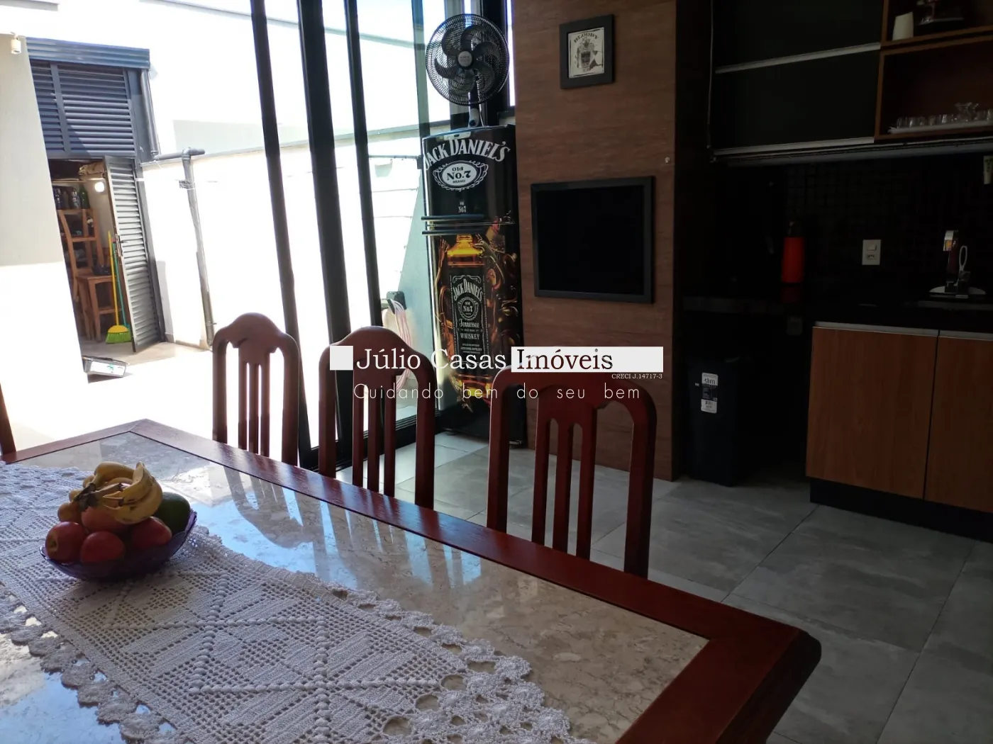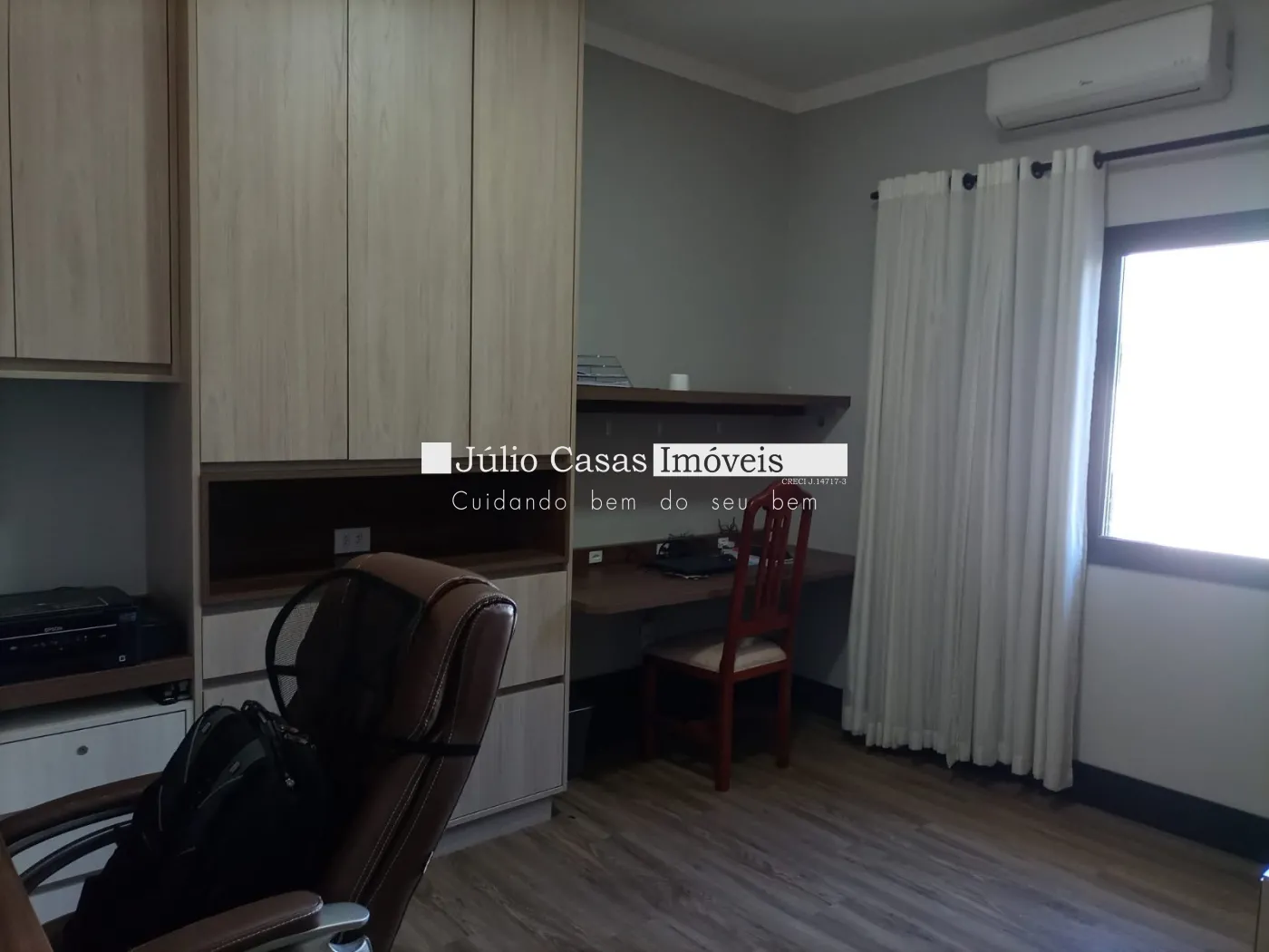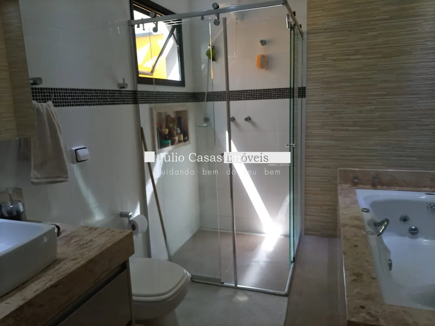 Com ampla sala em dois ambientes, pé direito alto forro em gesso com luminárias em LED embutidas e piso em porcelanato. Cozinha com balcão de granito preto absoluto, com gabinete sob a pia, paredes azulejadas até o teto. Anexa área gourmet completa com churrasqueira e fechada com portas deslizantes de alumínio e vidro. Três confortáveis suítes, todas com modulados e ar condicionado, sendo a master com banheira de hidromassagem. Localizada em condomínio clube completo, próximo a comércios em geral como, supermercados, restaurantes e farmácias. Com fácil acesso à rodovia Raposo Tavares.
