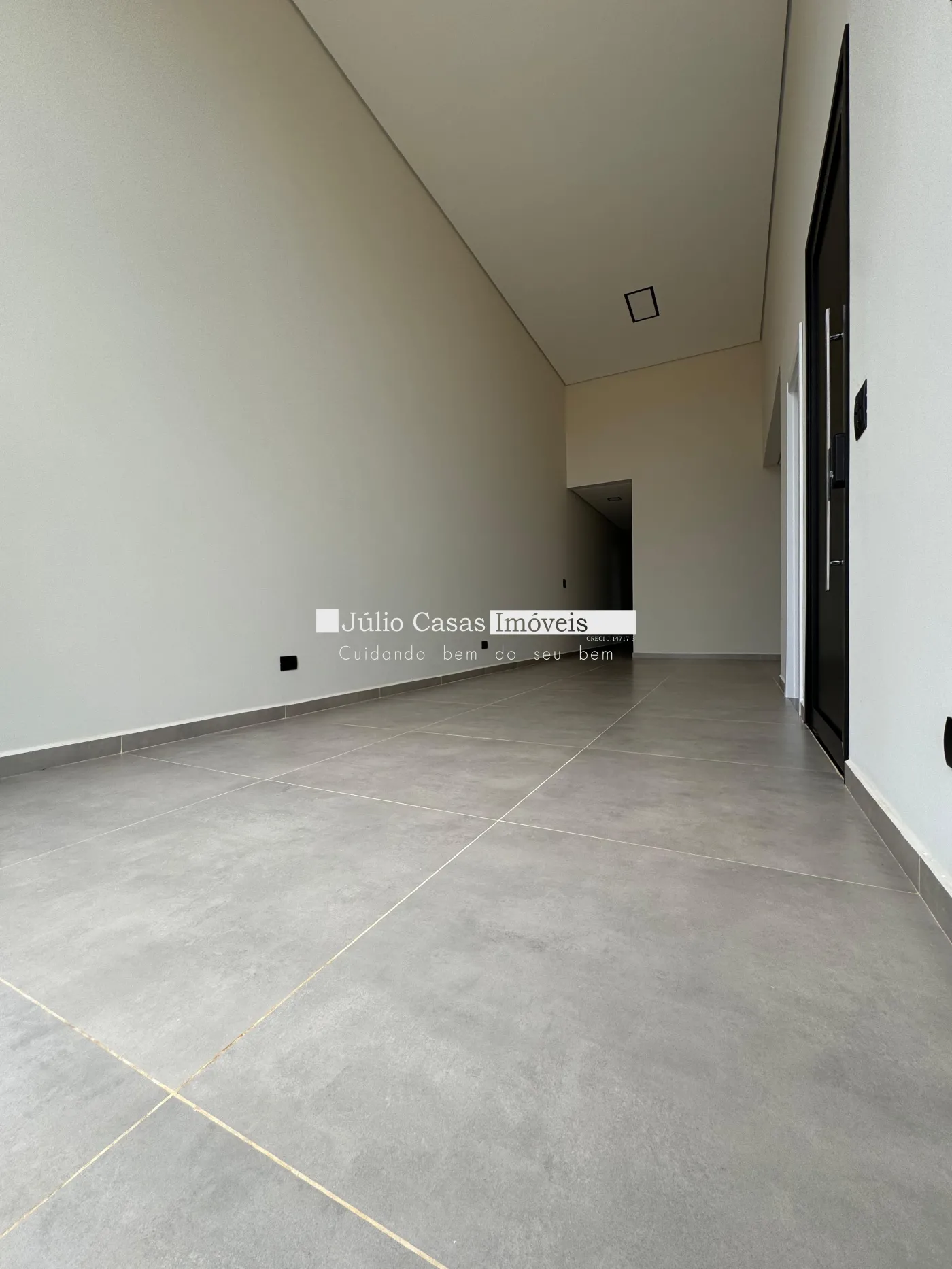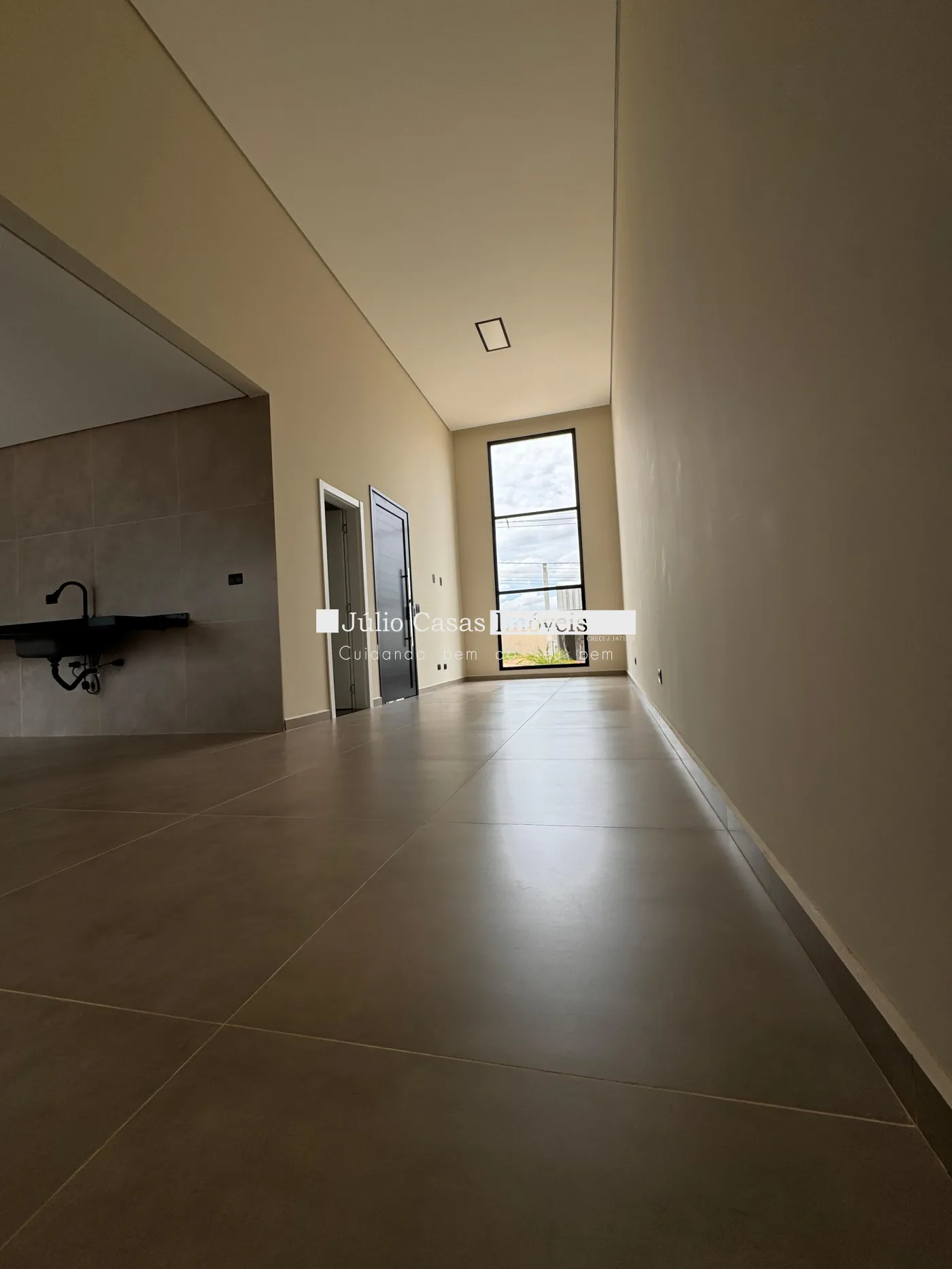 Casa térrea com sala ampla, cozinha integrada com a sala, área gourmet com churrasqueira, 3 quartos 1 sendo suíte com espaço para closet, wc social, quartos em piso laminado, banheiros com pia sobreposta e nicho, revestimentos e pisos em porcelanato.
