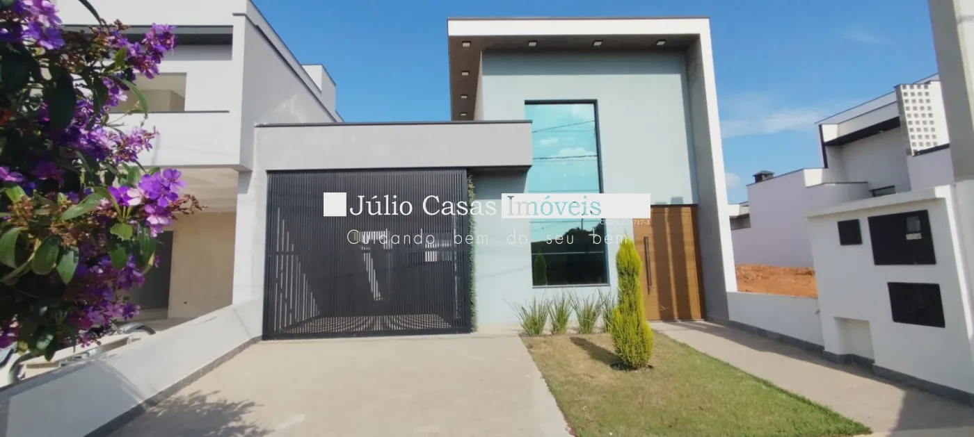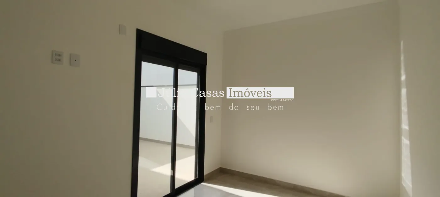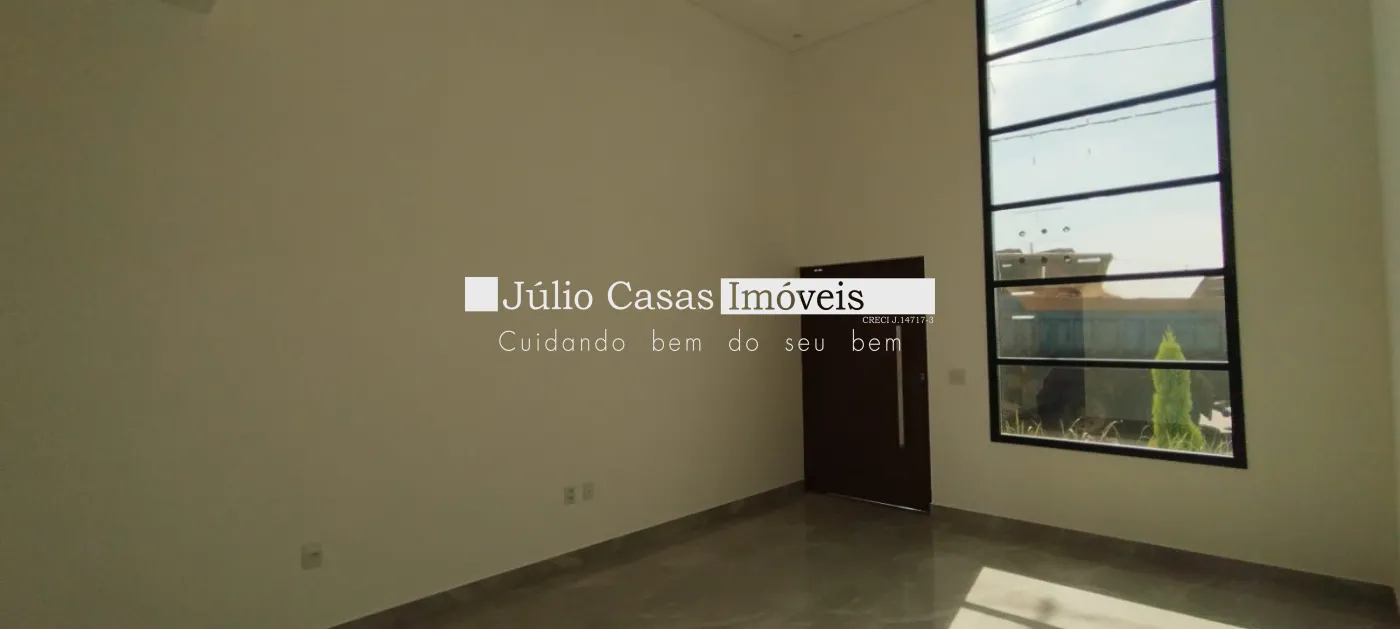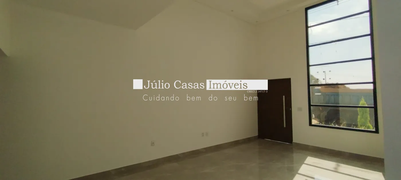 Casa térrea nova em condomínio com sala ampla com pé direito alto para 02 ambientes (sala de estar e jantar).