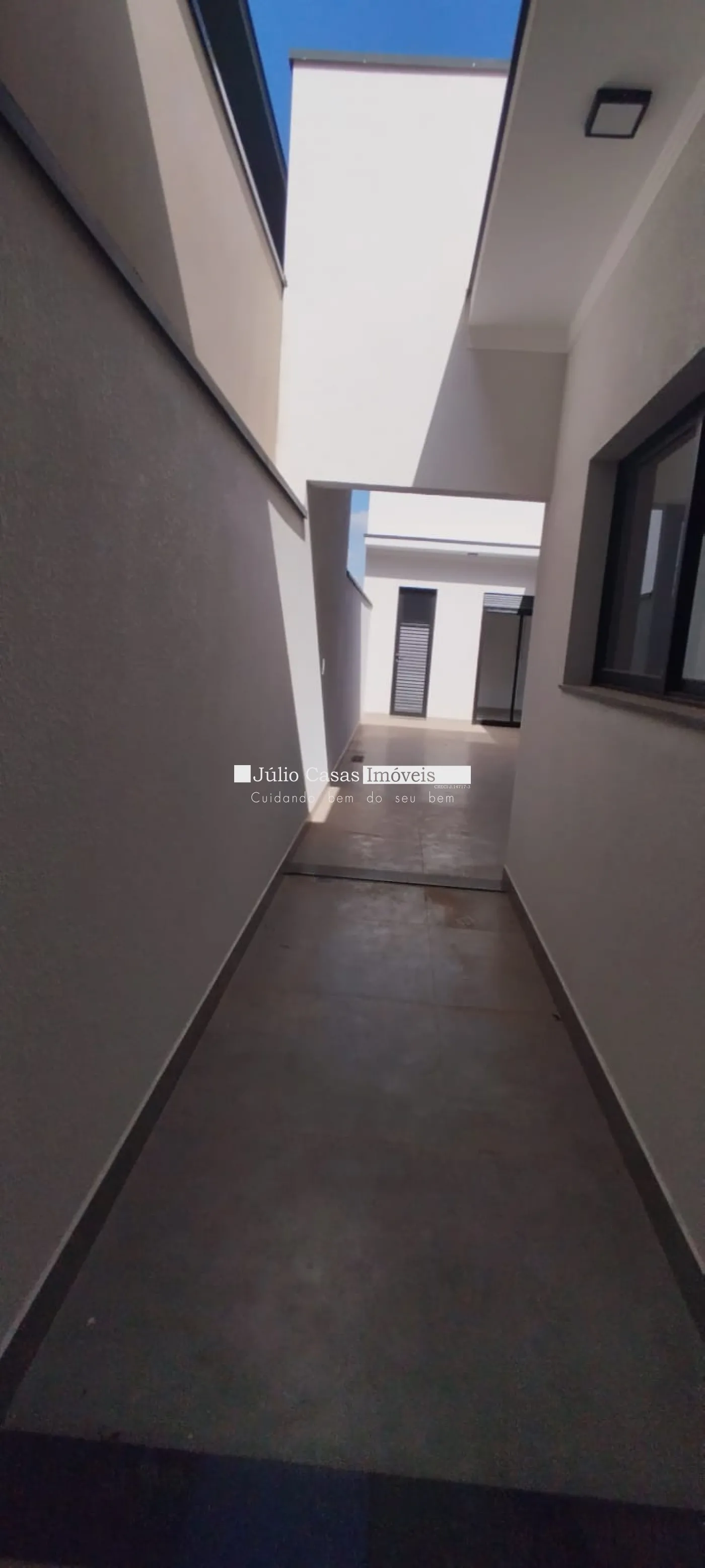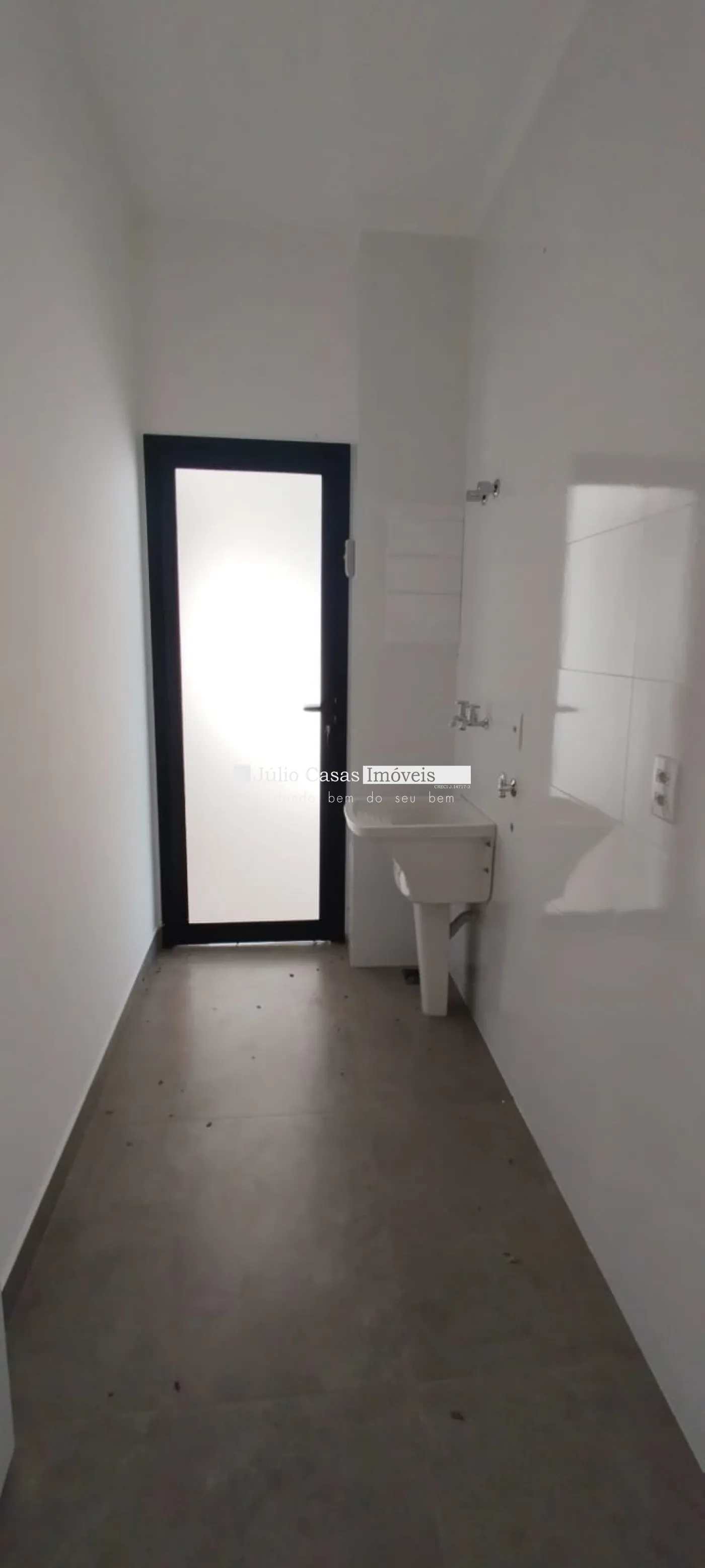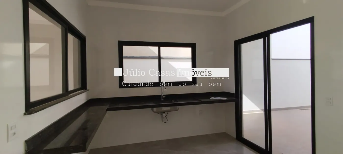 Casa térrea nova em condomínio com sala ampla com pé direito alto para 02 ambientes (sala de estar e jantar).