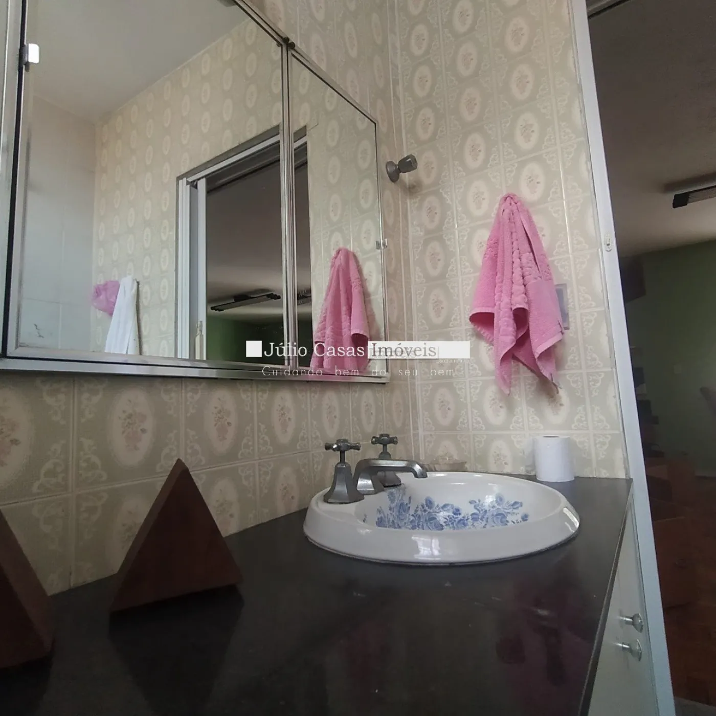 O piso inferior da casa, contém uma garagem com 3 vagas sendo 1 coberta, uma ampla sala de TV, com ótima ventilação e iluminação com luz natural, um lavabo, uma espaçosa lavanderia com armários e azulejo até o teto, uma confortável sala de jantar, com muita claridade e ventilação, uma ampla cozinha, com azulejo até o teto e pia com gabinete, quintal com piso cerâmico, no fundo do terreno uma edícula com banheiro também com azulejos até o teto e lavanderia, ainda no térreo uma confortável suíte, o piso inferior da casa todo em piso cerâmico.