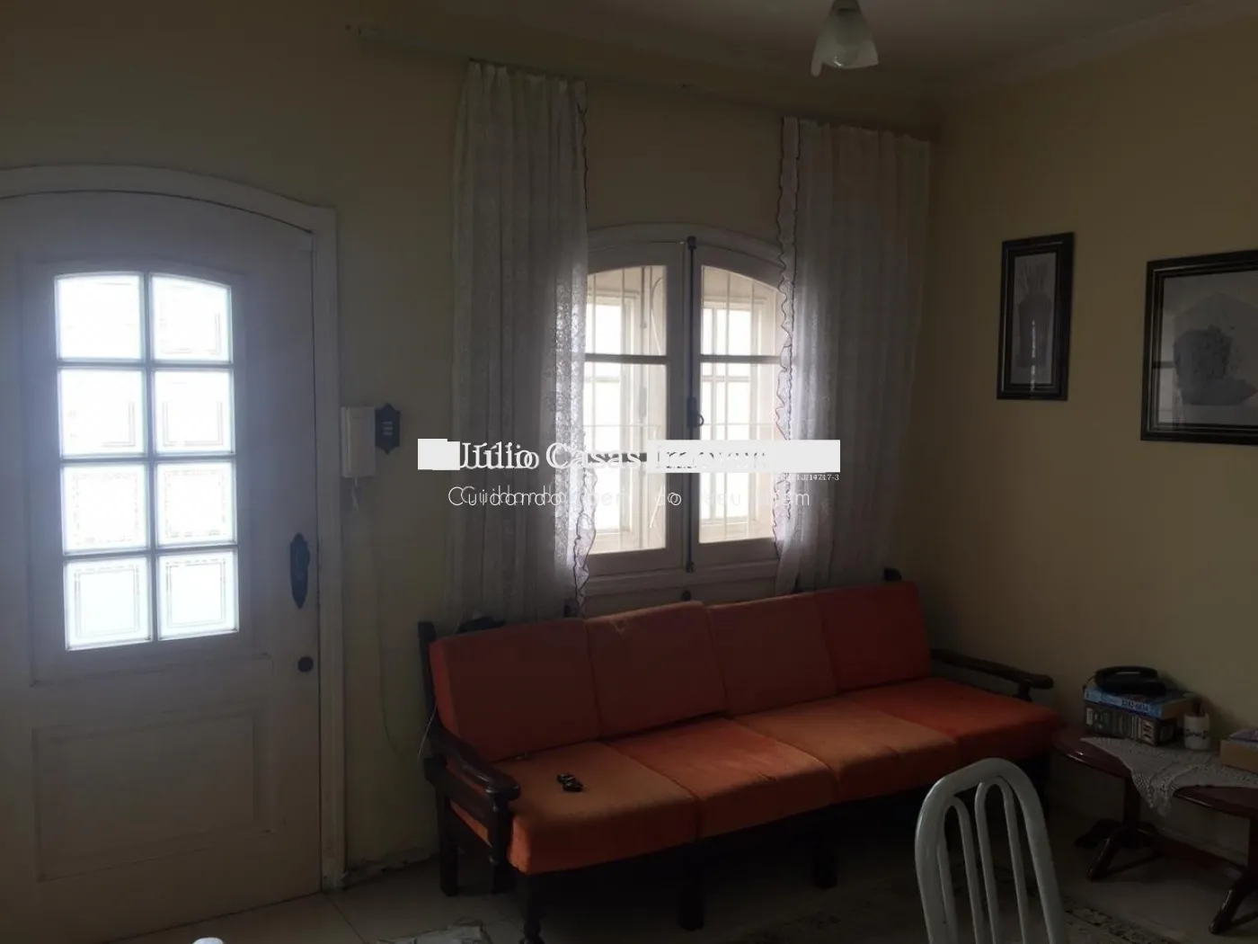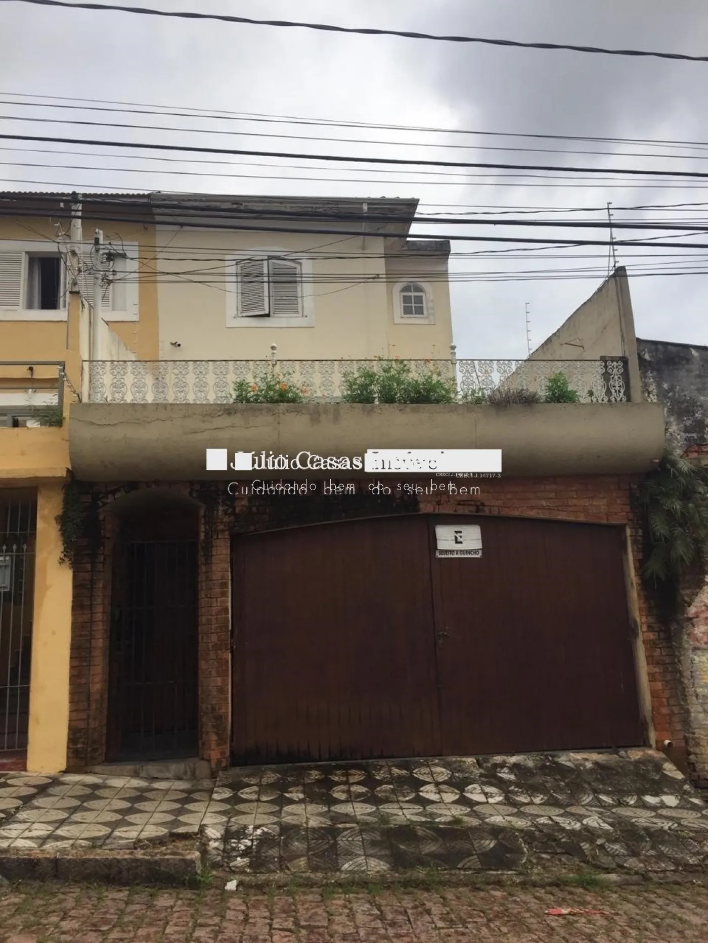 Sobrado com sala para 2 ambientes, cozinha com armários embutidos, 1 wc, 1 dormitório, andar superior com 2 dormitórios e wc social.