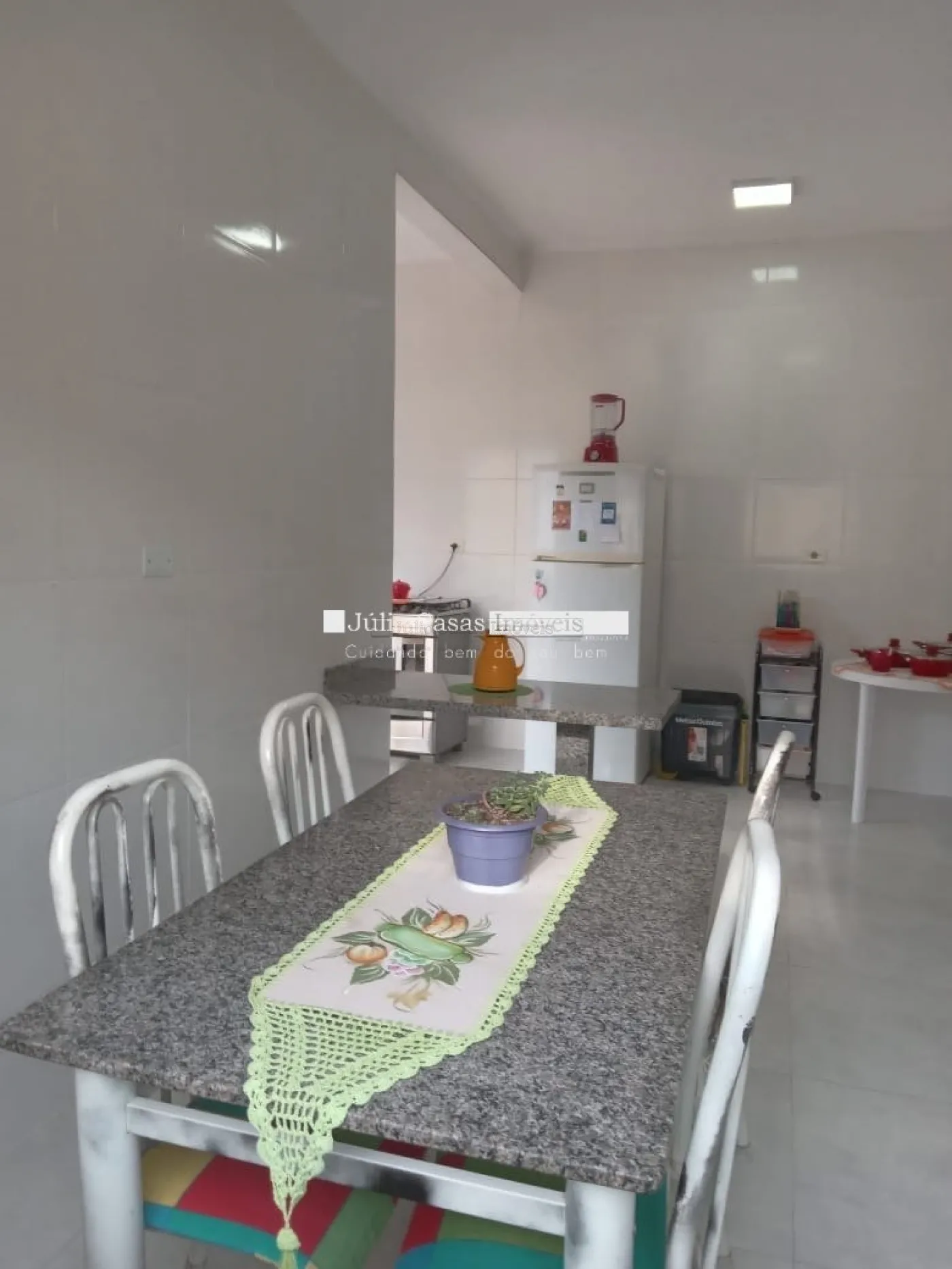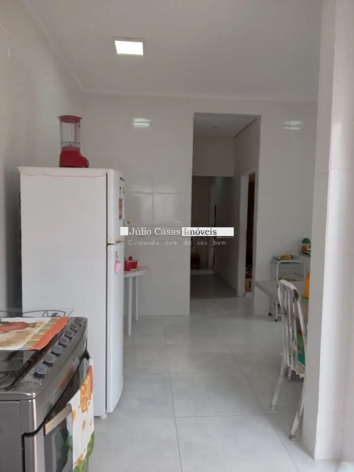 No piso térreo, garagem coberta para dois veículos, sala com piso em porcelanato polido, parede em 3D, teto rebaixado em gesso com luminárias em LED embutidas, ampla copa cozinha com paredes azulejadas até o teto e piso em porcelanato de 60x60cm, balcão de apoio e pia em granito cinza Corumbá, com cuba em inox e torneiras de água quente e água fria. Amplo quintal com churrasqueira, lavanderia e preparação para a instalação de piscina, corredor lateral com acesso pela garagem. Dois amplos dormitórios com forro em gesso, luminárias em LED, janelas venezianas em aço e piso em revestido em porcelanato. Banheiro social com forro em gesso, luminárias em LED embutidas, pia com balcão em granito preto Indiano, cuba em porcelana e box em vidro temperado. No andar superior amplo salão para festas, com janelas de correr em vidro temperado, dois dormitórios e banheiro social. A casa conta ainda com instalação de gás natura que fornece água quente aos banheiros. Em ótima localização com fácil acesso à avenida Américo Figueiredo, próximo a escolas estadual e municipal e a comércios em geral.