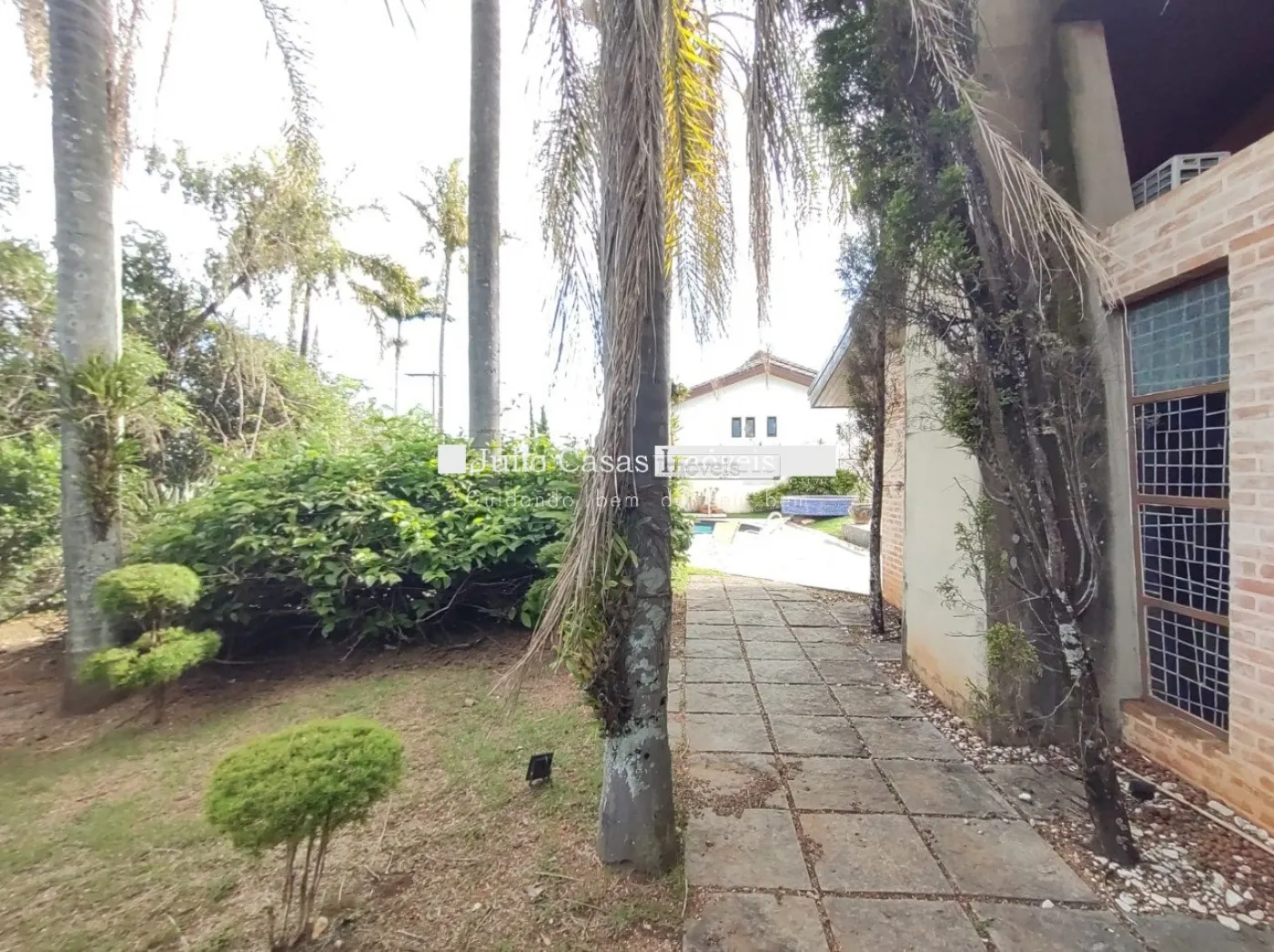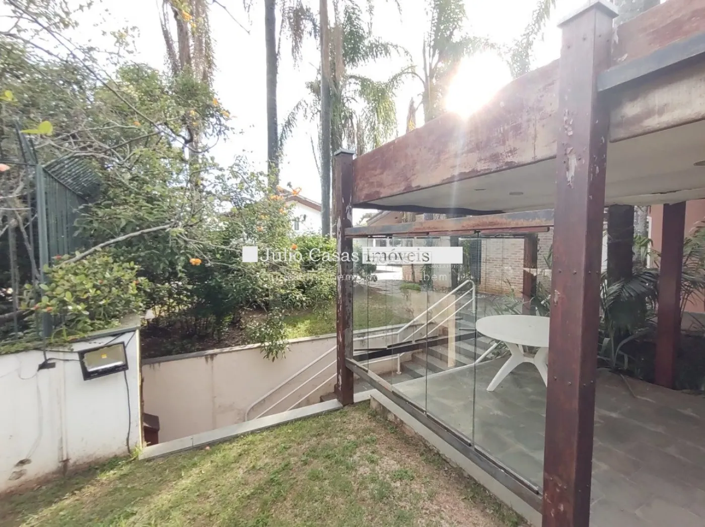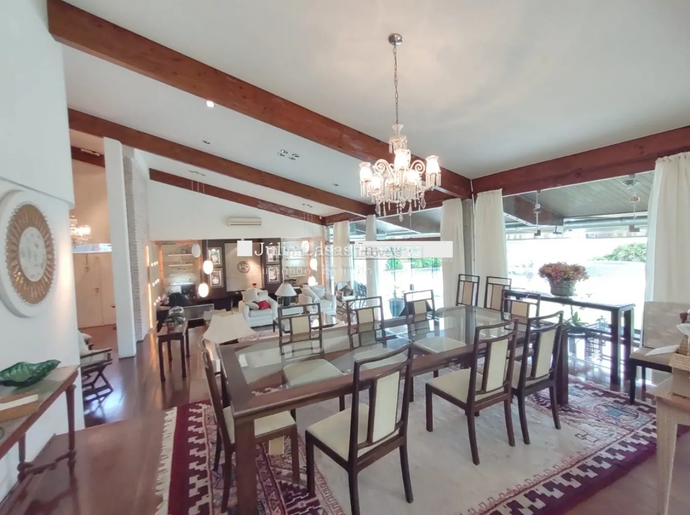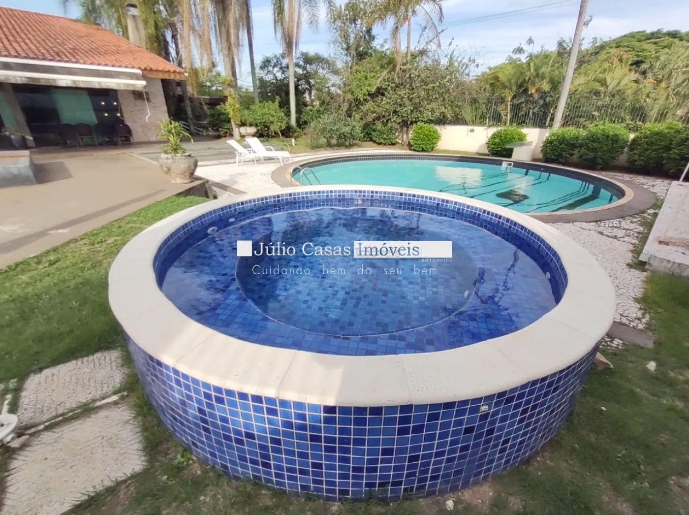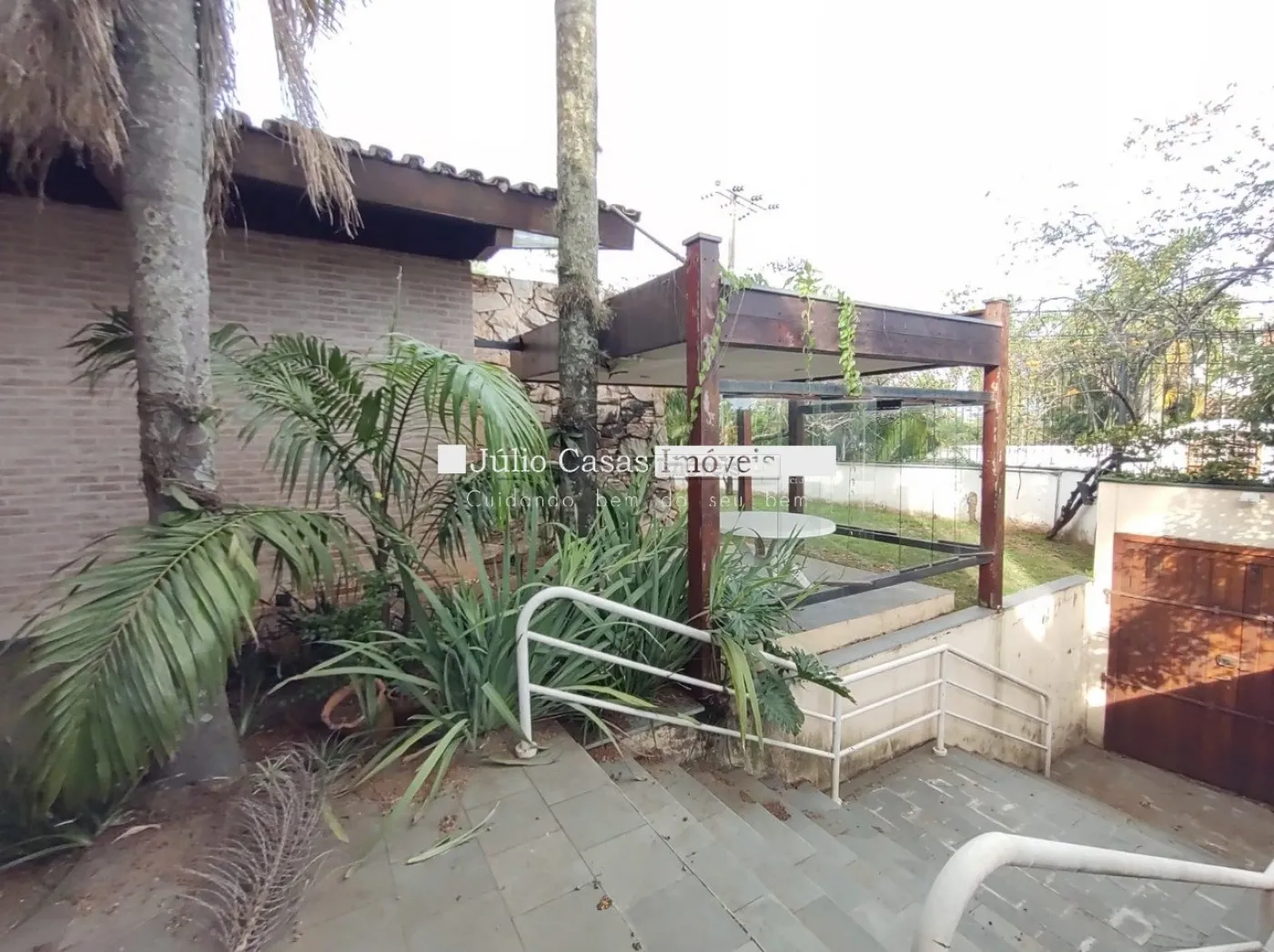 O quintal é grande e conta com piscina, hidromassagem e um paisagismo cuidadosamente planejado. A garagem coberta tem espaço para três veículos, com a possibilidade de estacionar mais cinco veículos em área descoberta.