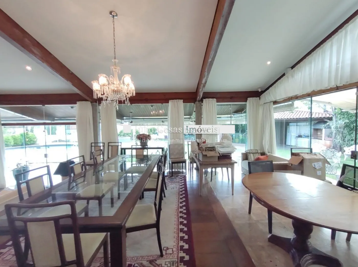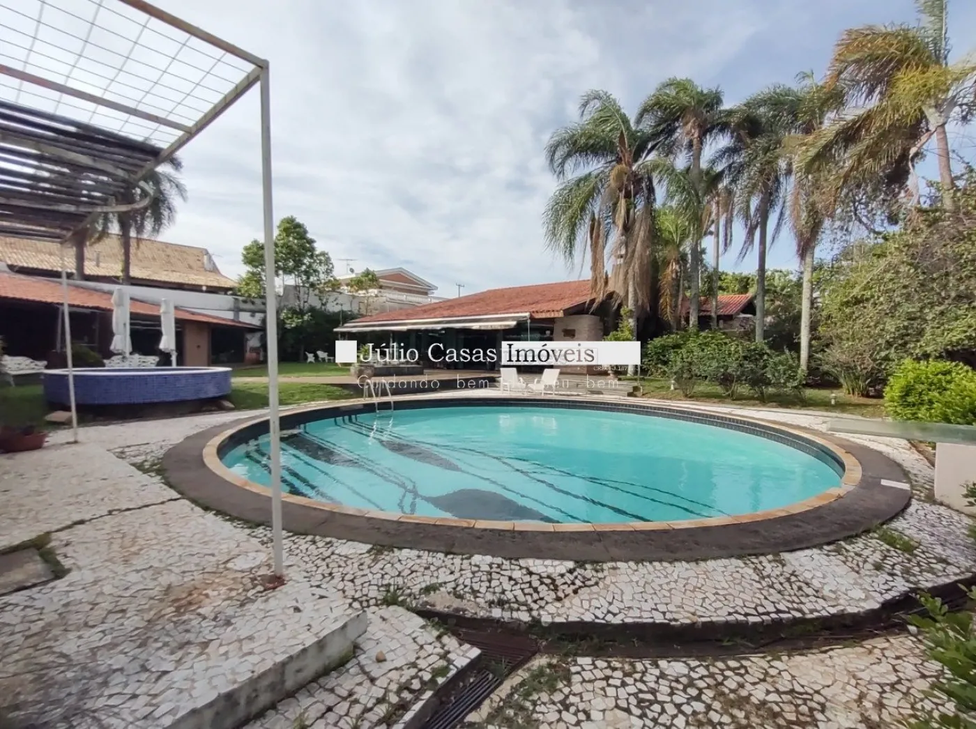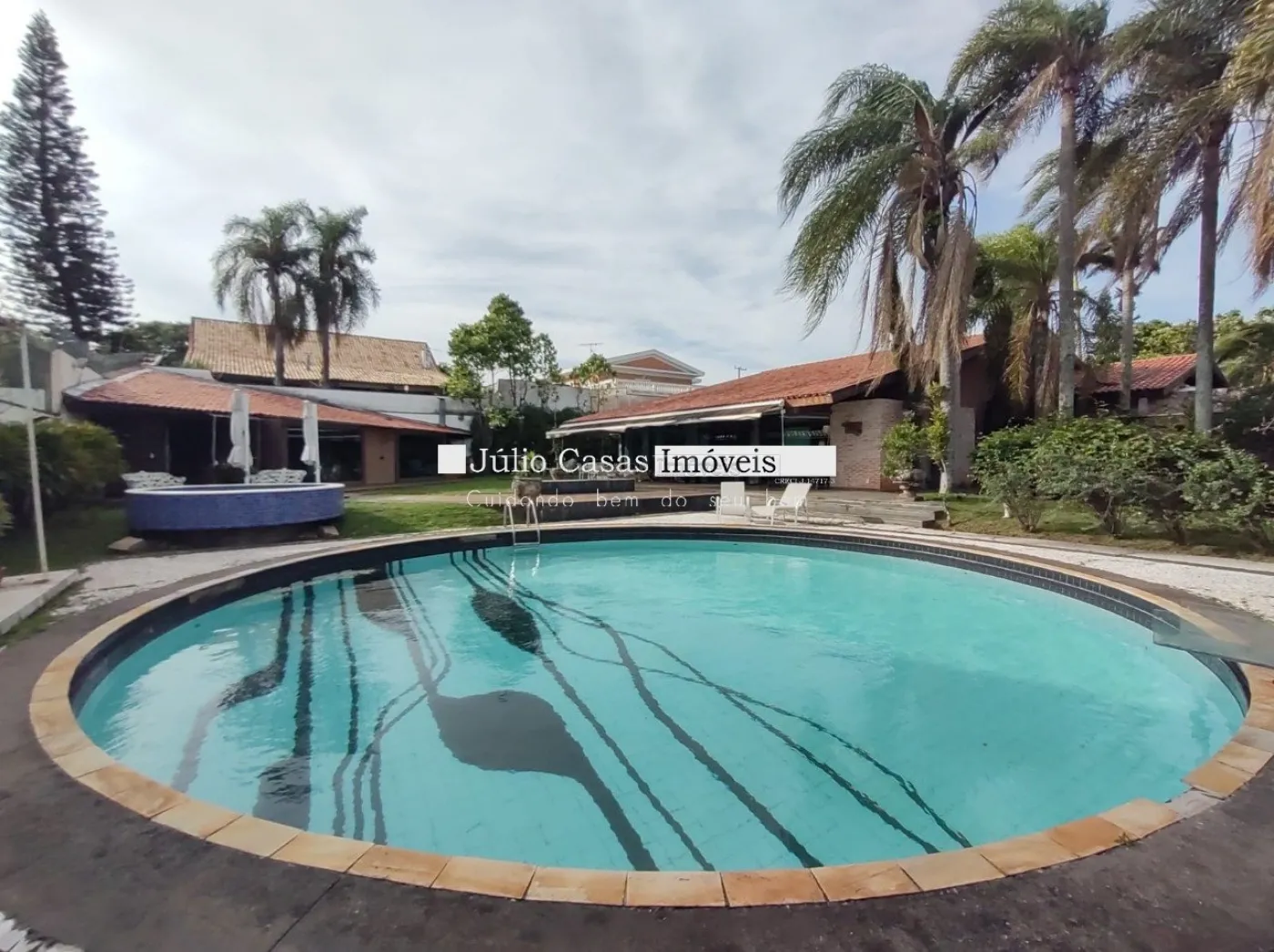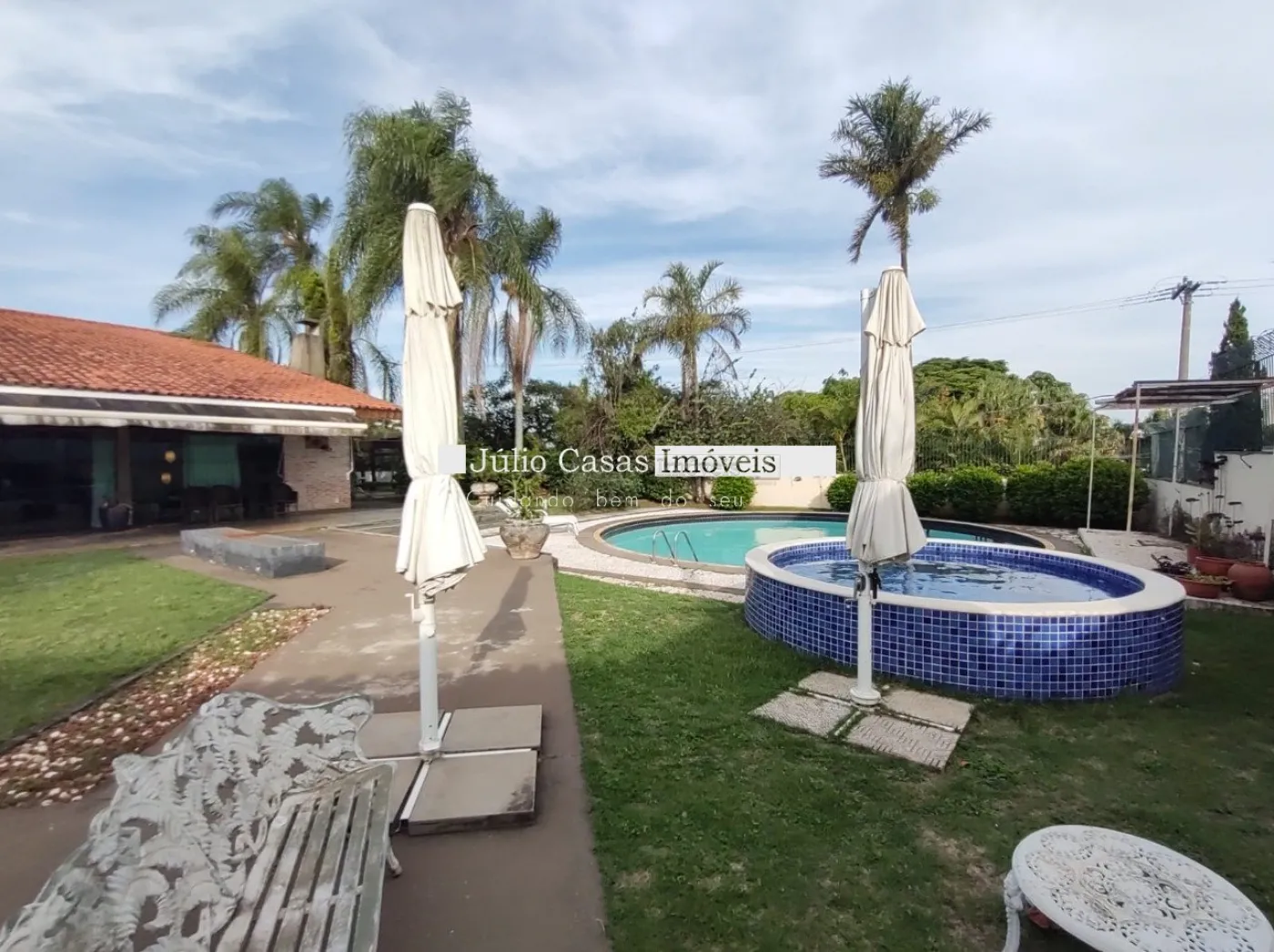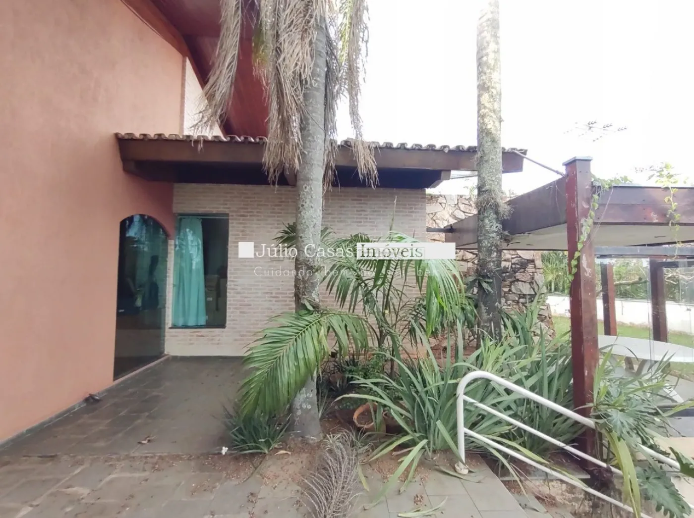 O quintal é grande e conta com piscina, hidromassagem e um paisagismo cuidadosamente planejado. A garagem coberta tem espaço para três veículos, com a possibilidade de estacionar mais cinco veículos em área descoberta.