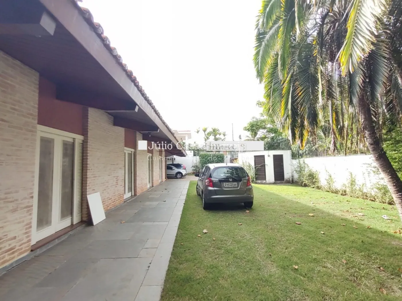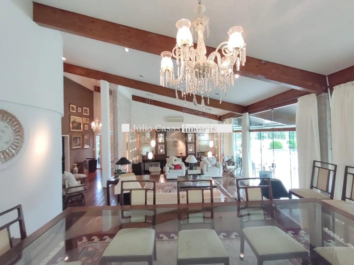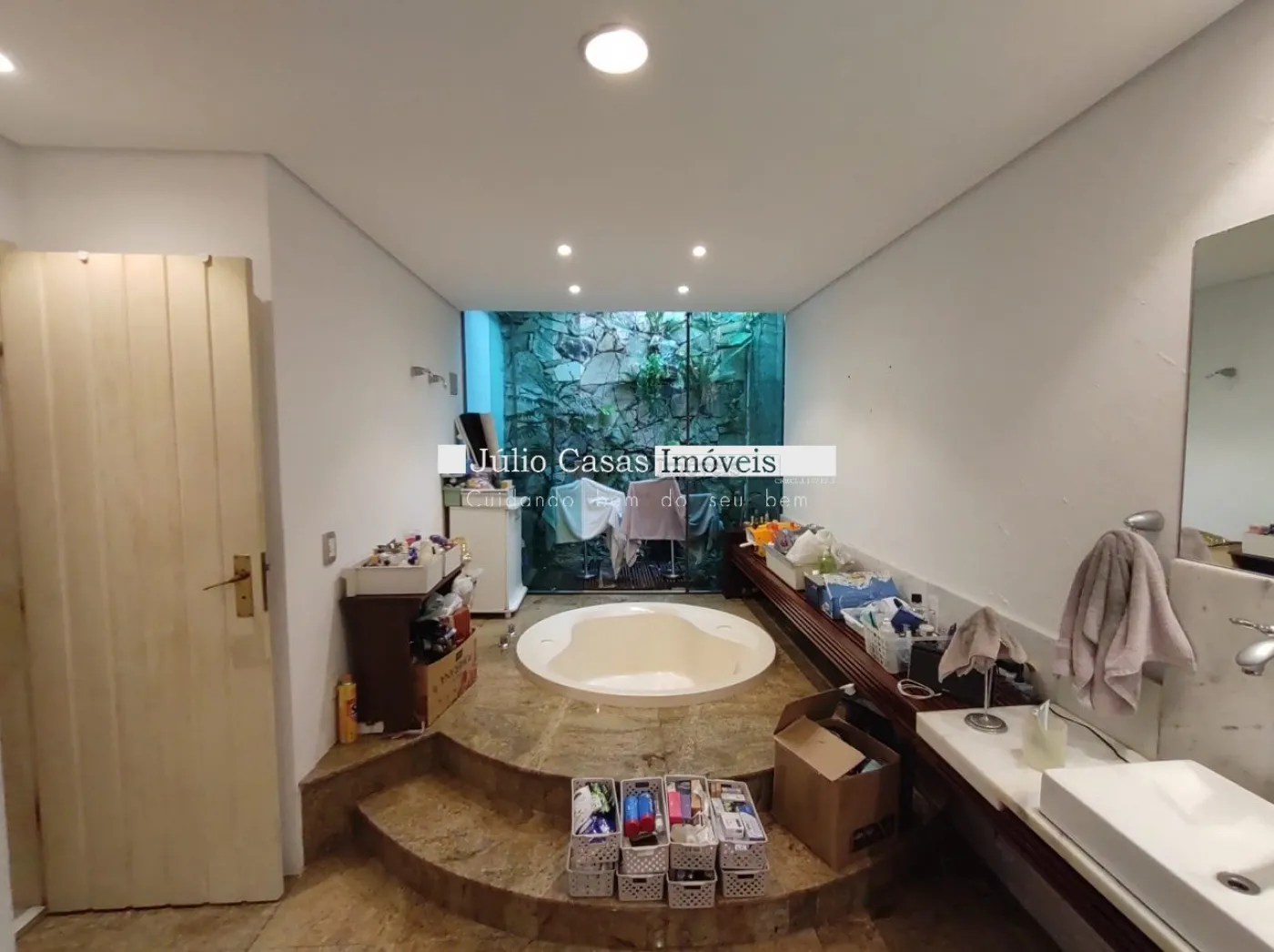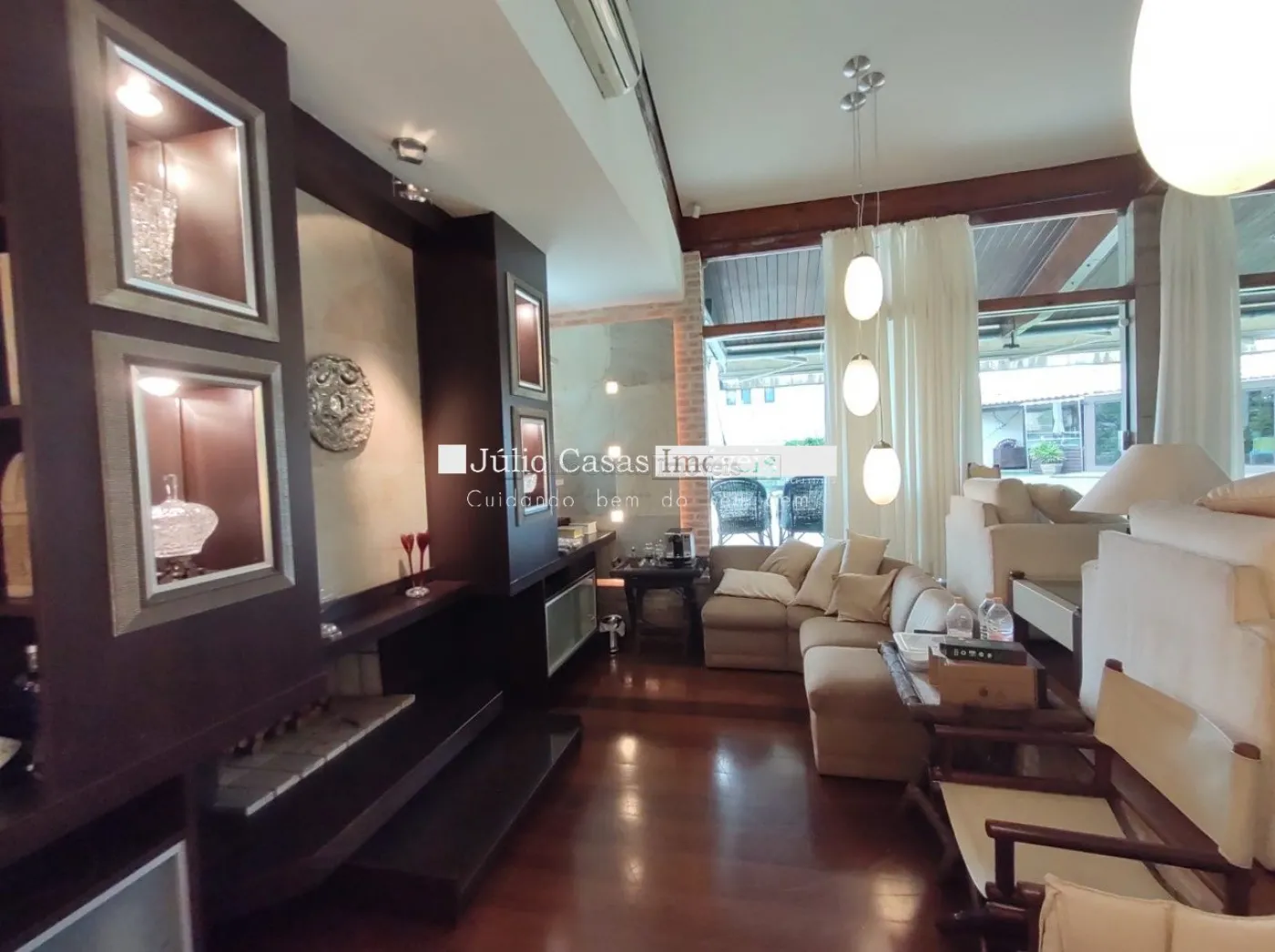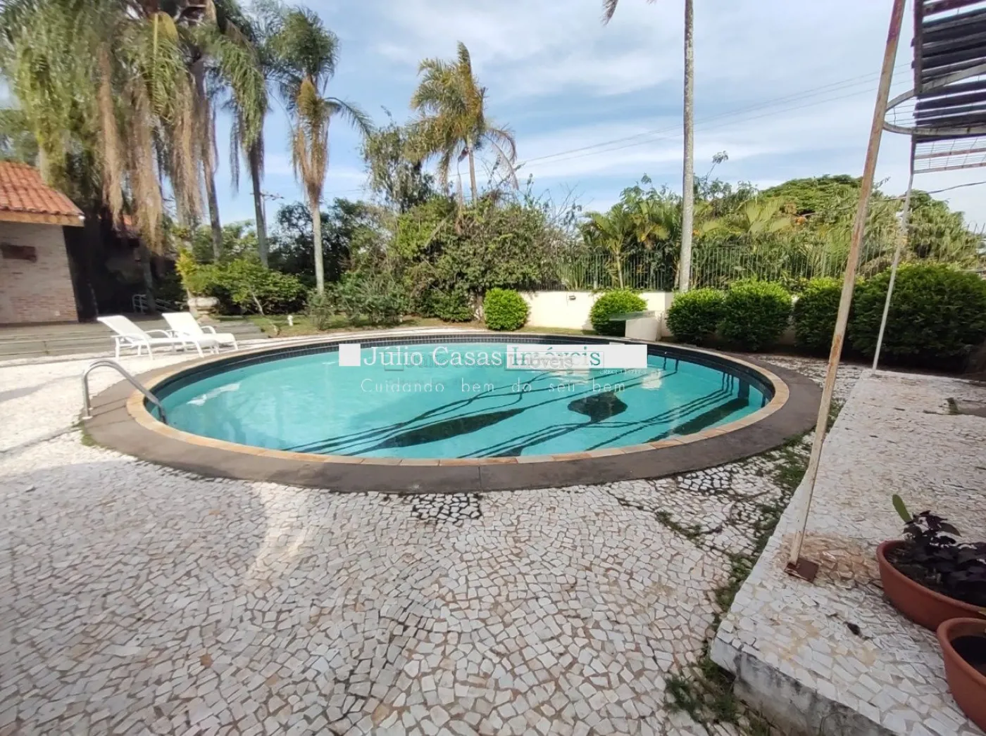 O quintal é grande e conta com piscina, hidromassagem e um paisagismo cuidadosamente planejado. A garagem coberta tem espaço para três veículos, com a possibilidade de estacionar mais cinco veículos em área descoberta.