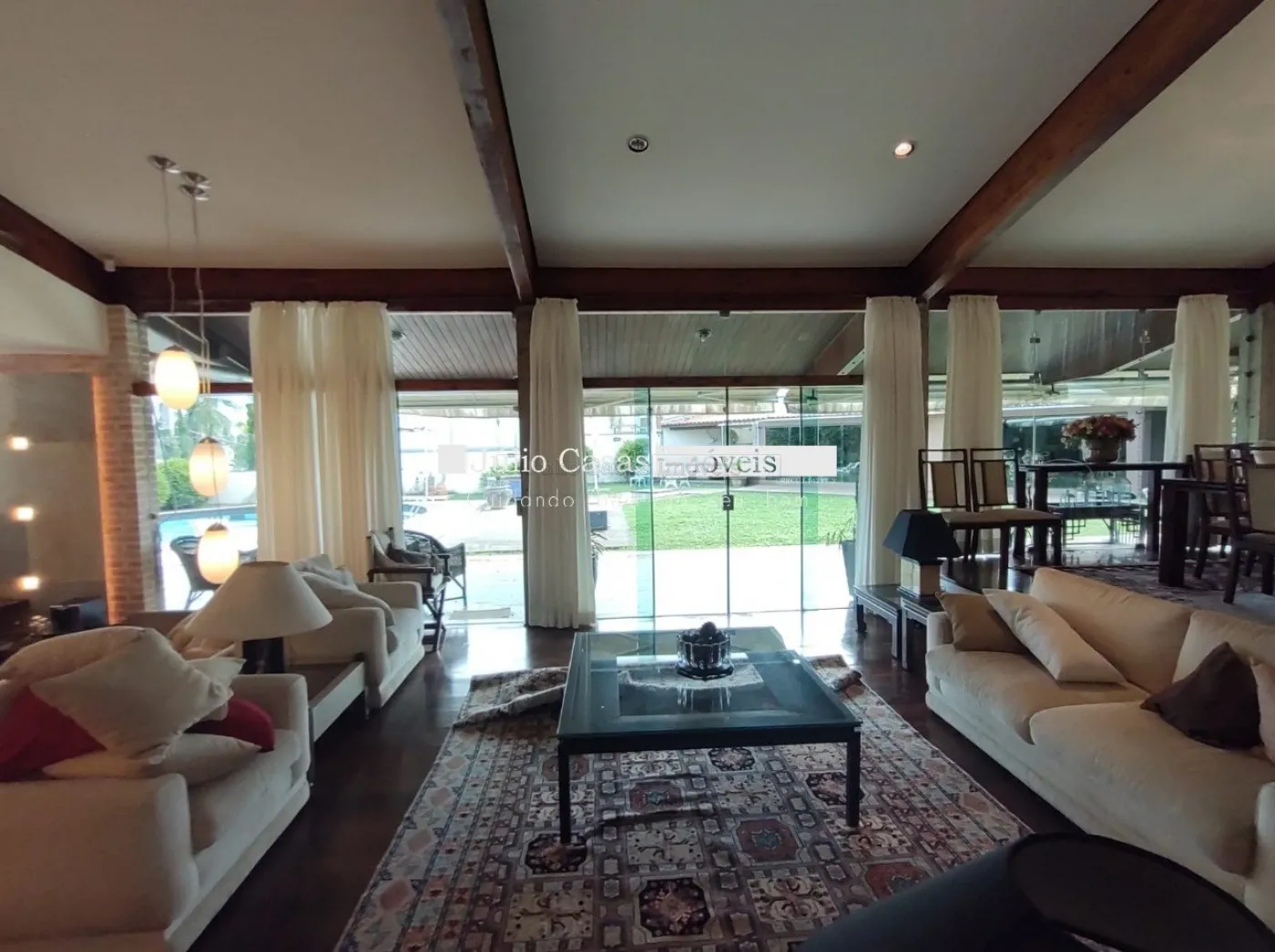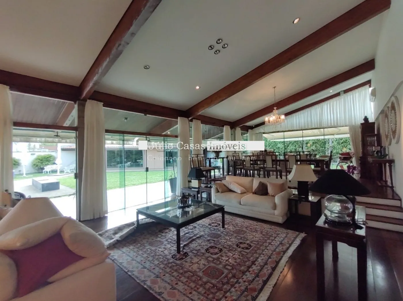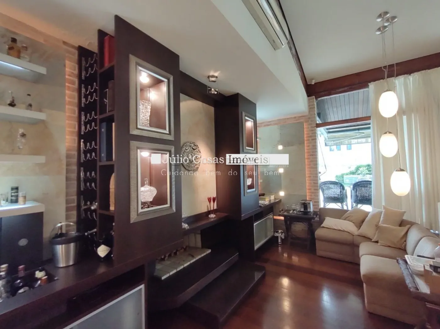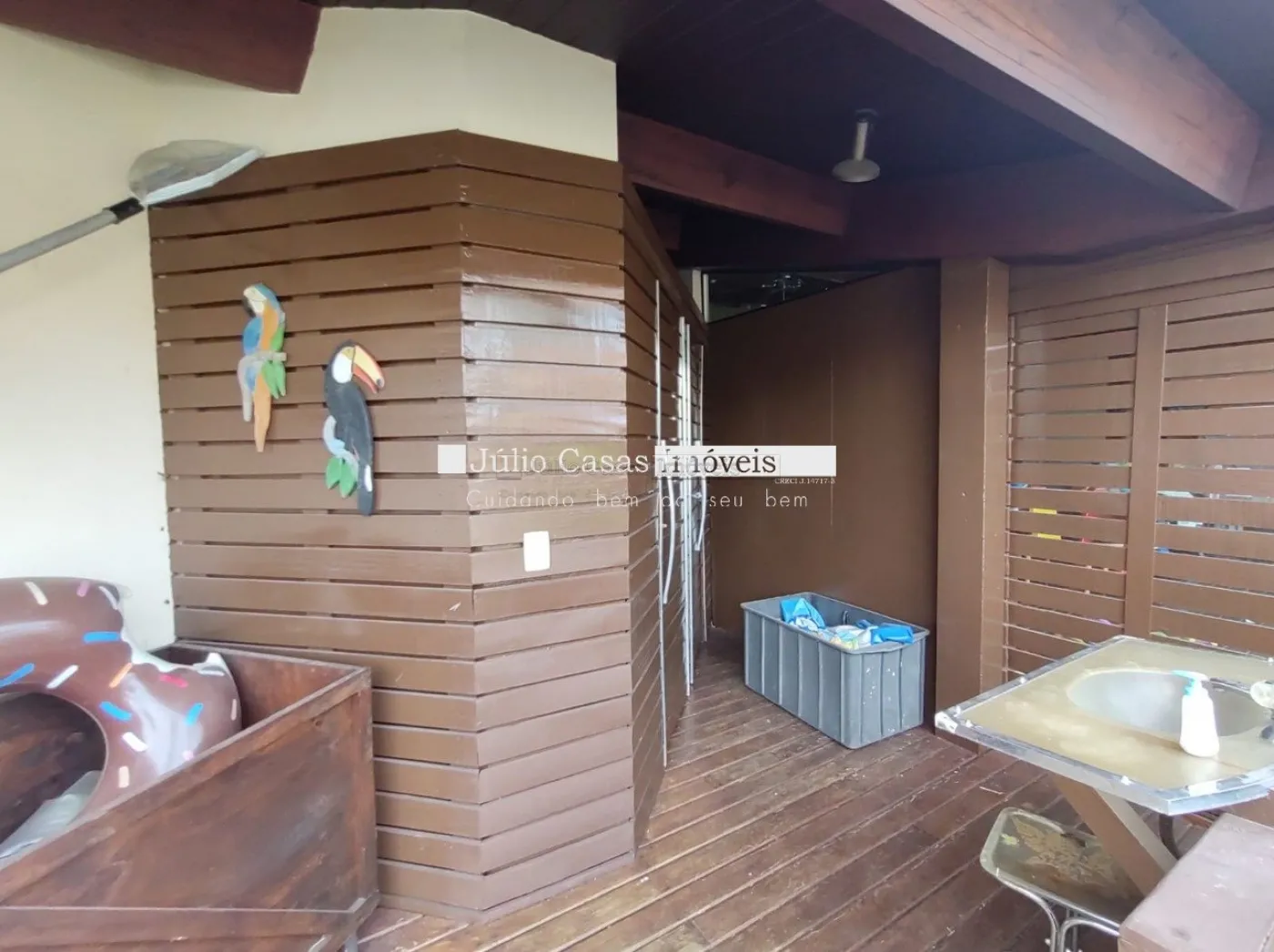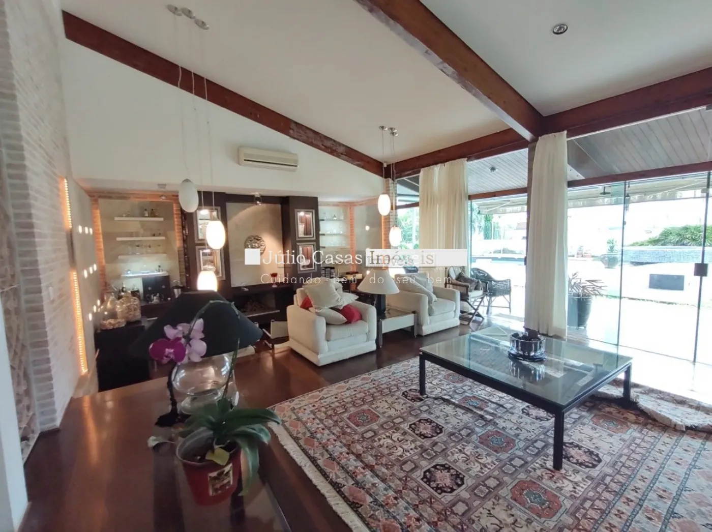O quintal é grande e conta com piscina, hidromassagem e um paisagismo cuidadosamente planejado. A garagem coberta tem espaço para três veículos, com a possibilidade de estacionar mais cinco veículos em área descoberta.