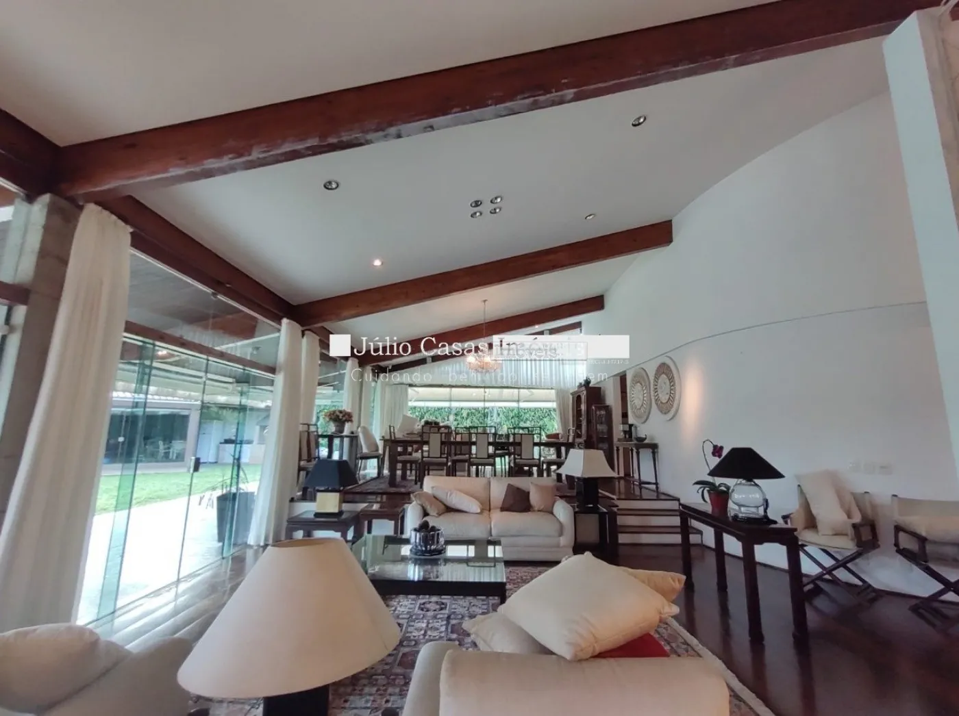 Casa térrea construída em três lotes, localizada em um dos melhores bairros da cidade. Esta residência de esquina possui uma ampla testada e destaca-se pelas quatro salas com pé-direito diferenciado, revestidas com piso de madeira ipê, além de portas e janelas também em madeira. As salas são integradas ao jardim, proporcionando um ambiente acolhedor e iluminado. O lavabo conta com uma pia em mármore e cuba sobreposta, adicionando um toque de elegância.