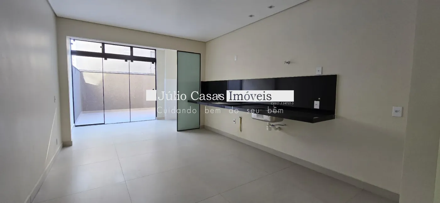 - cozinha integrada à área gourmet, também com porcelanato e pia em granito preto Negresco;