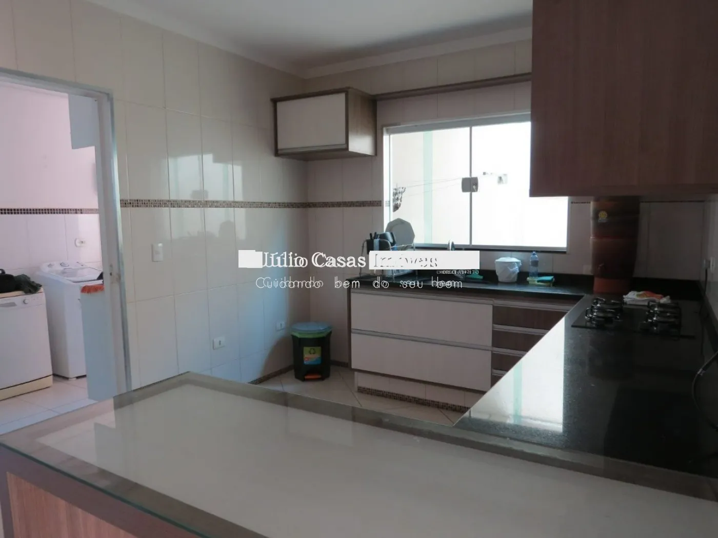 Excelente casa no jardim astro, garagem ,para 2 carros. parte inferior : escritório térreo ,,lavabo, ampla sala de jantar e sala de TV, cozinha modulada e lavanderia , todos em piso pisos porcelanato , azulejado ate o teto e com gesso. Na parte superior 1 salão avarandado fechado com vidro e piso porcelanato, 1 suíte c closet e 2 dormitórios de solteiro , todos em piso laminado . Quintal com edícula nos fundos, contendo 1 cozinha azulejada, 2 dormitórios, 1 banheiro, todos em piso cerâmico