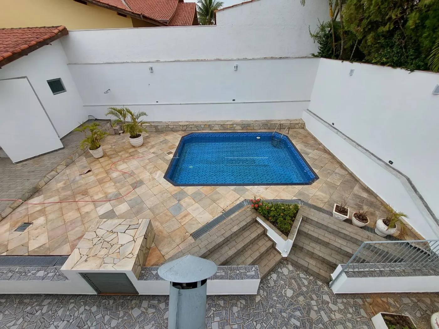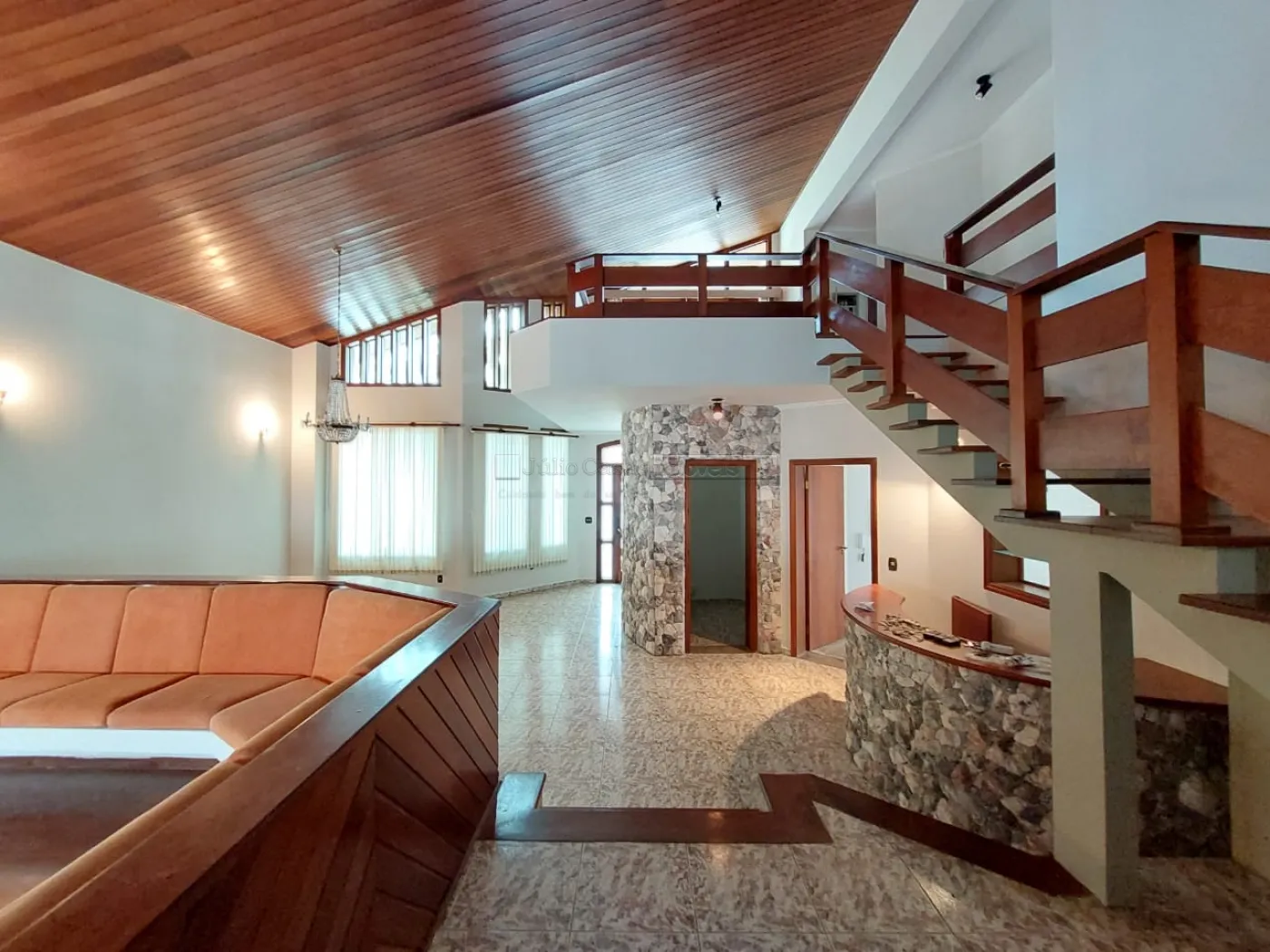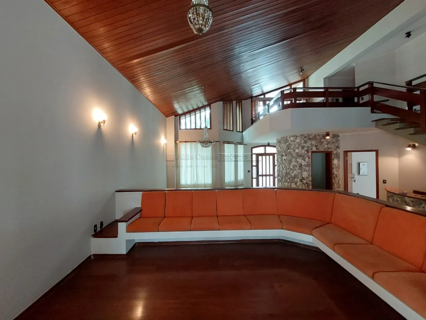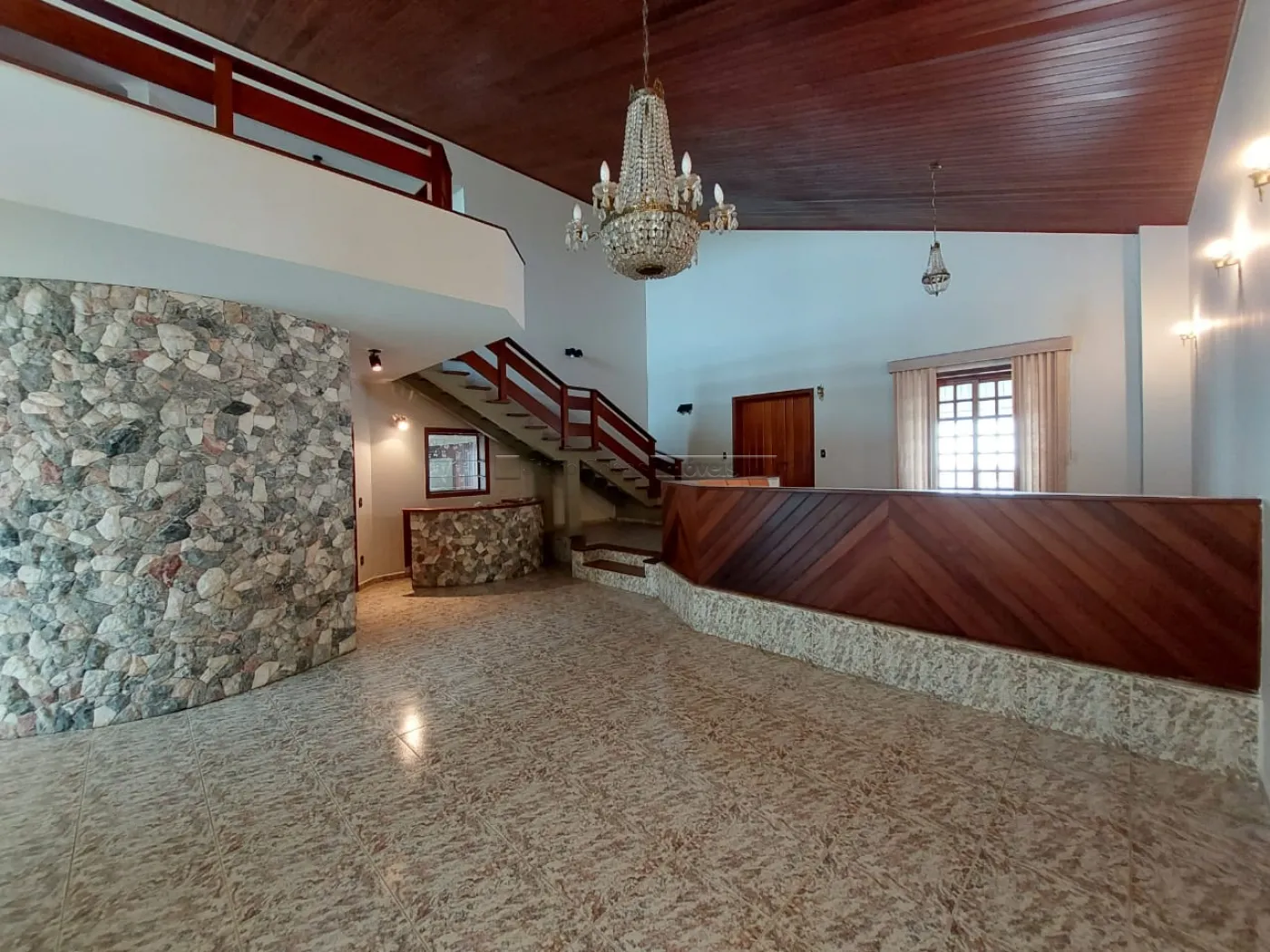 Sala 2 ambientes em detalhe madeira, com detalhes em pedra, lavabo em piso cerâmico, sala de estar com sofá em alvenaria detalhes em madeira, cozinha e copa em piso cerâmico e revestimentos até o teto, pia em granito com bancada ampla, lavanderia com 2 tanques em inox, despensa com prateleiras forradas em granito, área externa com piscina, 2 wc e depósito, churrasqueira coberta com pia de apoio.