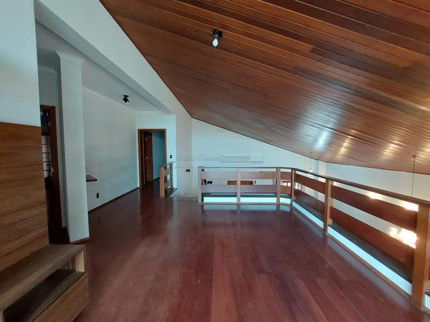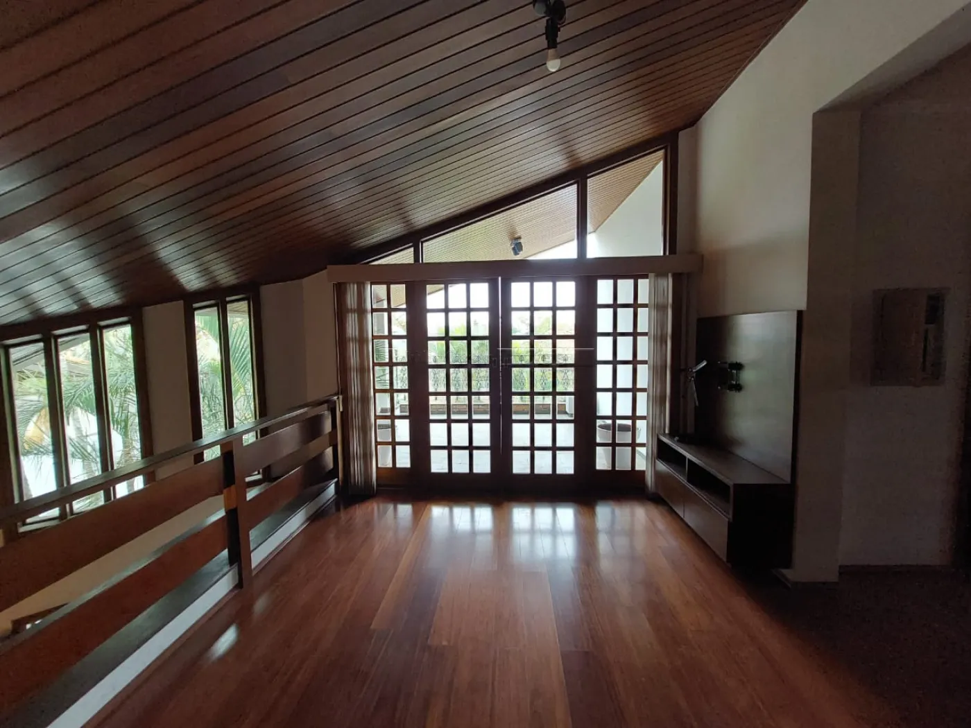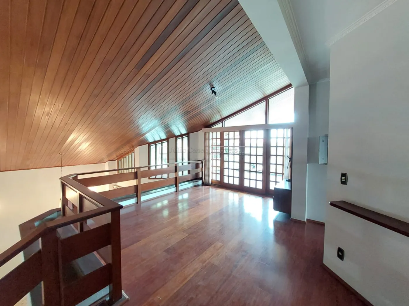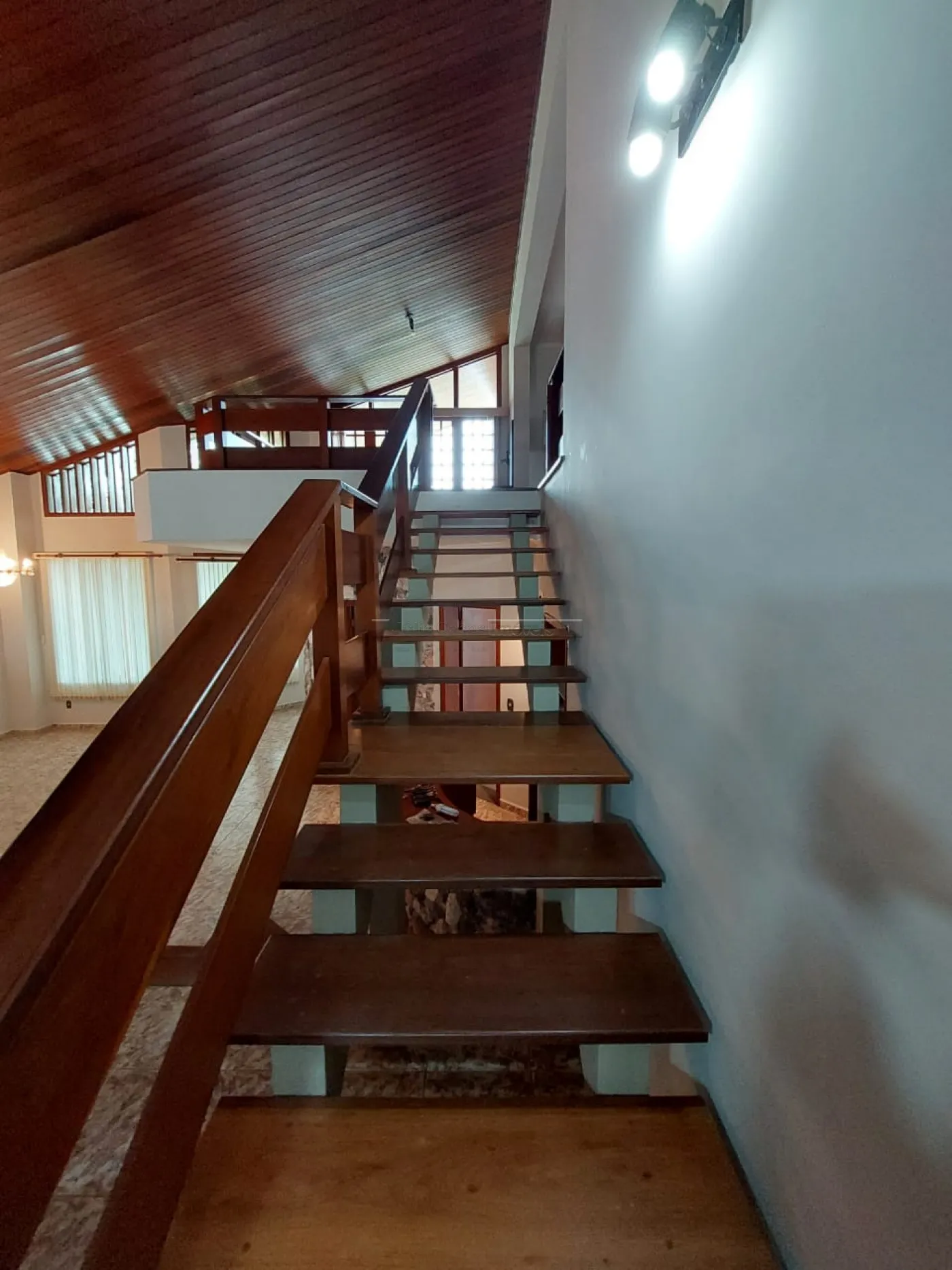Andar superior com escada em madeira e corrimão, sala íntima entre os dormitórios com varanda, 3 quartos com armários em madeira maciça todos com varanda 1 sendo suíte com duas cubas, box em vidro e hidro. banheiros com piso em granito e revestimento até o teto.