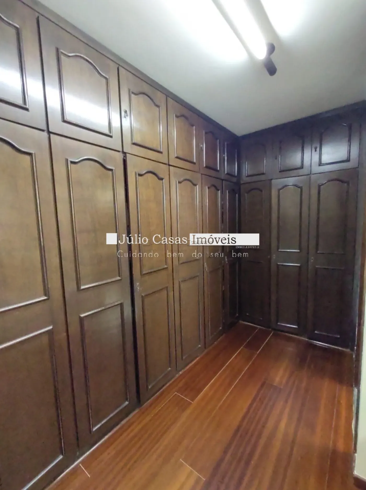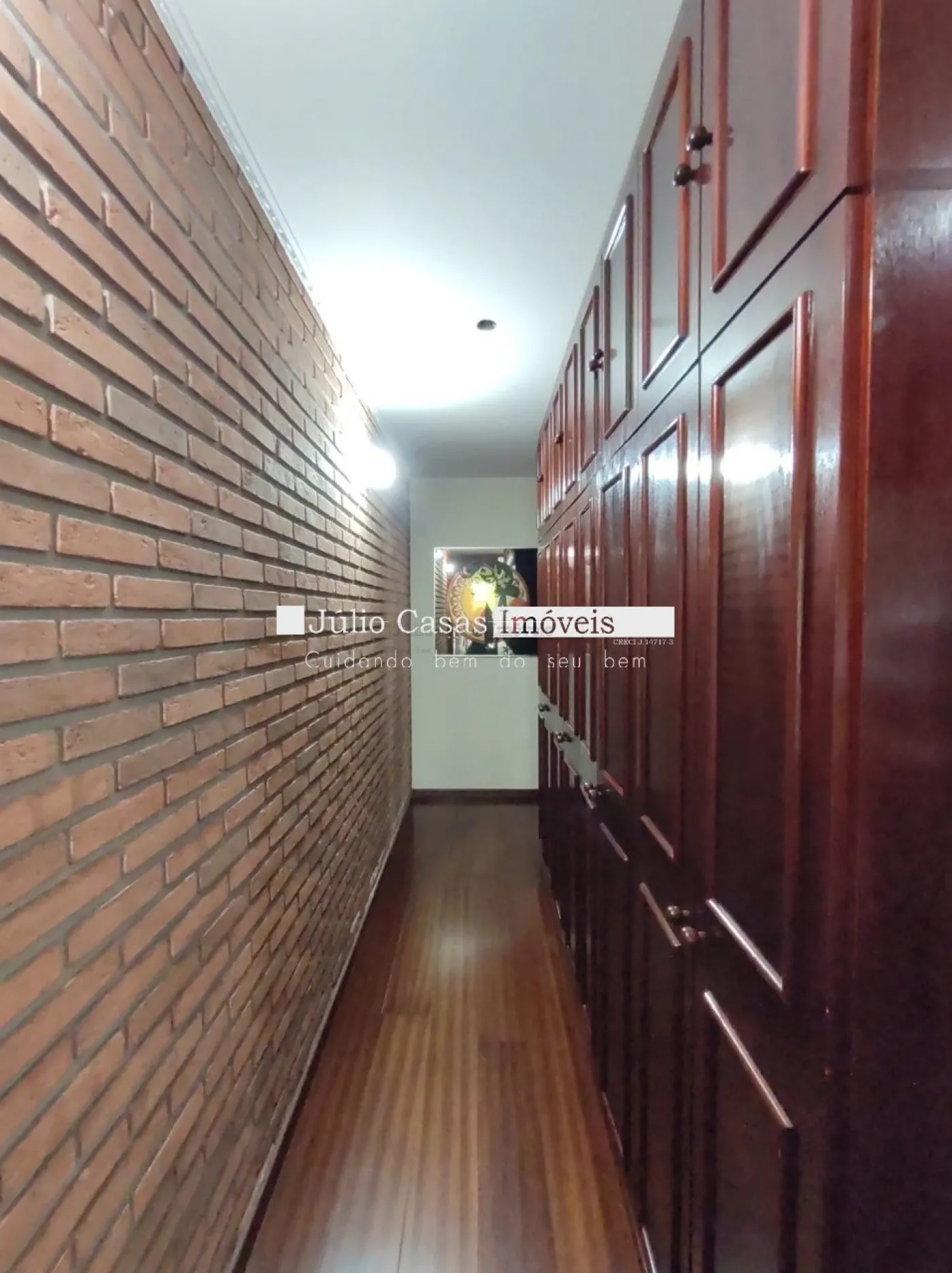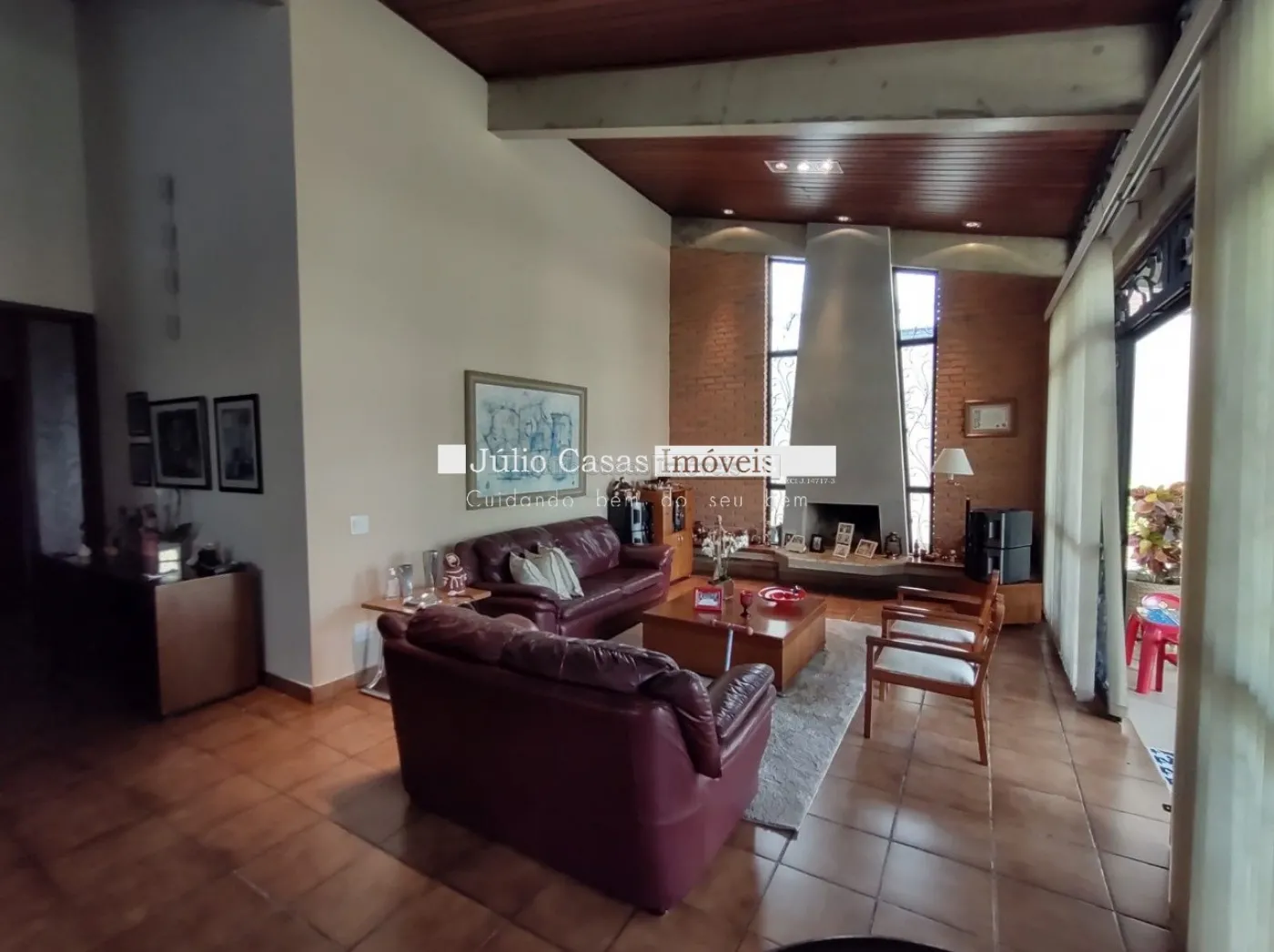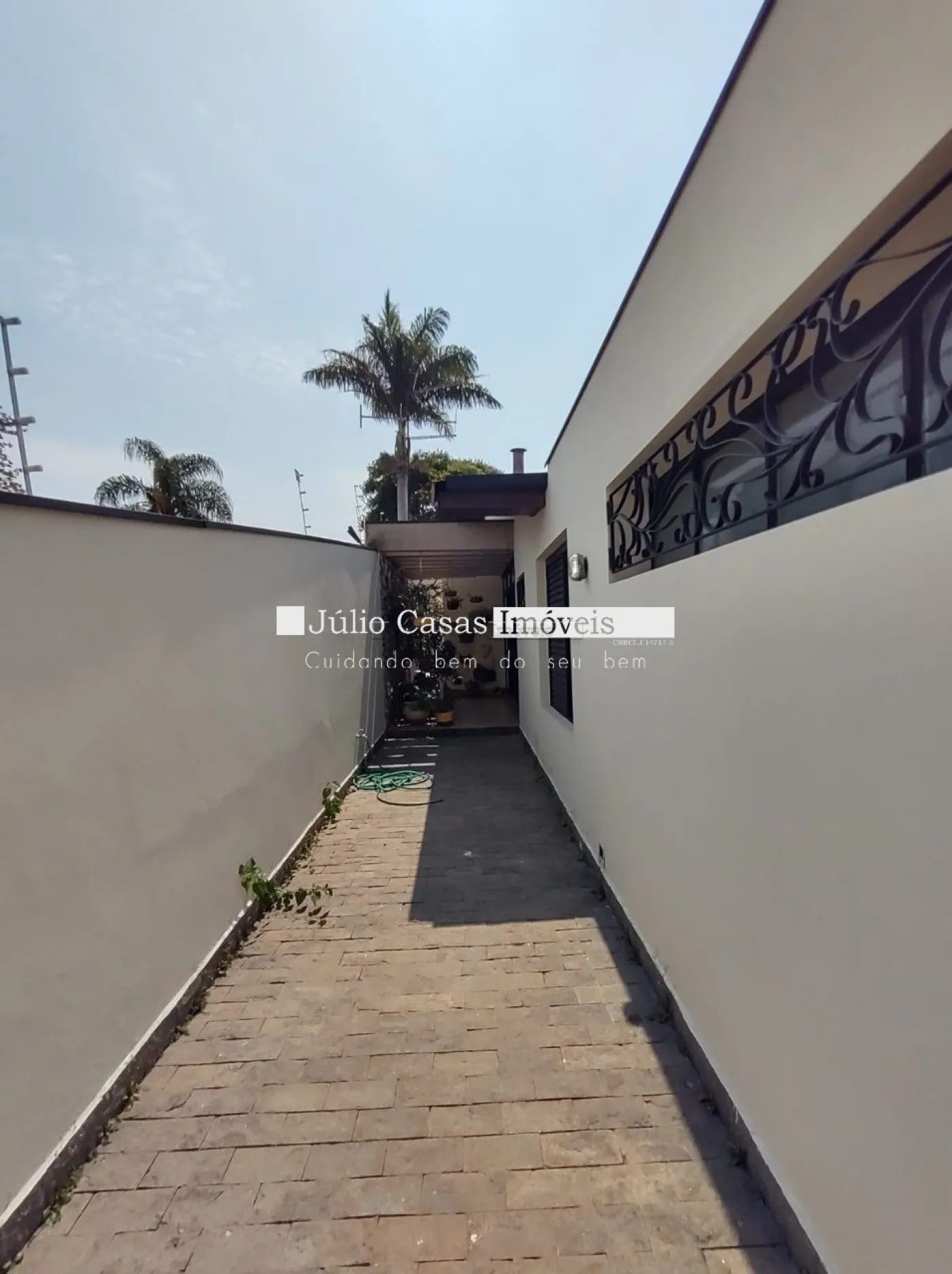 Casa térrea com excelente localização em uma rua sem saída e com guarita 24h. O imóvel possui uma sala com pé direito duplo e duas salas integradas, uma de estar e outra de jantar, além de um lavabo. A cozinha é equipada com armários, e a área de serviço inclui uma dependência de empregada completa.