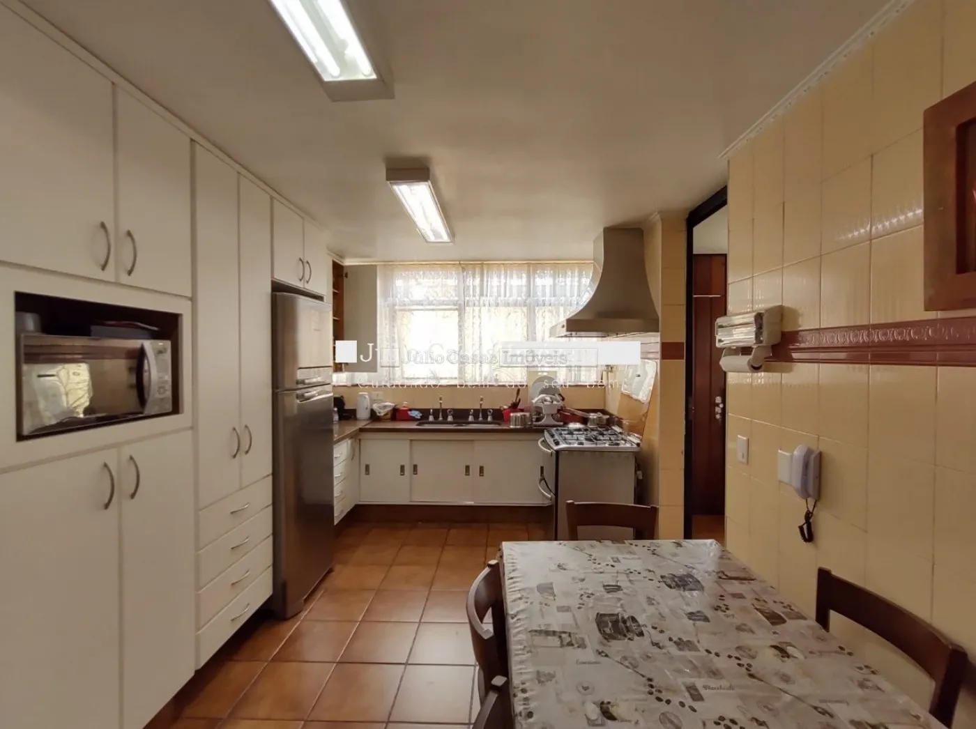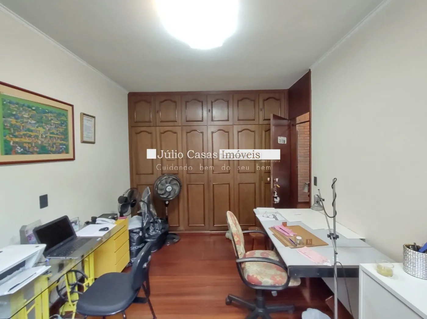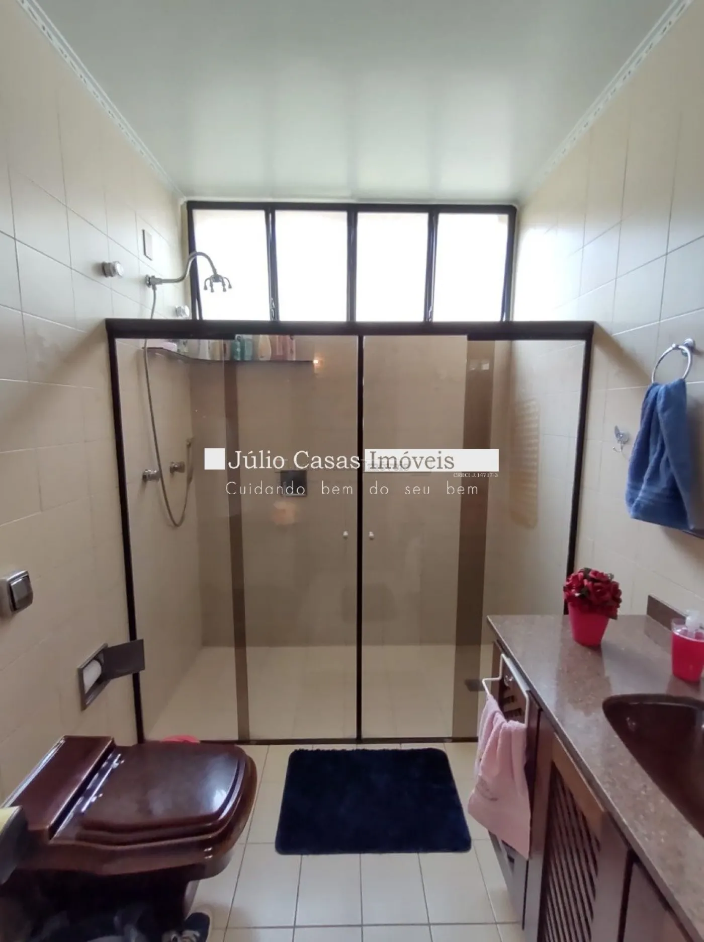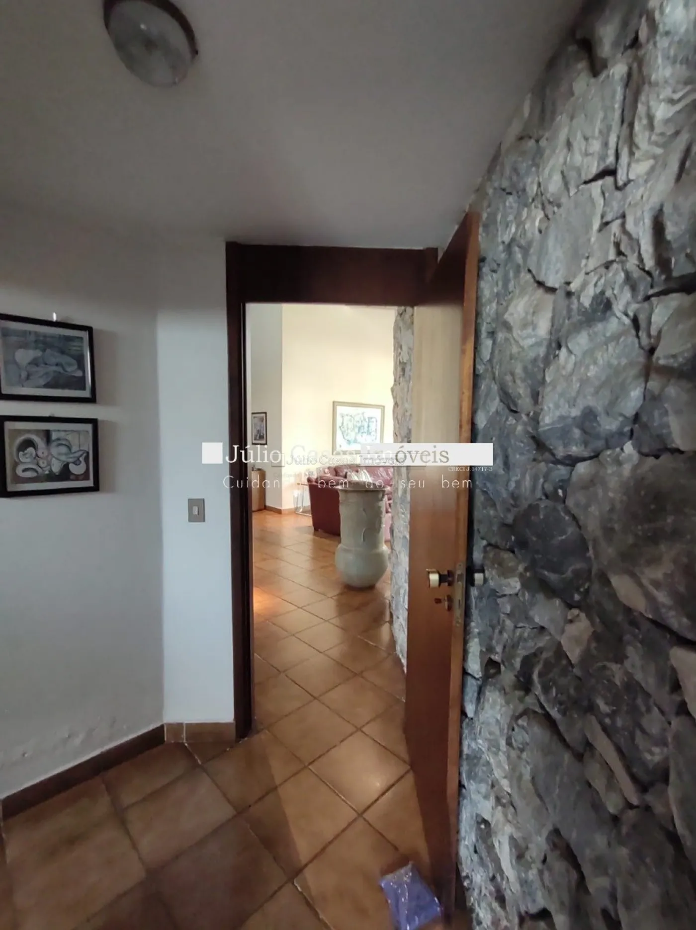 Casa térrea com excelente localização em uma rua sem saída e com guarita 24h. O imóvel possui uma sala com pé direito duplo e duas salas integradas, uma de estar e outra de jantar, além de um lavabo. A cozinha é equipada com armários, e a área de serviço inclui uma dependência de empregada completa.