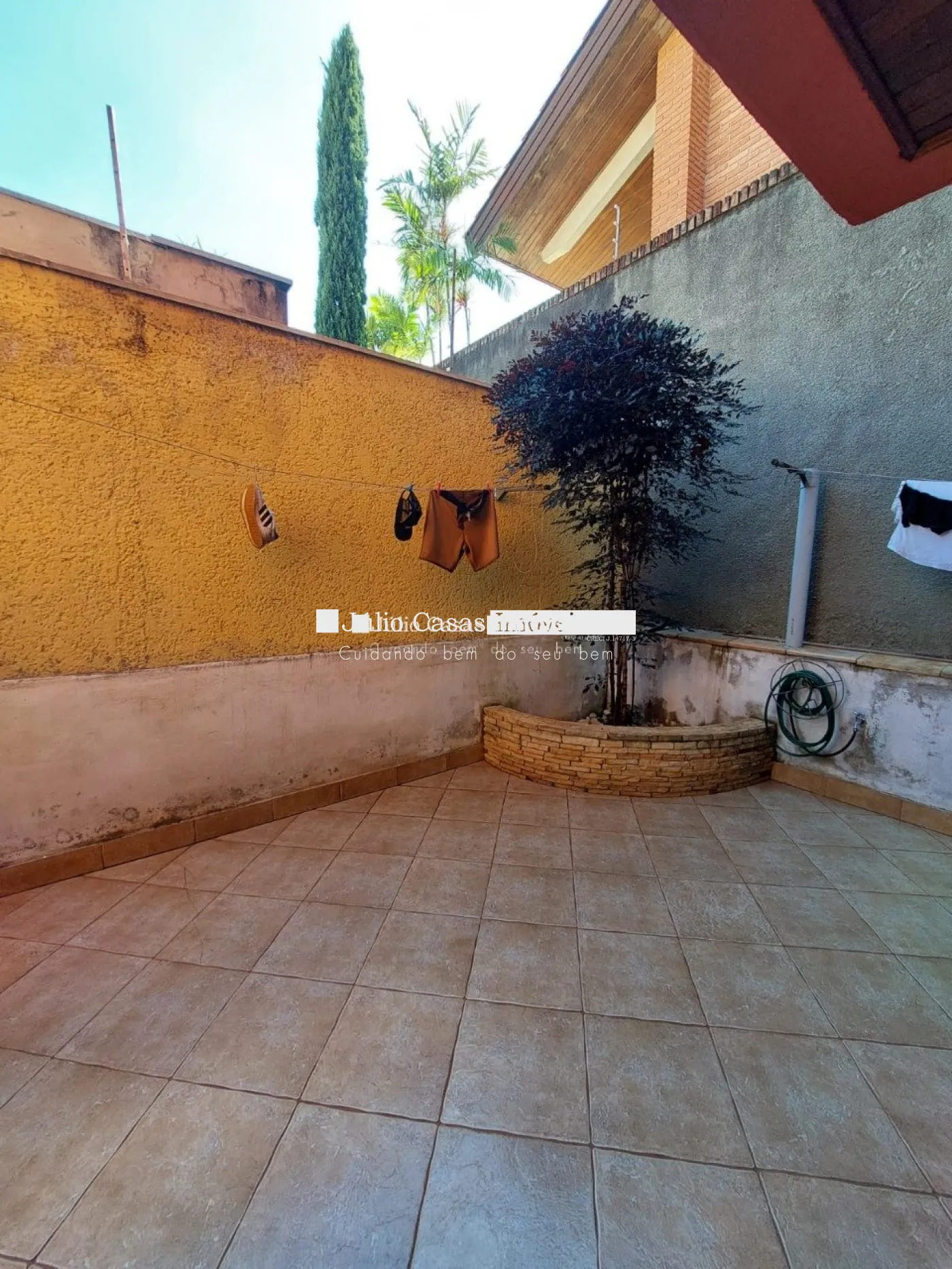 Quintal grande com área gourmet com wc, forno de pizza, fogão a lenha, churrasqueira, garagem para 4 veículos cobertos.