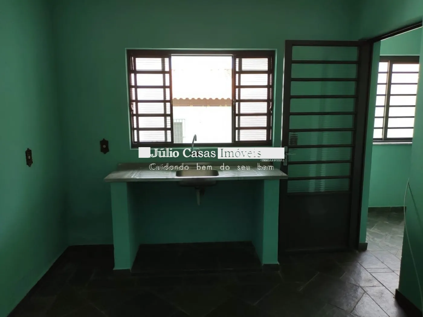 Edícula com wc, cozinha, sala e salão com churrasqueira, pisos em cerâmica.