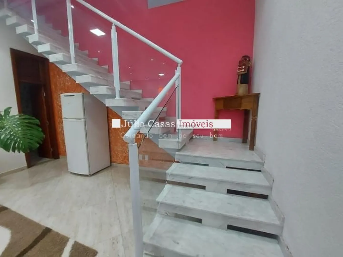 Casa térrea muito bem construida, porta de entrada moderna, sala 2 ambientes com lareira na sala de jantar, cozinha integrada, mas com uma porta de correr de divisória. Cozinha com ilha e pia em mármore e integrada ao quintal. Belíssimo lavabo com pia esculpida em mármore e led no espelho. 3 dormitórios, sendo 2 suites e 1 suite master , banheiros com acabamento de primeira linha, escritório, lavanderia. possui churrasqueira elétrica, instalação solar. Área fria toda em porcelanato e área dos quartos em piso vinilico