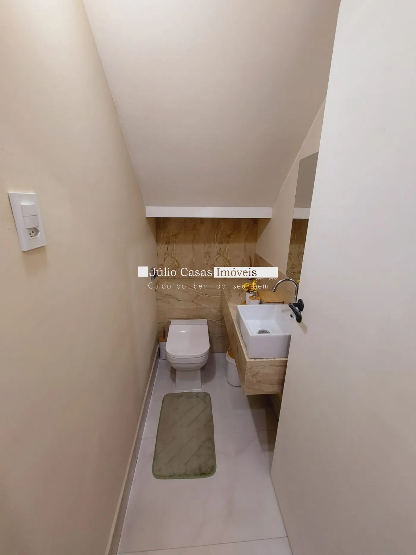 Sobrado a venda com sala em piso porcelanato, copa cozinha com armários, lavabo.