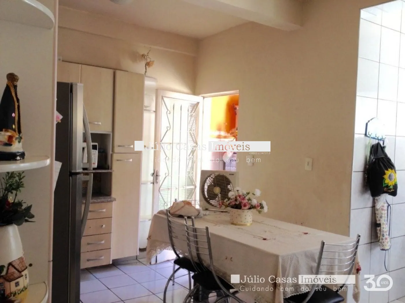Casa térrea com 03 quartos no Jardim Sandra, com 10 metros de frente. Casa antiga, porém com laje e estrutura em excelentes condições. Sala ampla para dois ambientes. Cozinha com azulejo até ao meio das paredes. Gabinete e pia em inox. Área molhada em piso cerâmico e depois cômodos em taco (está em boas condições). Lavanderia e um quintal grande. 01 vaga de garagem coberta. A casa está próximo de comércios em geral, escola e ponto de ônibus.