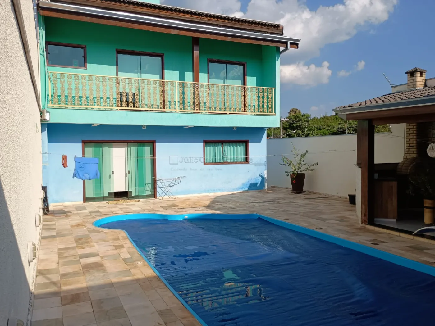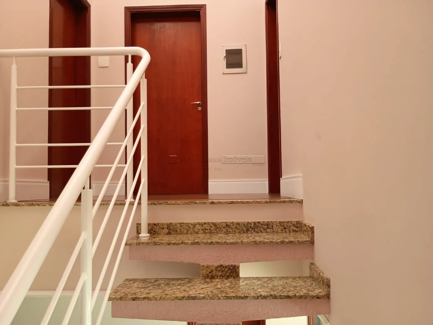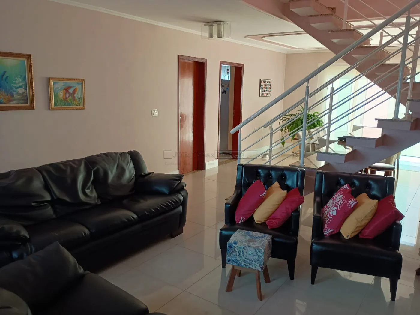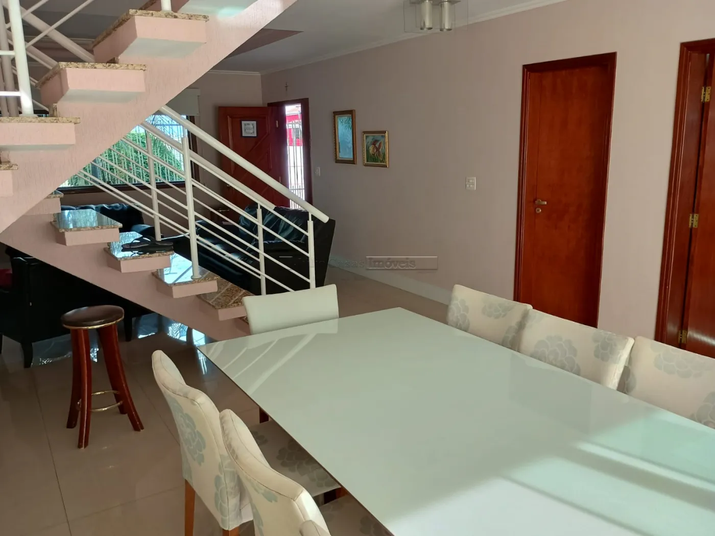 Espaçosa sala em dois ambientes com piso em porcelanato polido, forro em gesso e sanca, e lavabo. Cozinha com paredes azulejadas até o teto, repleta de armários modulados, pia em granito preto absoluto e anexa, uma prática lavanderia. No quintal espaço gourmet com churrasqueira, forno e fogão à lenha junto a piscina com cascata. Escadas com degraus revestidos em granito São Gabriel e corrimão em alumínio pintado na cor branca que levam ao andar superior que é constituído por três suítes com piso em laminado de madeira, moduladas e com sacada. Na suíte master conta com prático closet. Em bairro plenamente servido por comércio em geral, próximo a escolas supermercados, farmácias e fácil acesso à rodovia Raposo Tavares e à Castelinho.