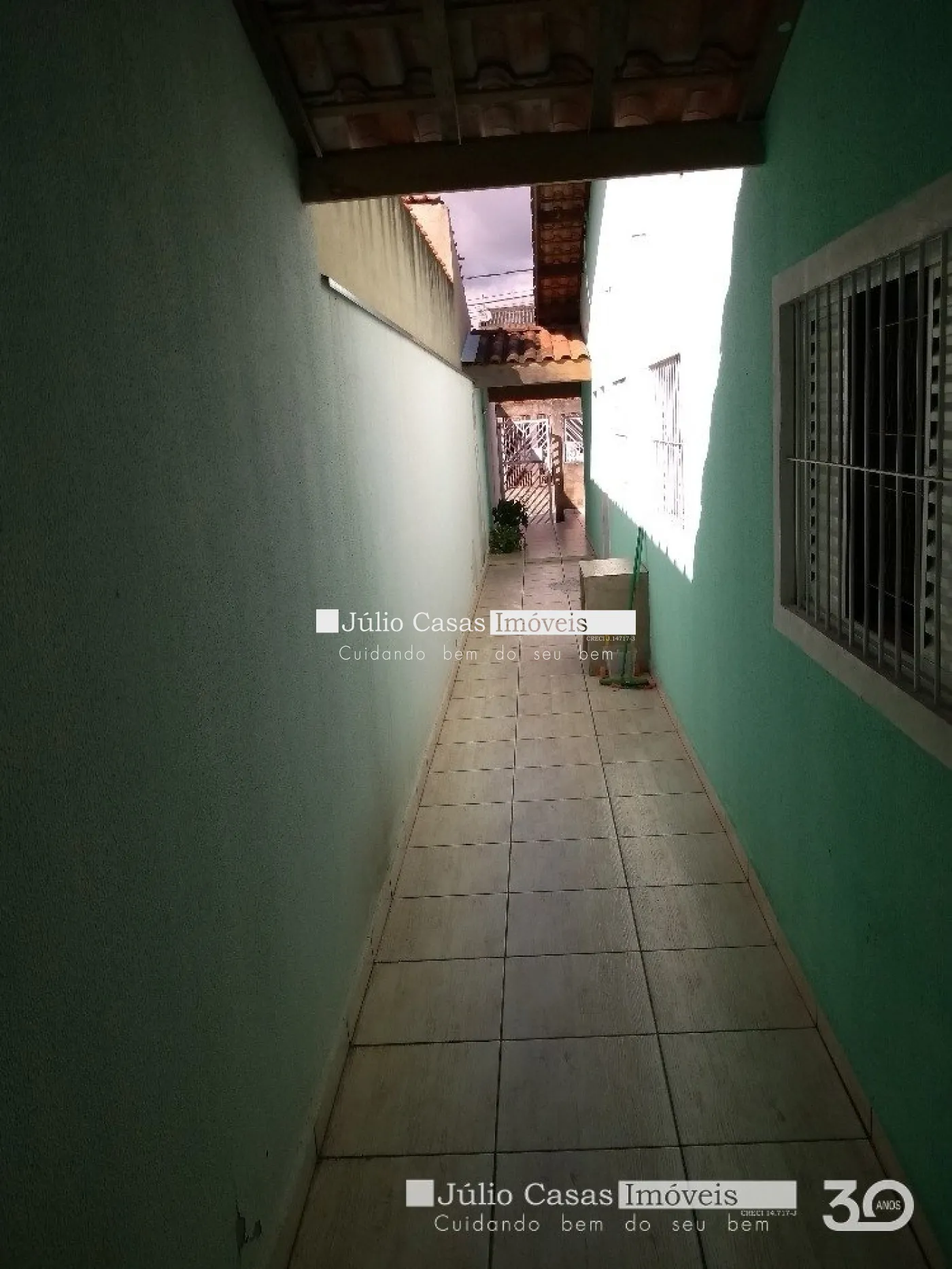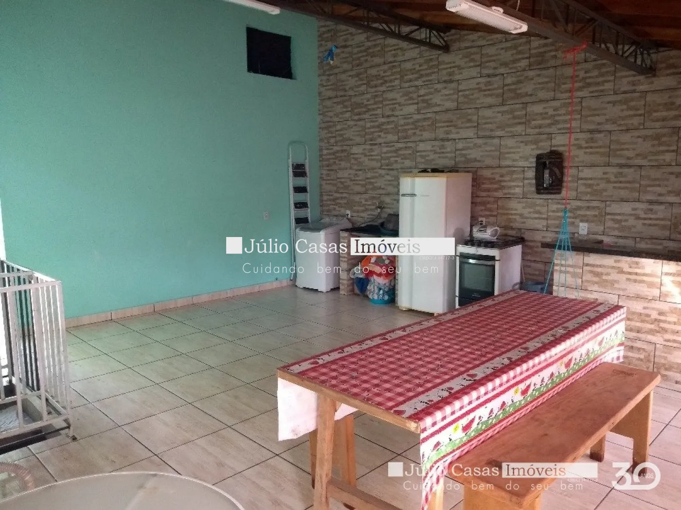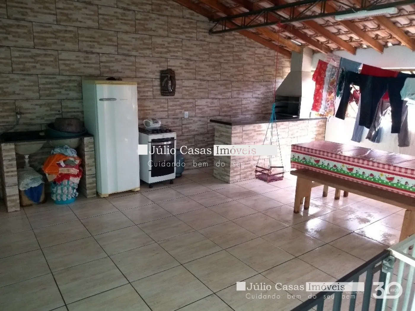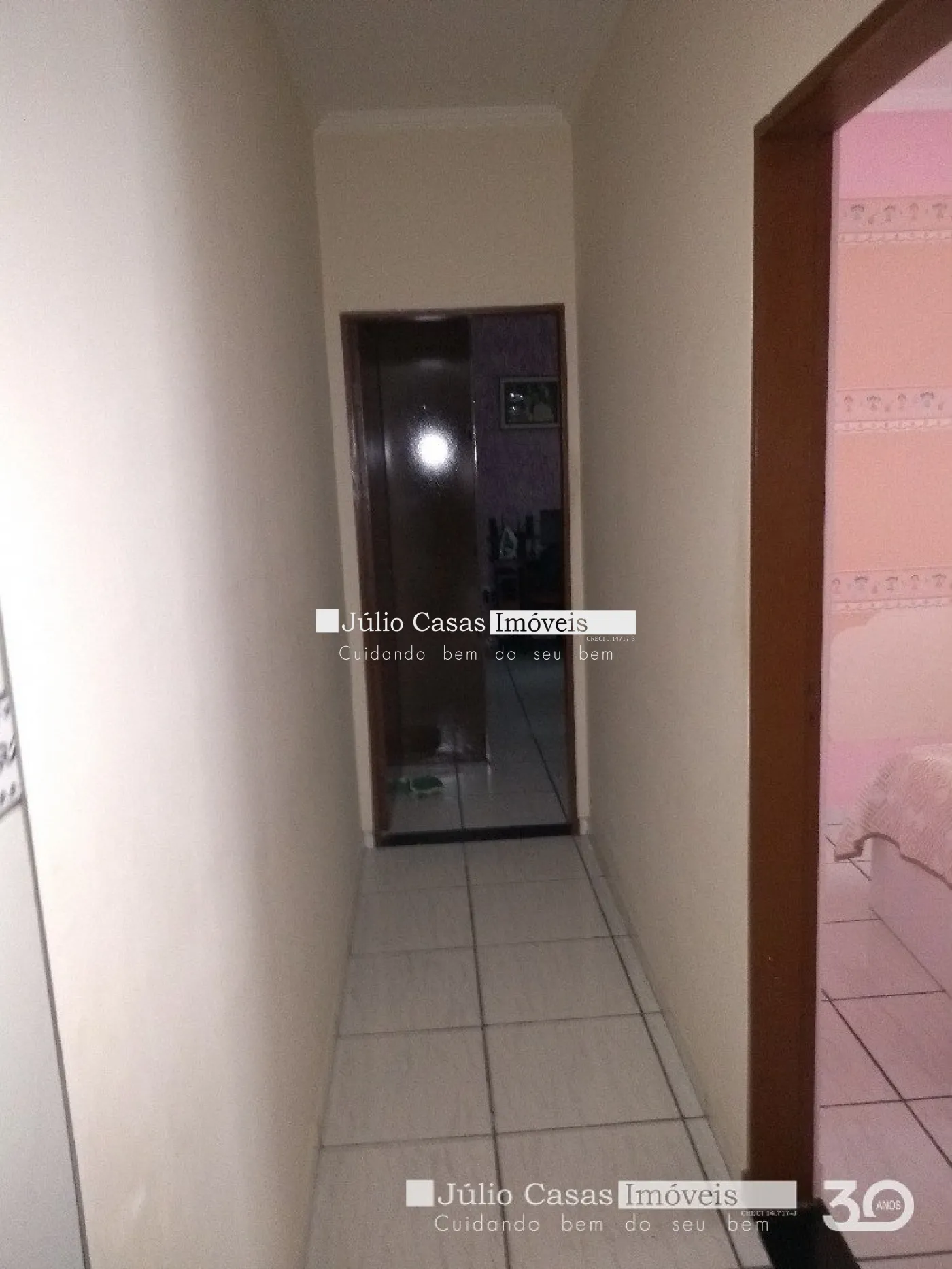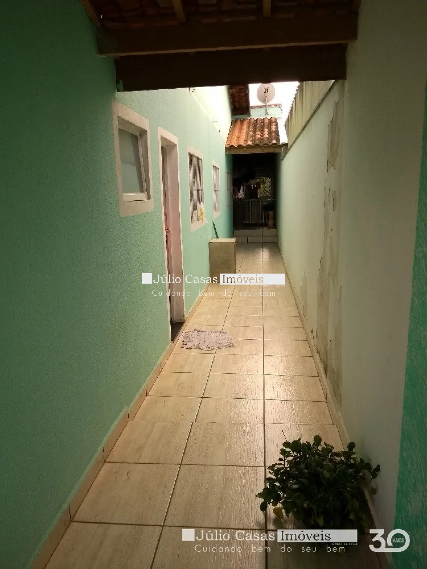 Casa com sala ampla com sanca em gesso com luminárias embutidas em leds, revestimento em piso frio, banheiro social com piso frio com soleira e pia em granito com bacia em louça, copa cozinha com armários modulados com 12 portas com pia e bancada com cook top e piso frio, 2 dormitórios sendo 1 com suíte ambos em piso frio, suíte com banheiro com piso frio com soleira e pia em granito com bacia em louça, lavanderia e área gourmet no fundo revestida em piso frio com churrasqueira pré moldada e garagem coberta para 2 carros.