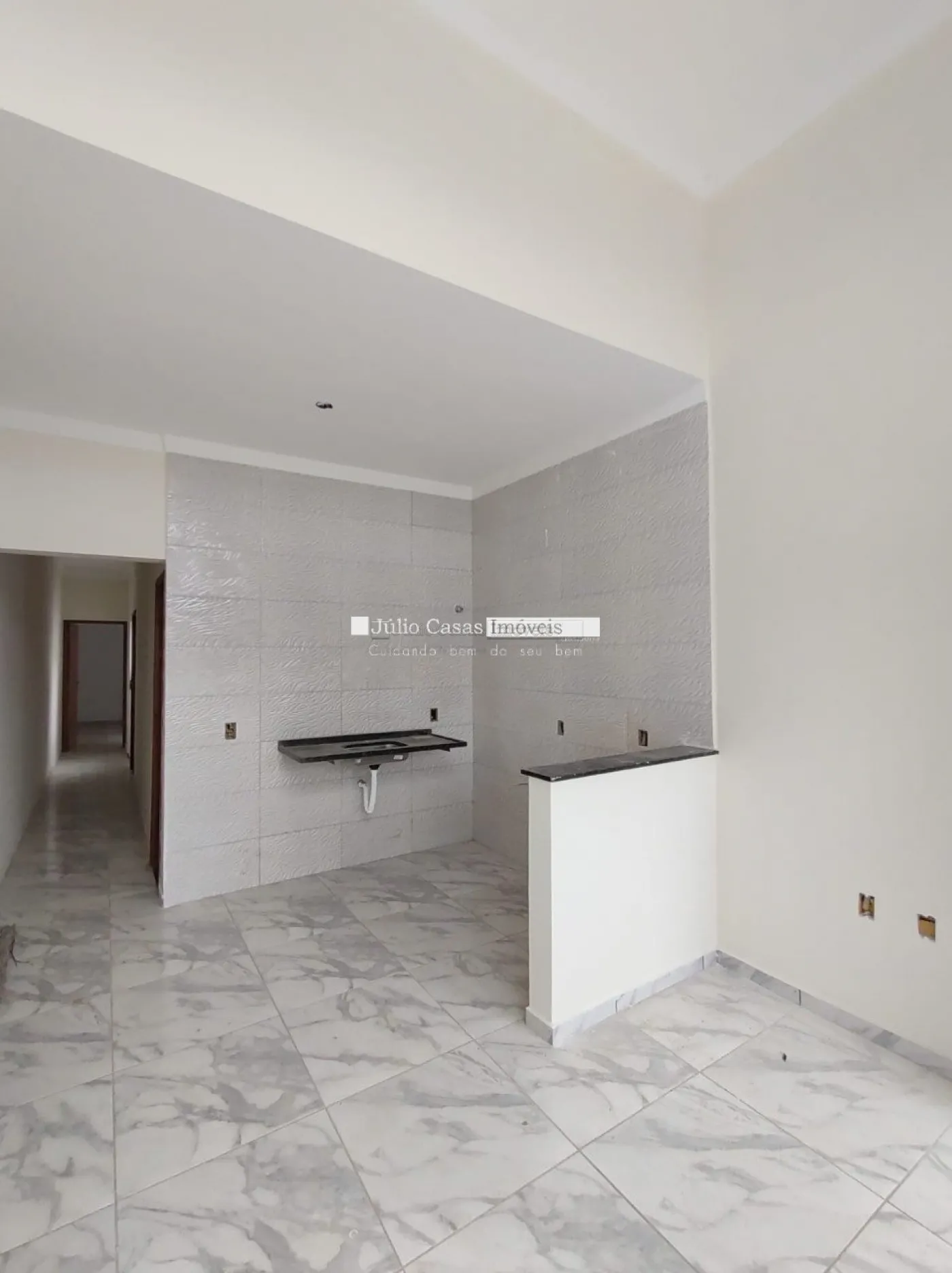 Casa com excelente acabamento, sala com pé direito 4 m, cozinha integrada em estilo aberto com a sala, área de serviço, 2 dormitórios amplos 1 sendo suíte, wc social, banheiros com nicho, gabinetes e cuba sobreposta, pisos em acabamento cerâmico, garagem para 1 veículo.