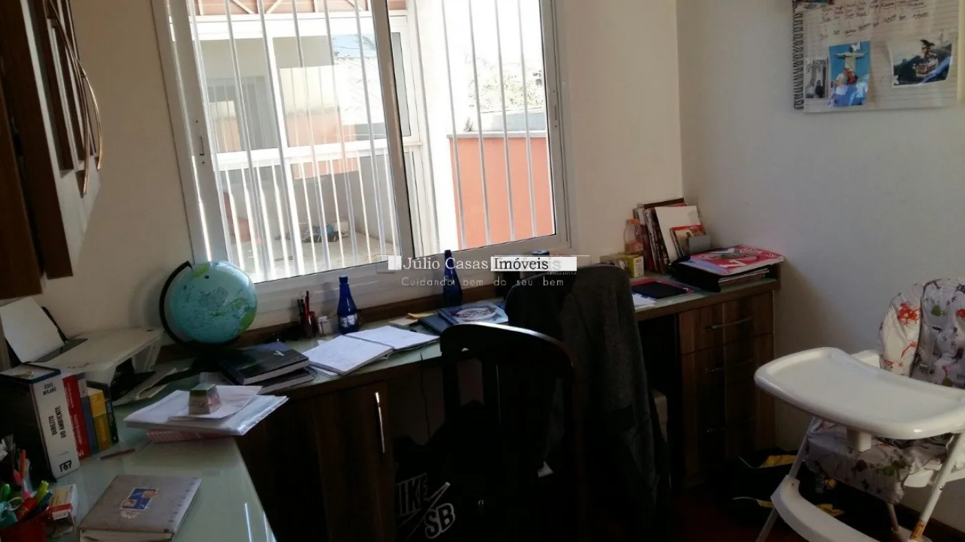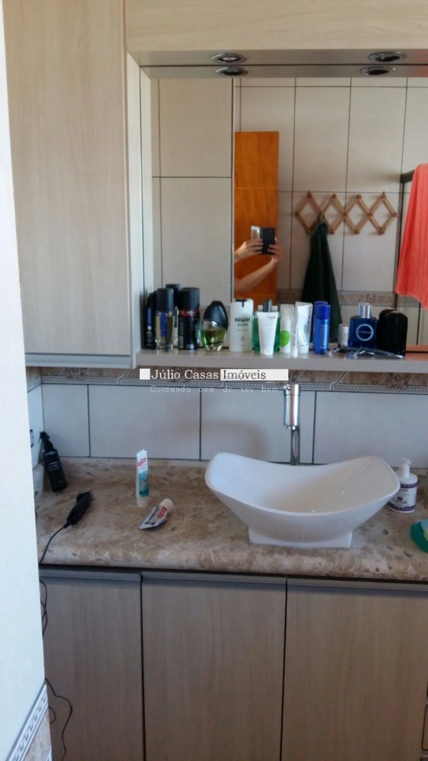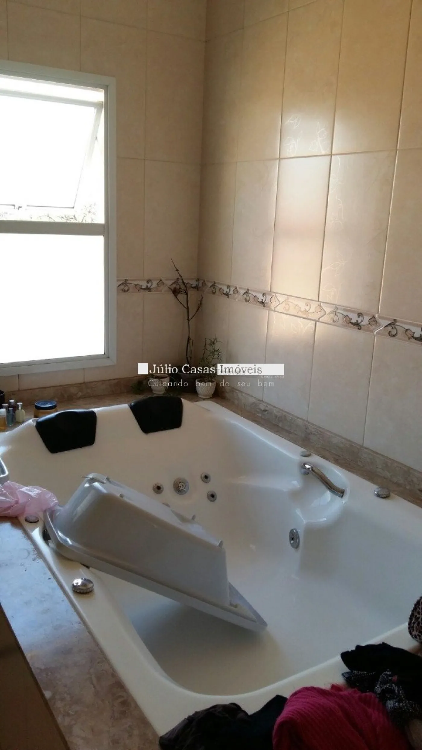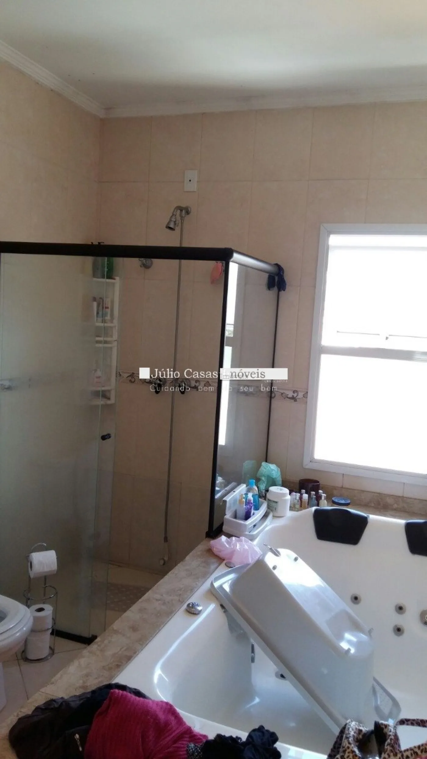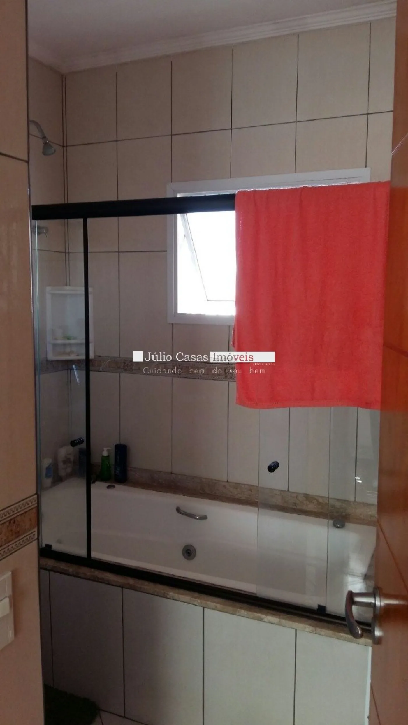 Sobrado totalmente murado e com portão automático, oferecendo segurança e privacidade. A residência conta com três dormitórios, sendo uma suíte master equipada com hidromassagem dupla e dois dormitórios adicionais que compartilham um banheiro social com banheira de hidromassagem simples. Todos os quartos possuem armários embutidos.