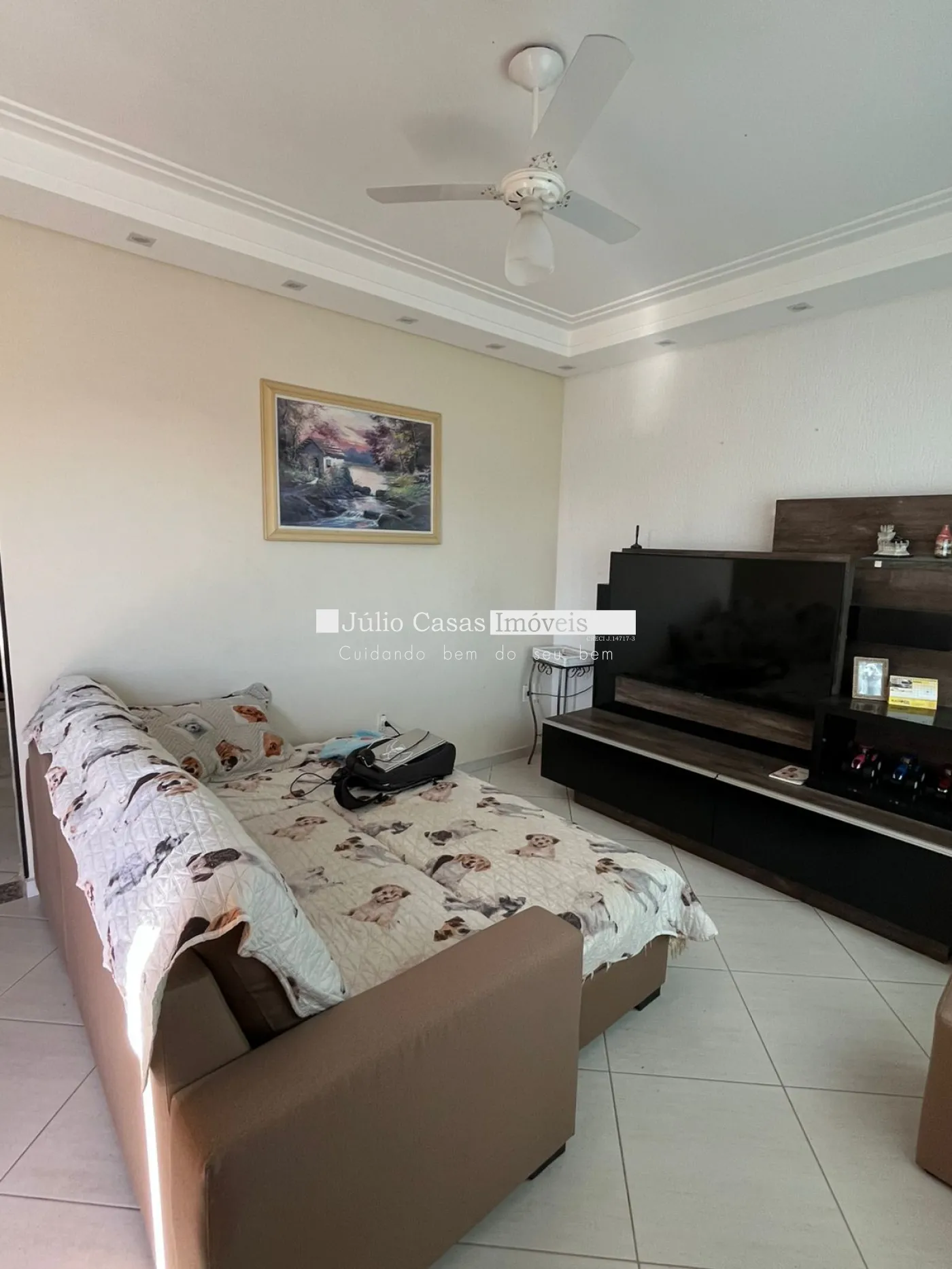 - Sala de TV aconchegante, equipada com ventilador de teto.
