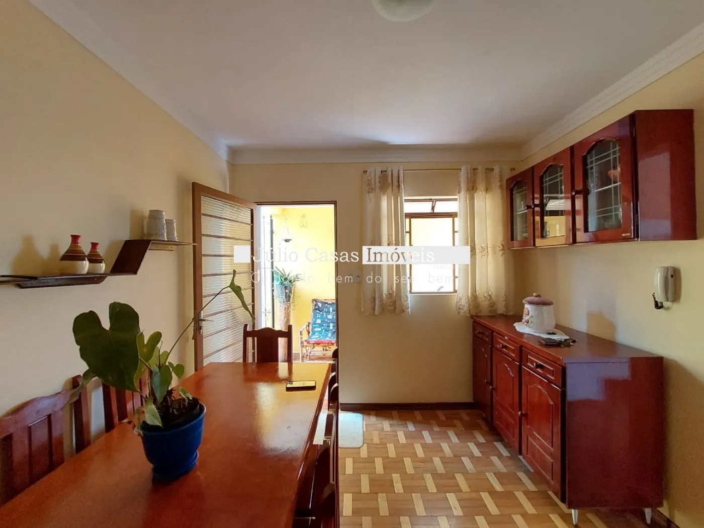 primeiro pavimento com sala, cozinha ampla, 3 quartos e wc social.