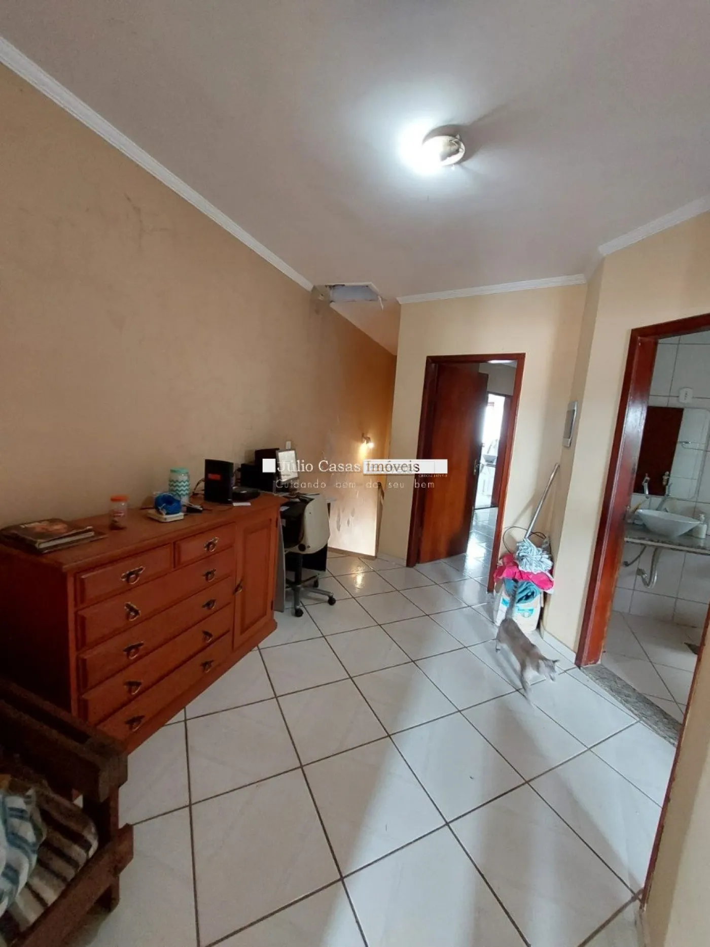Casa em rua muito tranquila, próxima de avenida com inúmeros comércios. Casa tem 3 dormitórios com armários, sendo 1 suíte, ar condicionado em 2 quartos, 1 banheiro social com gabinete e box em vidro, sala de estar, cozinha ampla com armários, pequeno quintal, edícula no fundo com banheiro e uma pequena lavanderia, garagem com 3 vagas, sendo 1 coberta. Sala e quartos com laminado