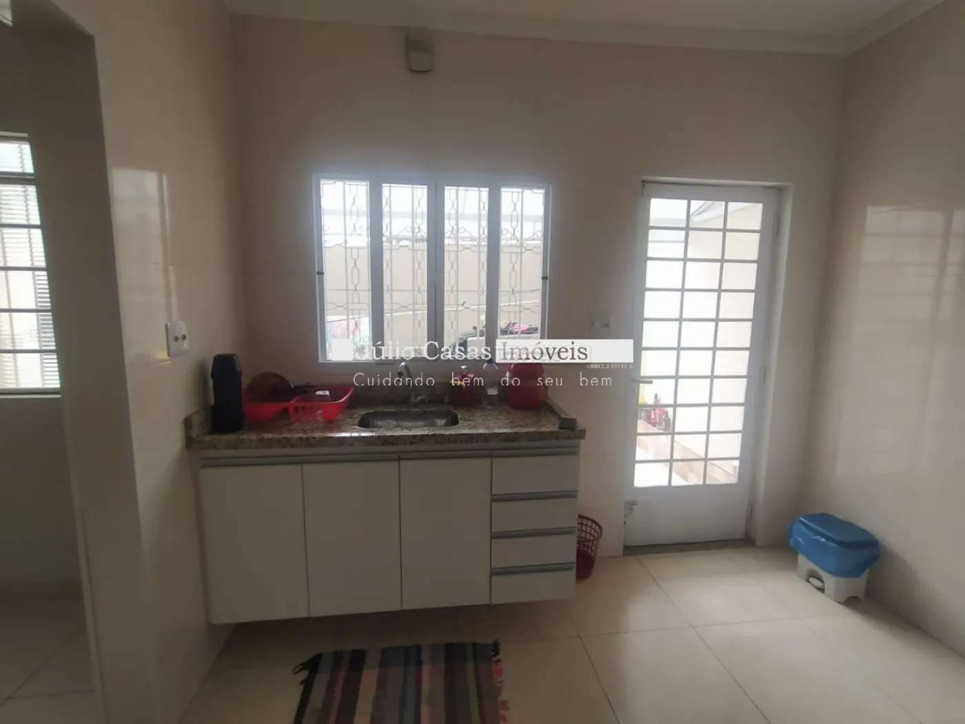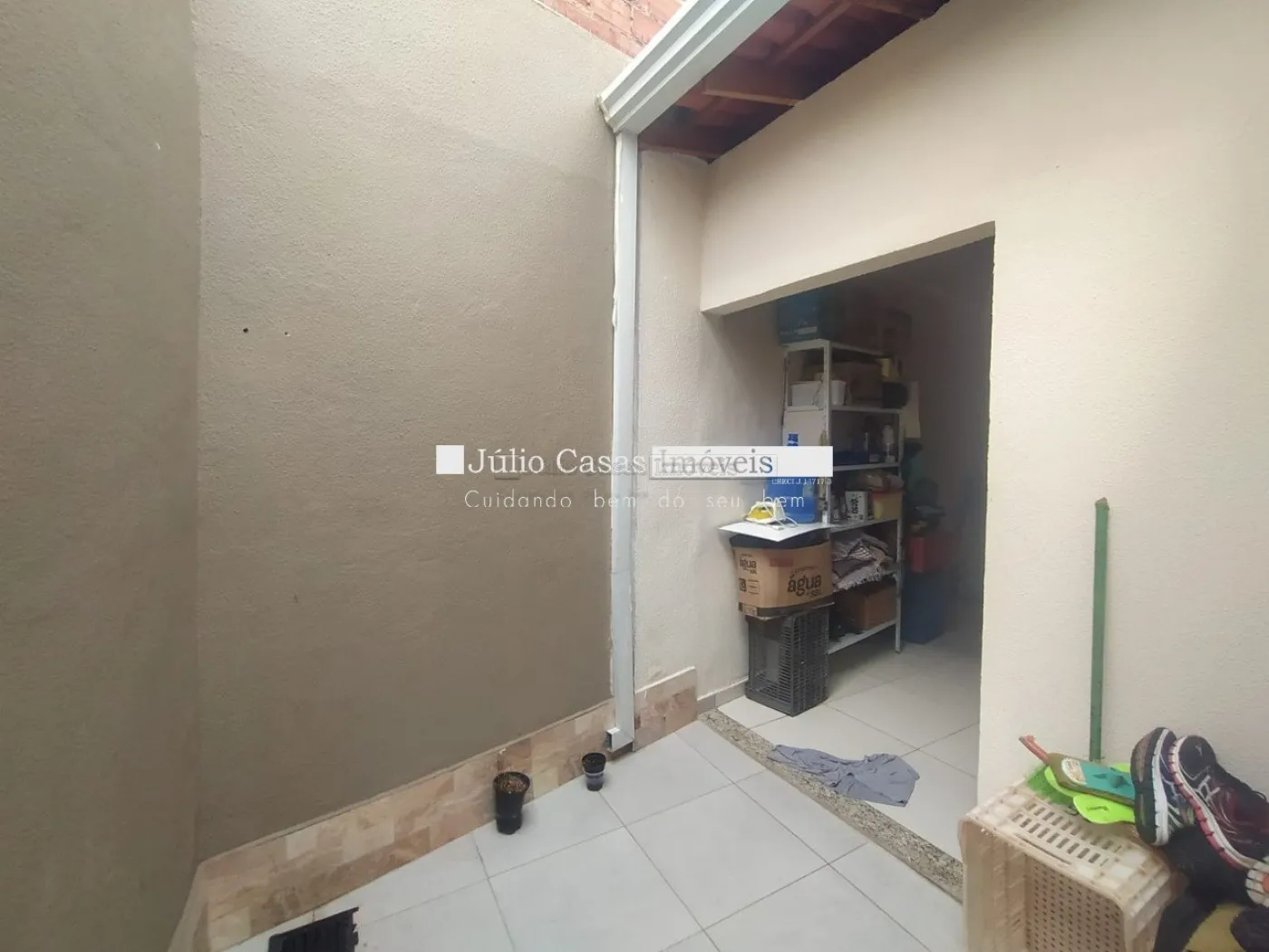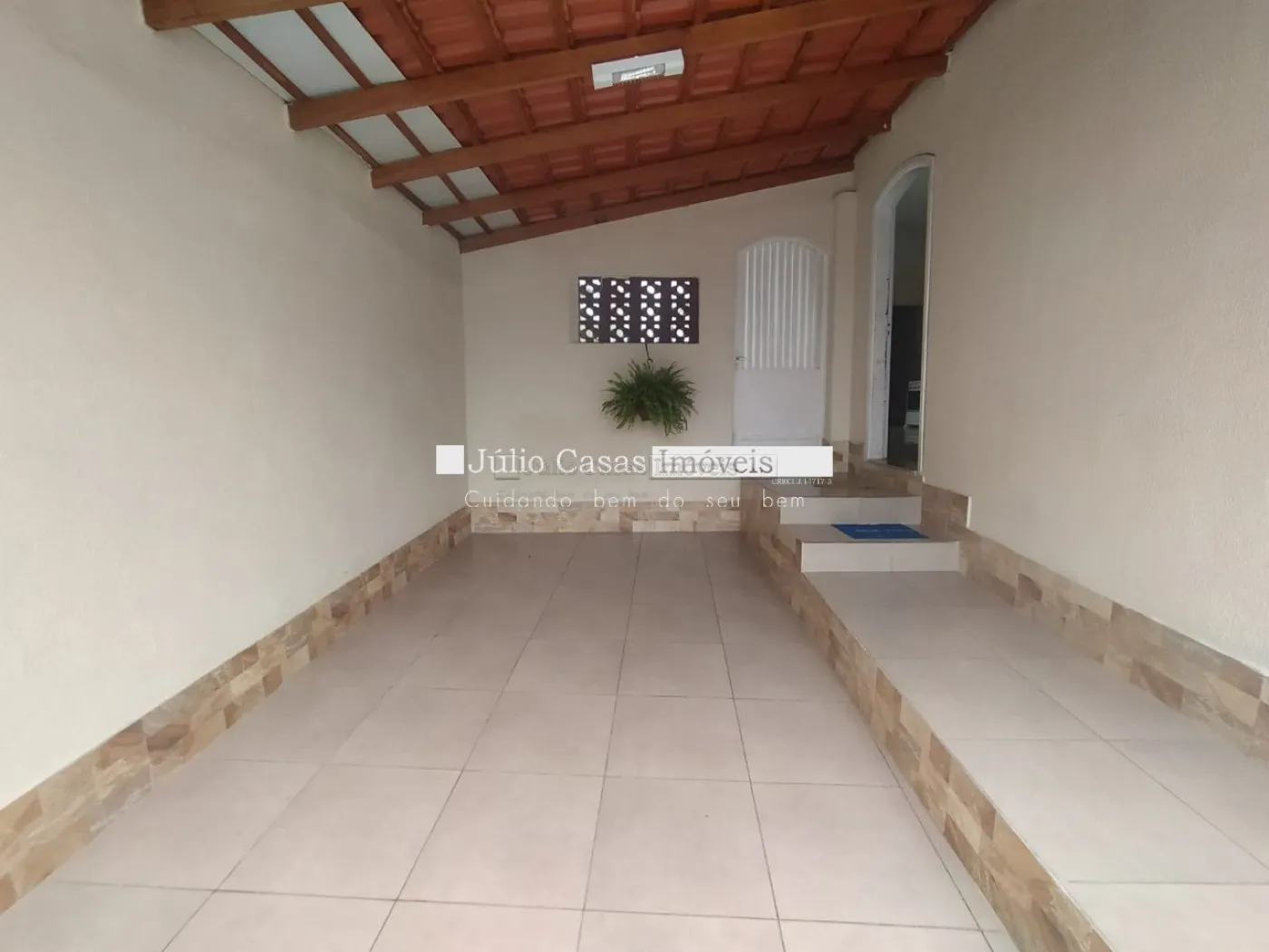 A casa contém: dois quartos, um banheiro social, cozinha Azulejada até o teto, com pia e gabinete, duas amplas salas (jantar e TV), lavanderia, quintal, garagem com 01 vaga coberta e uma vaga descoberta. Piso cerâmico em toda a casa, incluindo garagens e quintal.