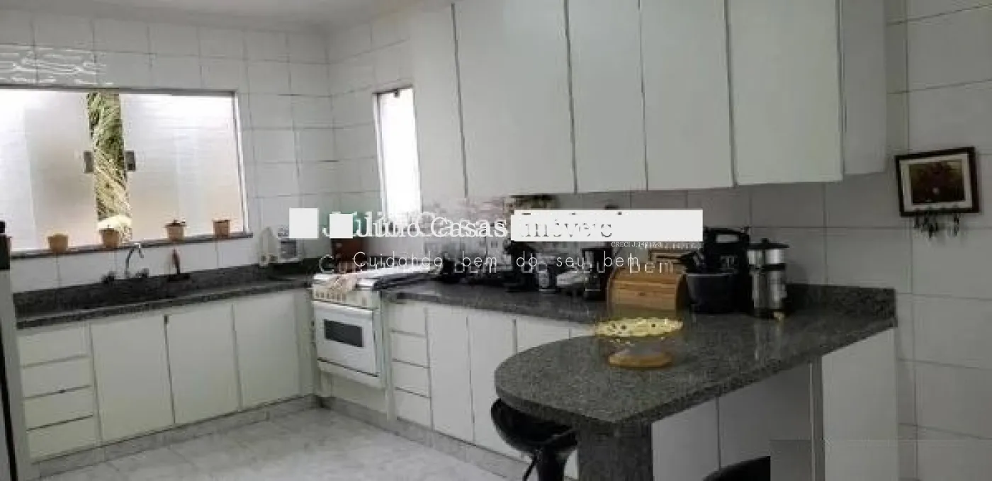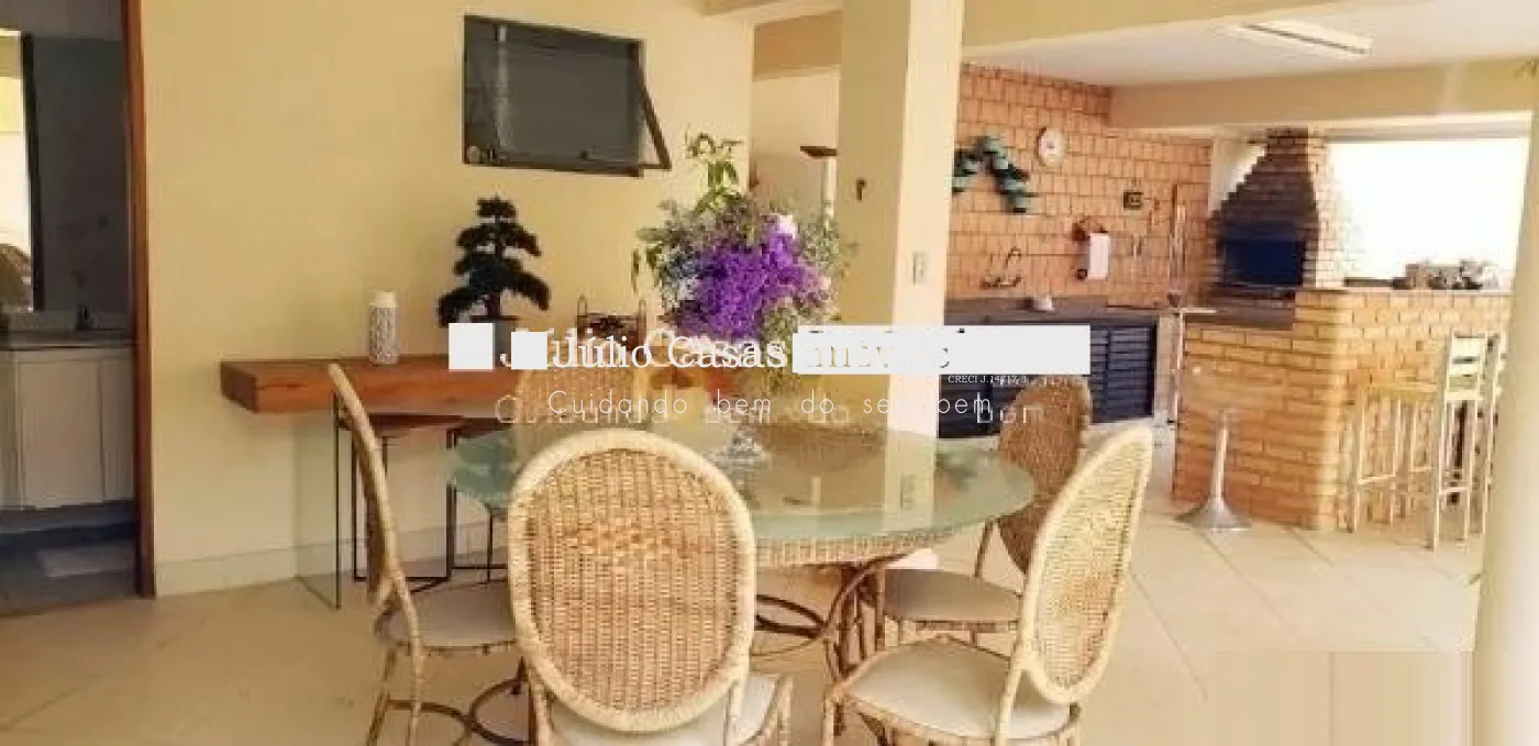 Casa com sala de estar, sala de jantar, sala de tv e escritório. cozinha com armários, despensa, lavanderia, edícula com churrasqueira, pia, wc e quarto. quintal grande , 4 quartos 1 sendo suíte com closet e banheiros com duas cubas e hidro. Casa toda m piso cerâmico ambientes arejados e aluminados. banheiros com box em vidro e gabinetes. Garagem para 4 veículos sendo 2 cobertos.