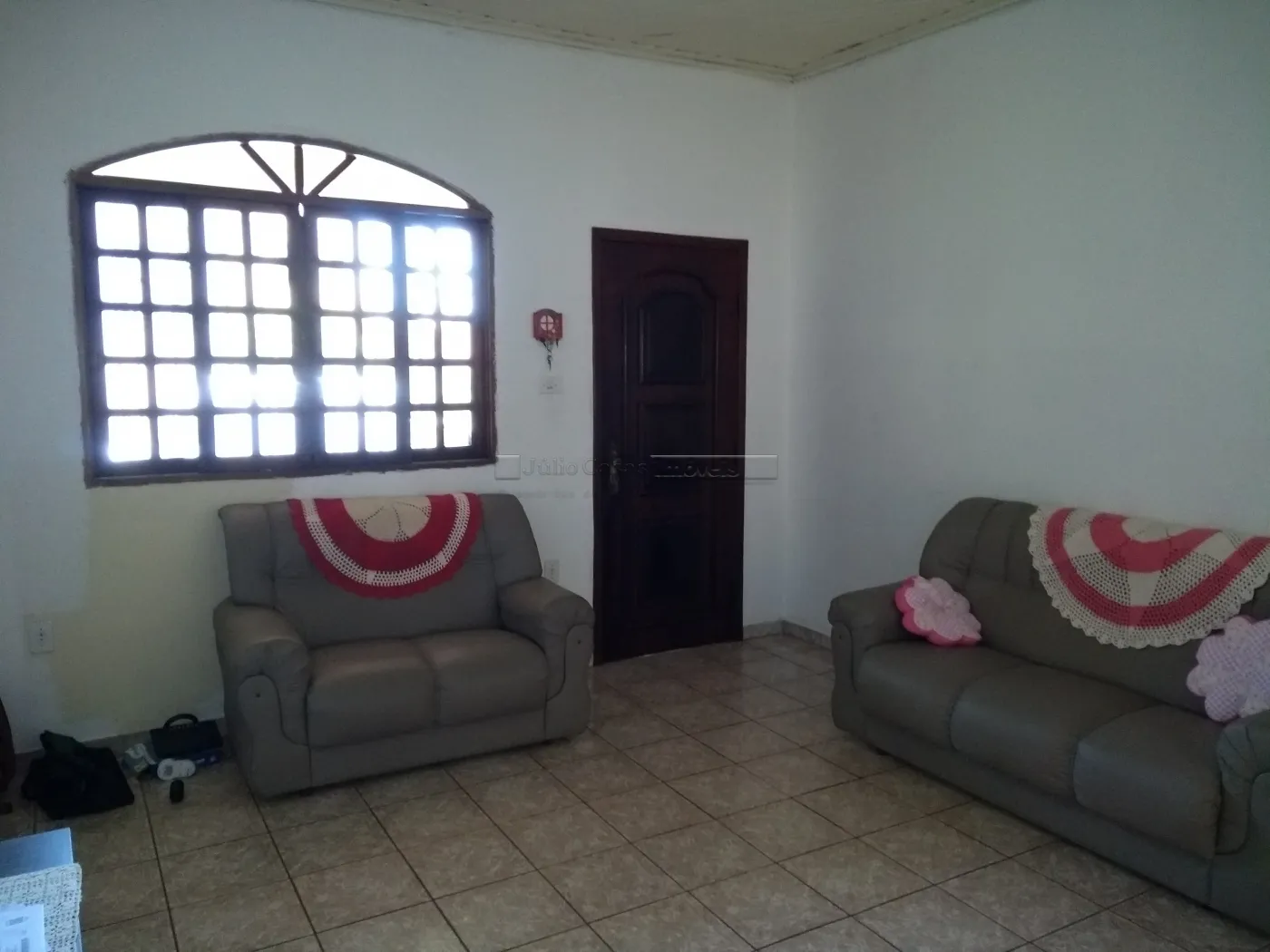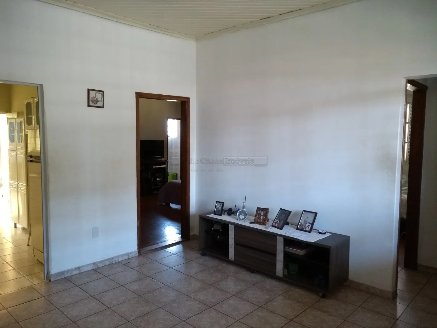 Sala de estar: Espaçosa, com piso cerâmico e janelas e portas em madeira.