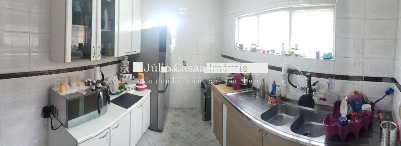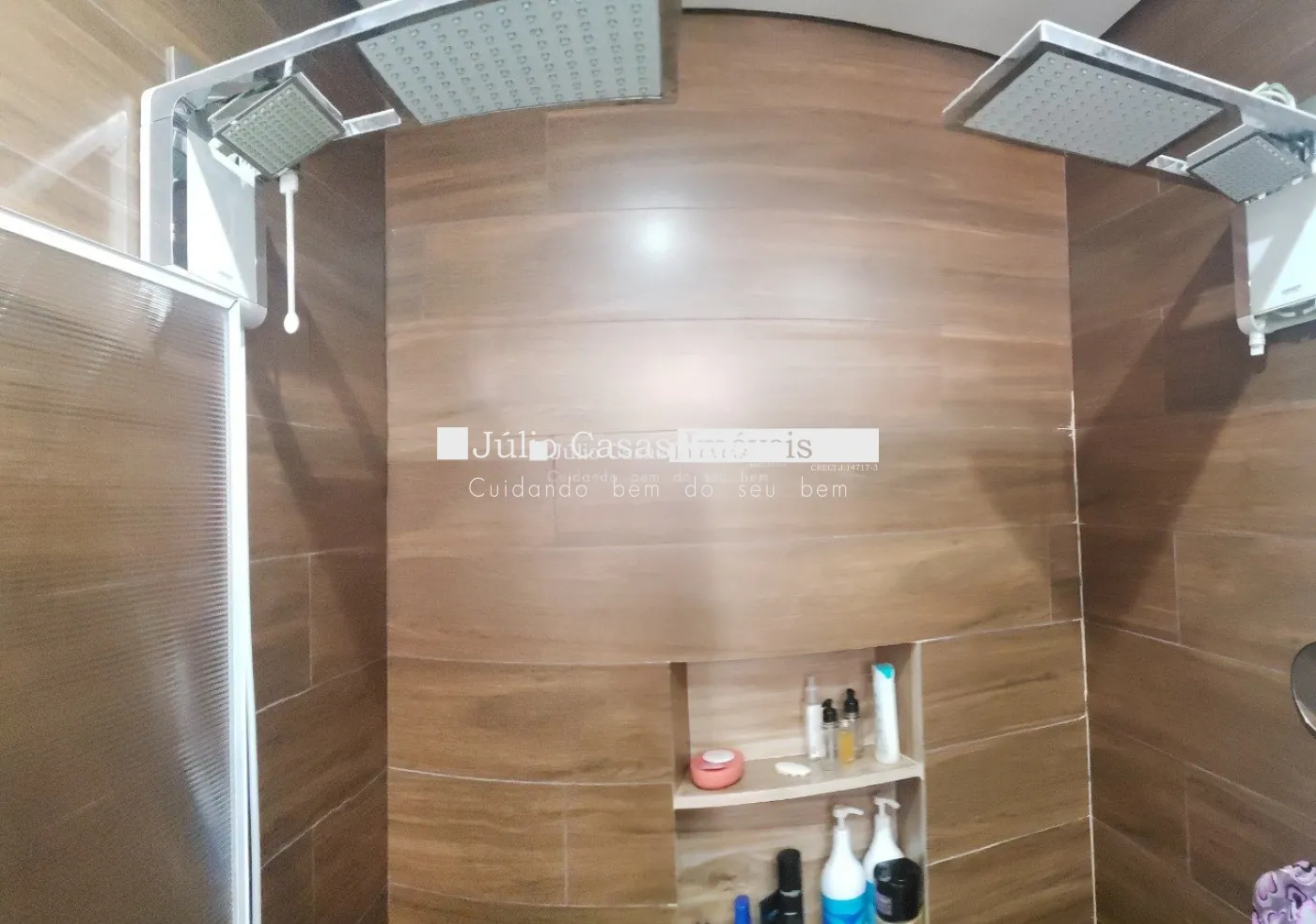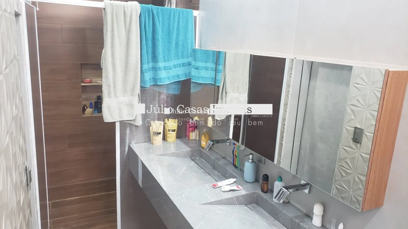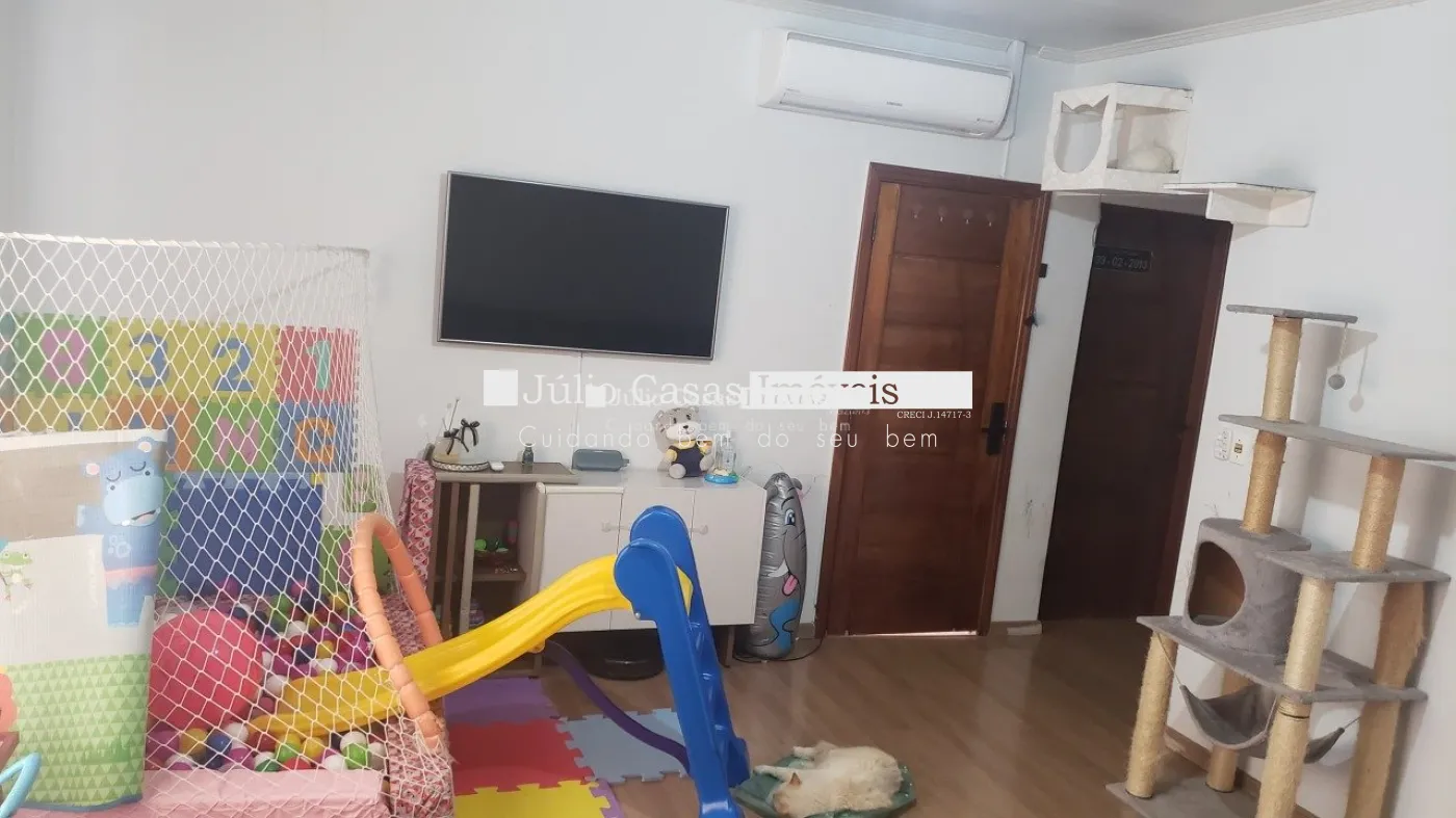 Sobrado com 3 dormitórios sendo 1 suíte com hidro e modulados, sala 2 ambientes, sala de tv no piso superior, ampla cozinha com armários modulados, escritório, banheiro social, área de serviço, quintal com churrasqueira, escada em granito, piso frio em toda casa, despensa, aquecedor solar, garagem coberta para 2 carros, portão automático, rua sem saída.