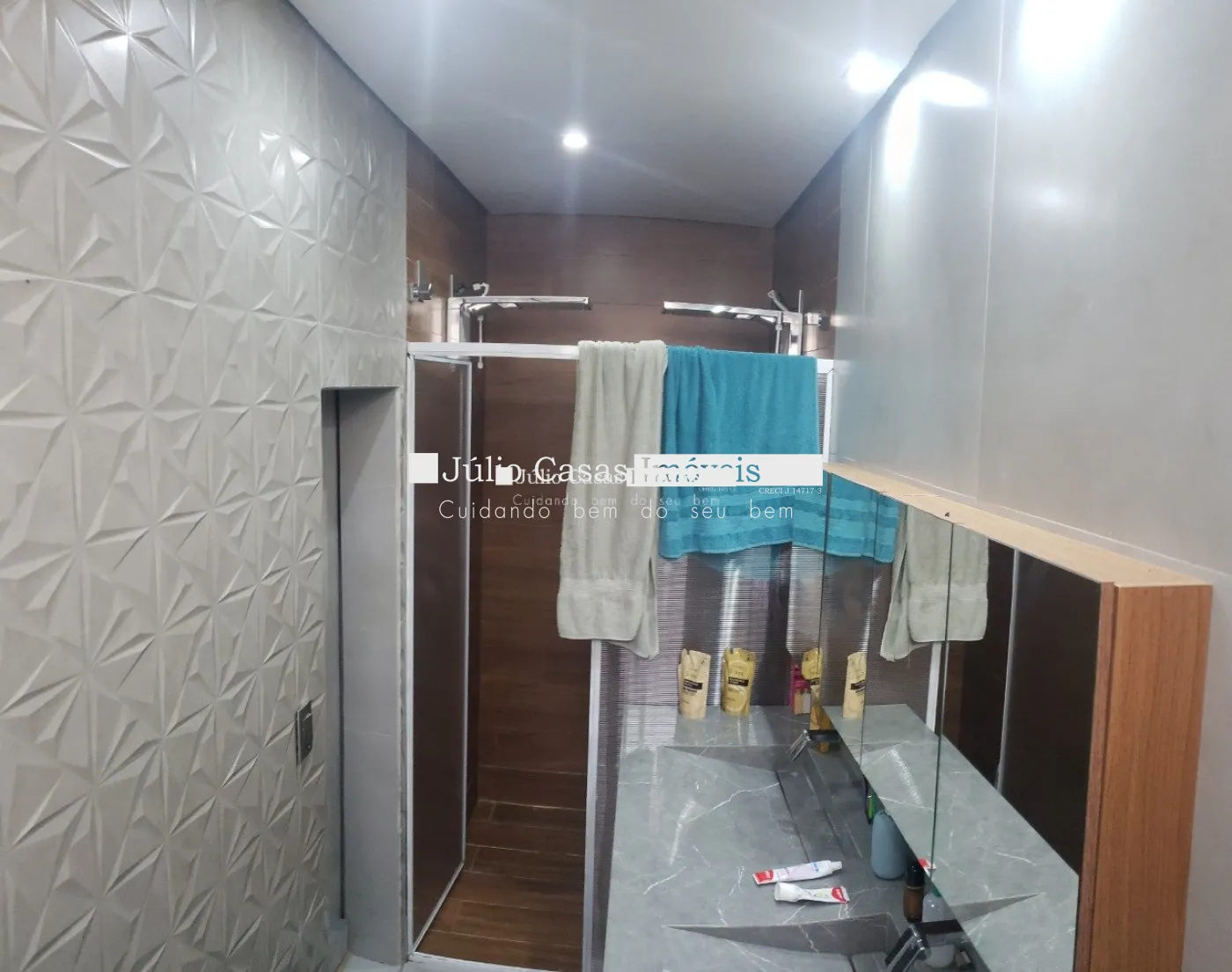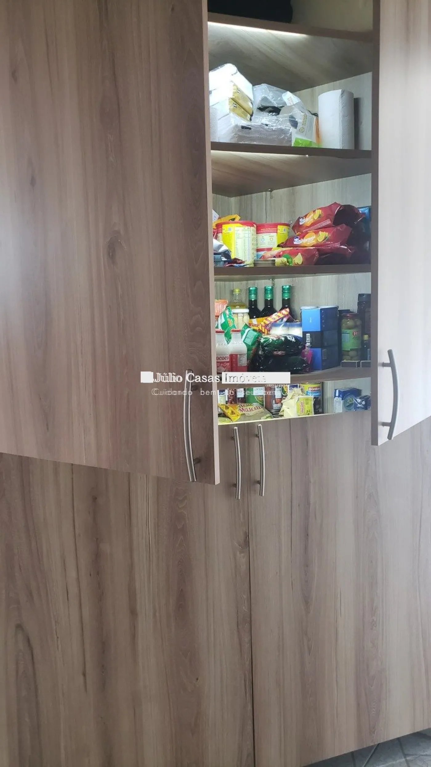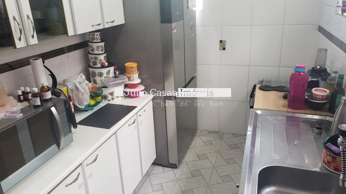 Sobrado com 3 dormitórios sendo 1 suíte com hidro e modulados, sala 2 ambientes, sala de tv no piso superior, ampla cozinha com armários modulados, escritório, banheiro social, área de serviço, quintal com churrasqueira, escada em granito, piso frio em toda casa, despensa, aquecedor solar, garagem coberta para 2 carros, portão automático, rua sem saída.