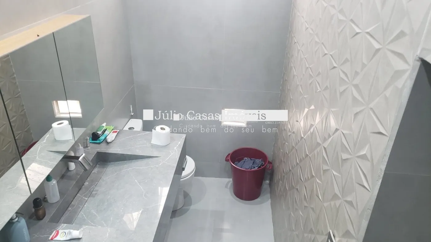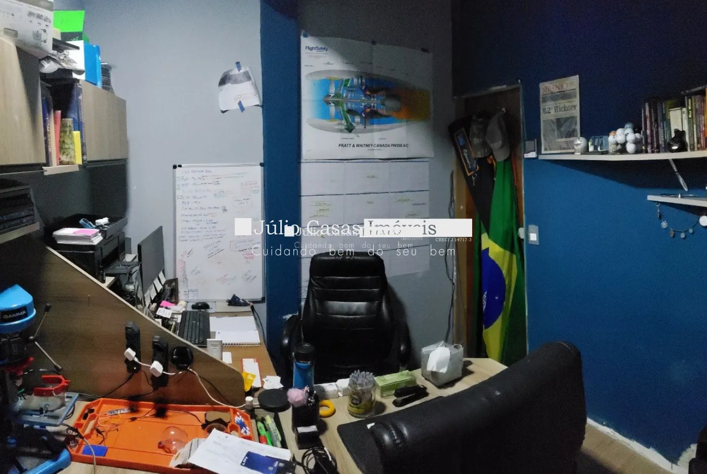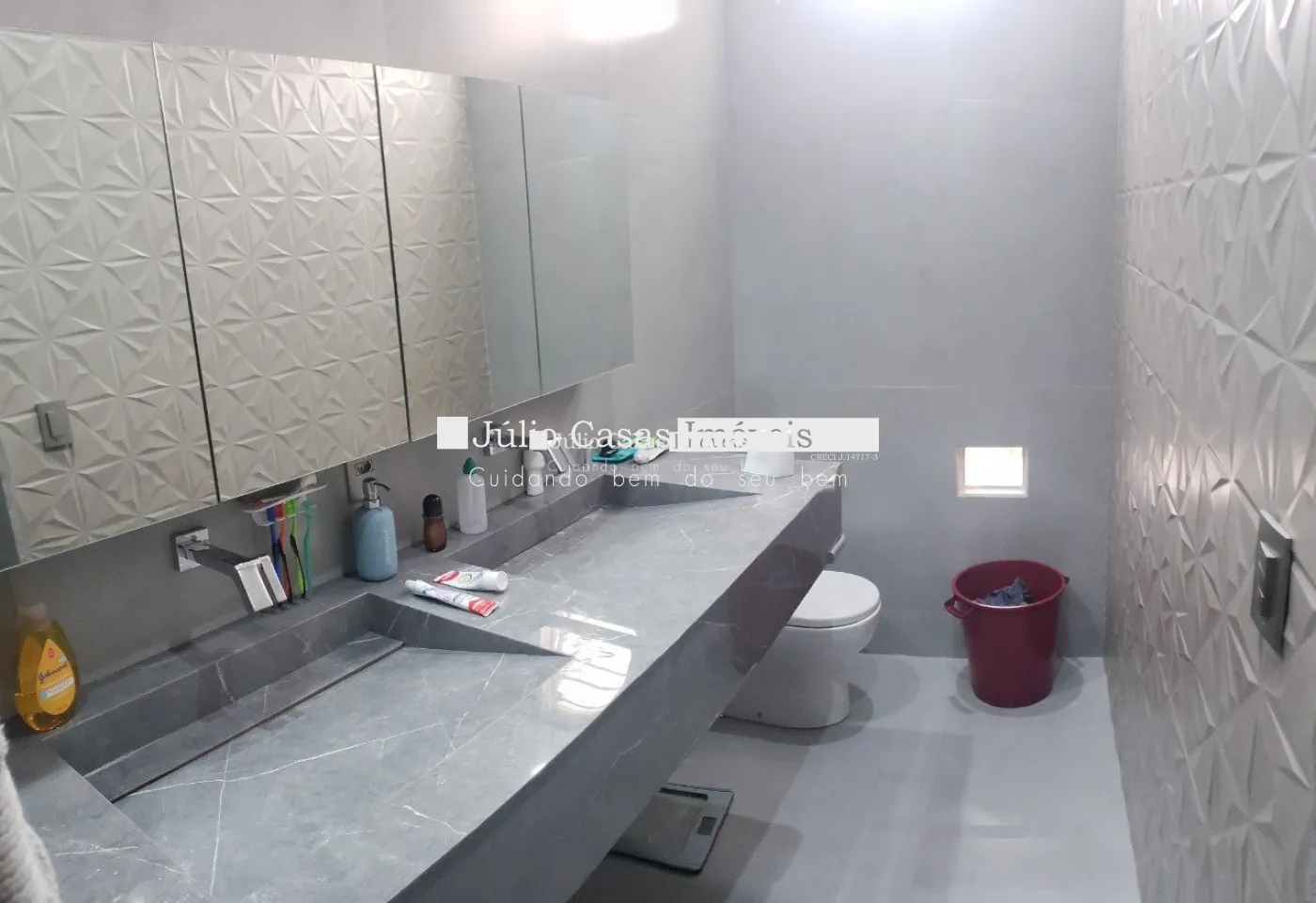 Casa com sala, escritório, copa e cozinha ampla com despensa, lavabo, 2 suítes amplas quintal com churrasqueira, Garagem para 3 veículos. Sala e dormitórios e escritório com ar condicionado