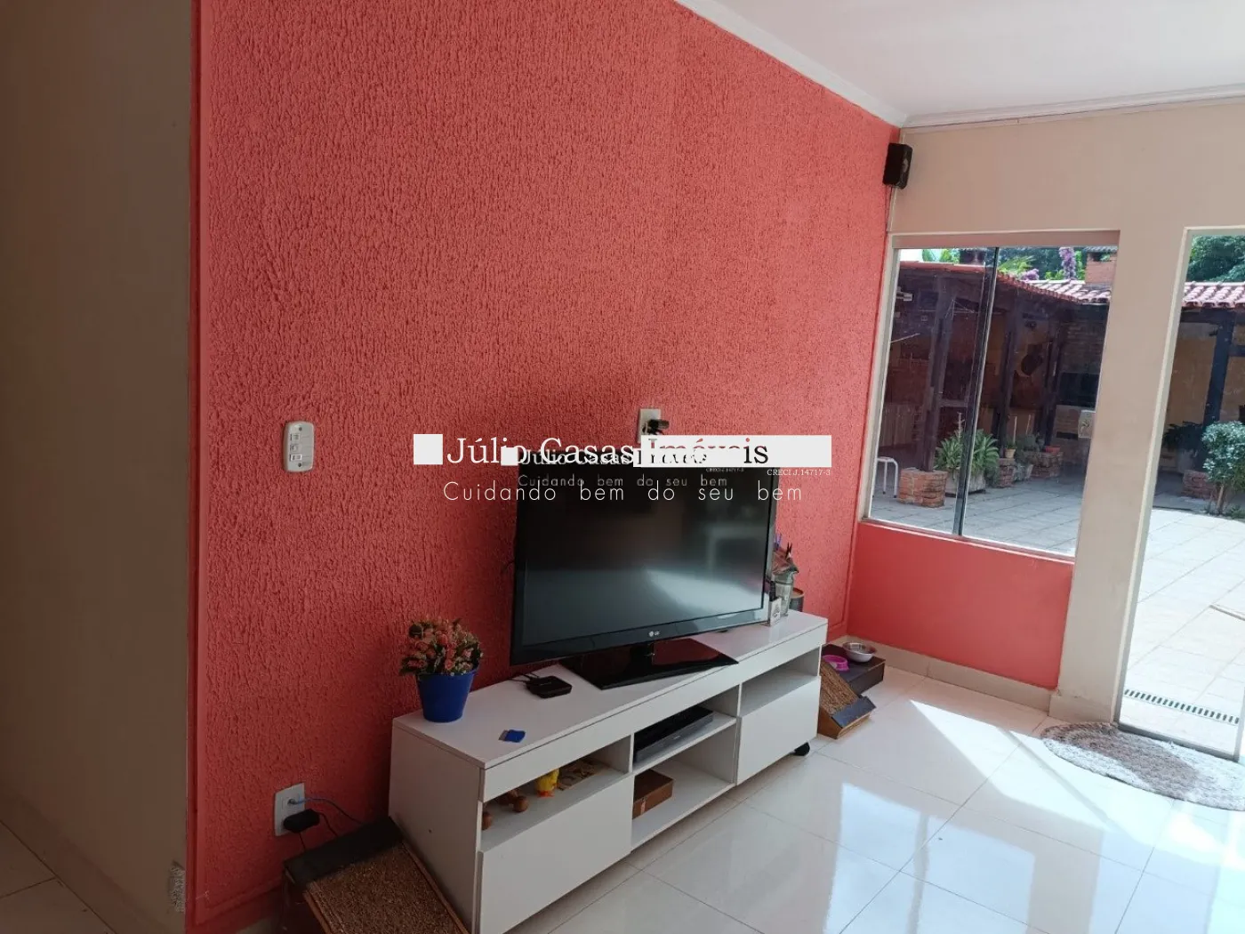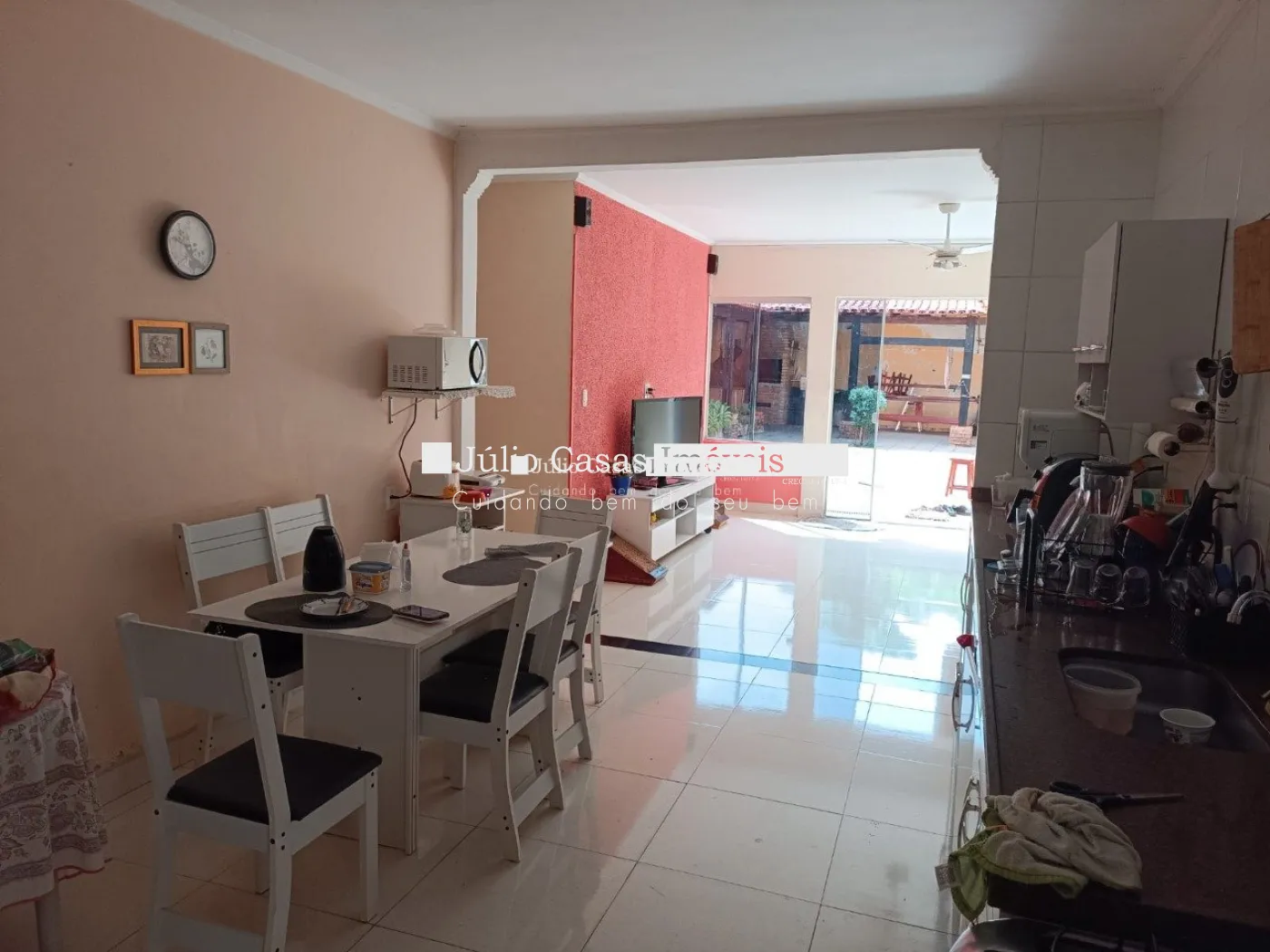 Casa térrea com 3 dormitórios, sendo 1 suíte, dormitórios com armários embutidos, 1 banheiro social, cozinha americana com modulados, sala de estar, quintal com área gourmet com pia de apoio com bancada, entrada lateral, garagem para 2 carros cobertos. Toda casa em piso cerâmico, box em vidros nos banheiros.