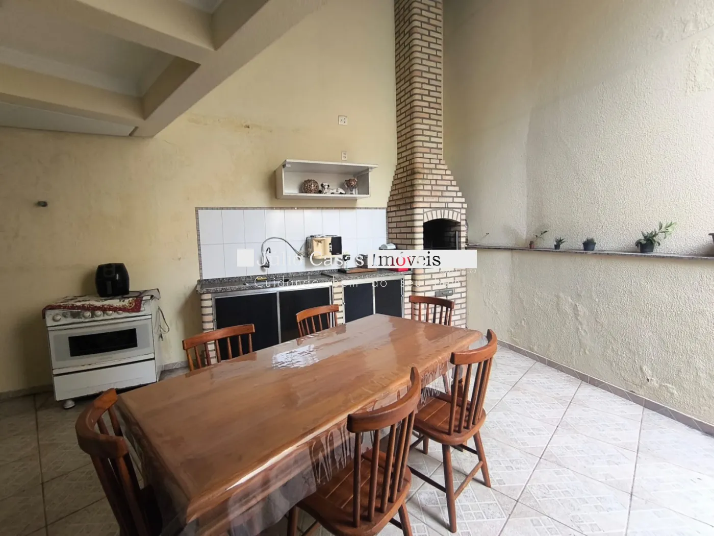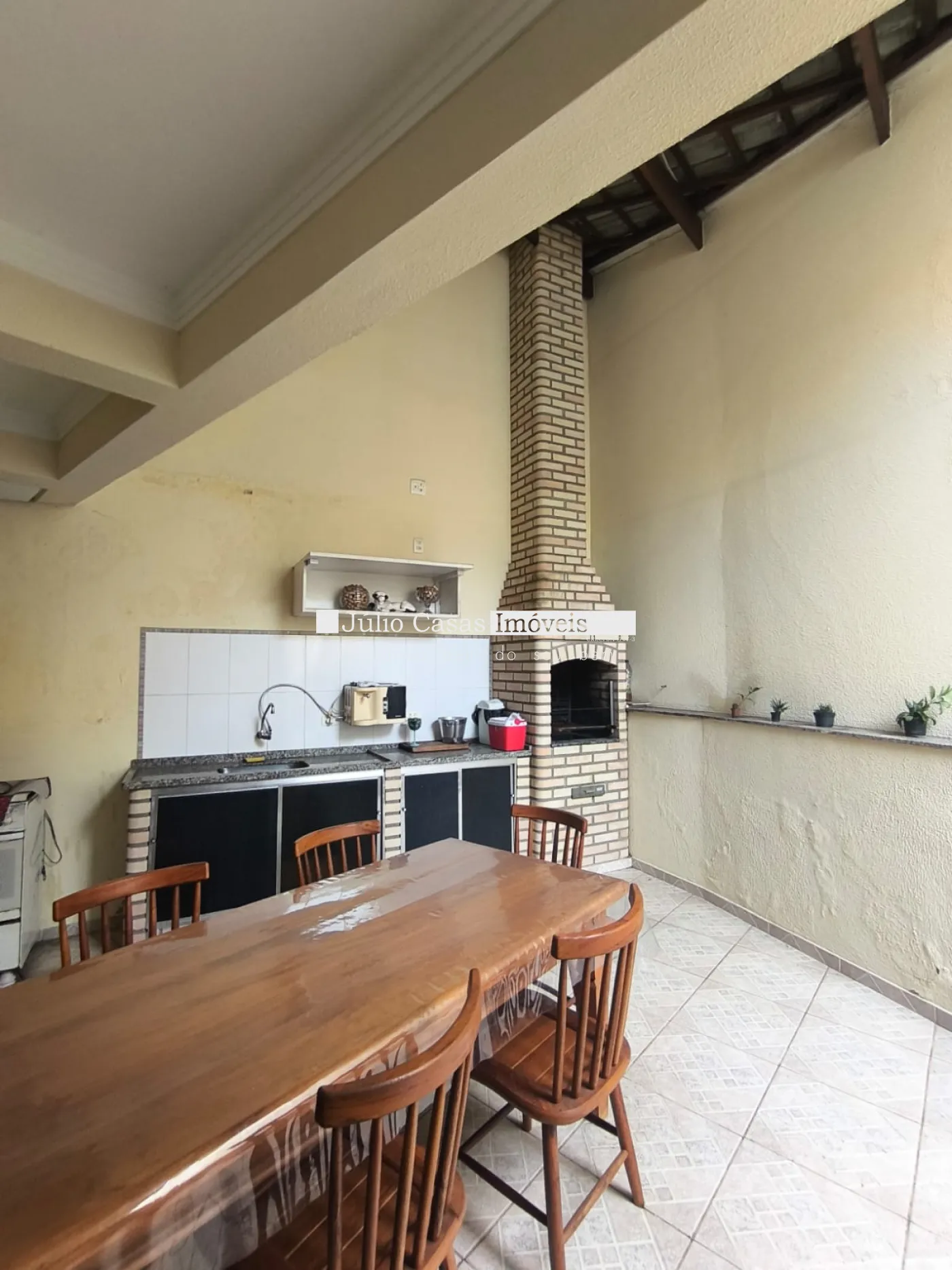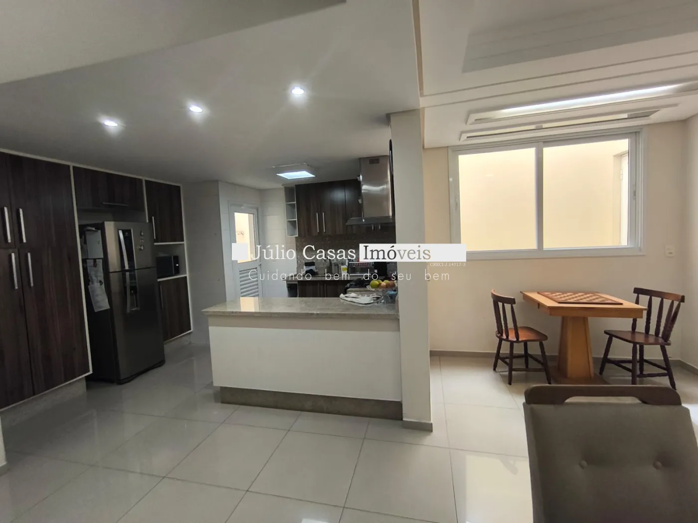 Piso inferior possui uma cozinha planejada, sala de jantar com porta de correr em vidro temperado que dá acesso a área gourmet, com churrasqueira.