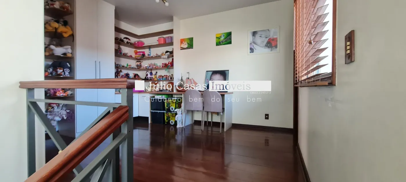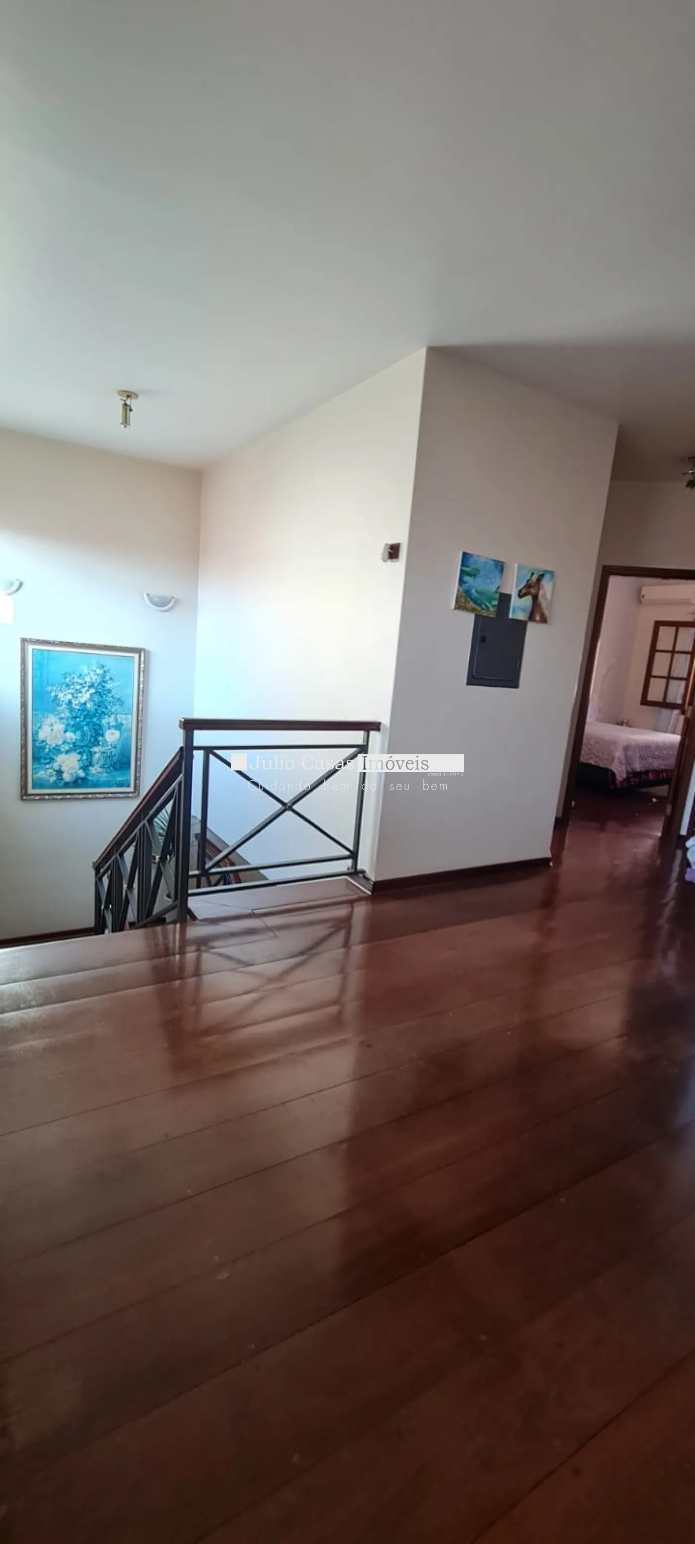 ? Conforto no Andar Superior: Escada com degraus revestidos em madeira e corrimão em aço tubular que leva a um amplo hall, convertido em uma aconchegante área de estudo. Três dormitórios, sendo uma suíte master com hidromassagem, closet e porta balcão com acesso à sacada. Todos os dormitórios possuem armários modulados e pisos revestidos em assoalho de madeira.