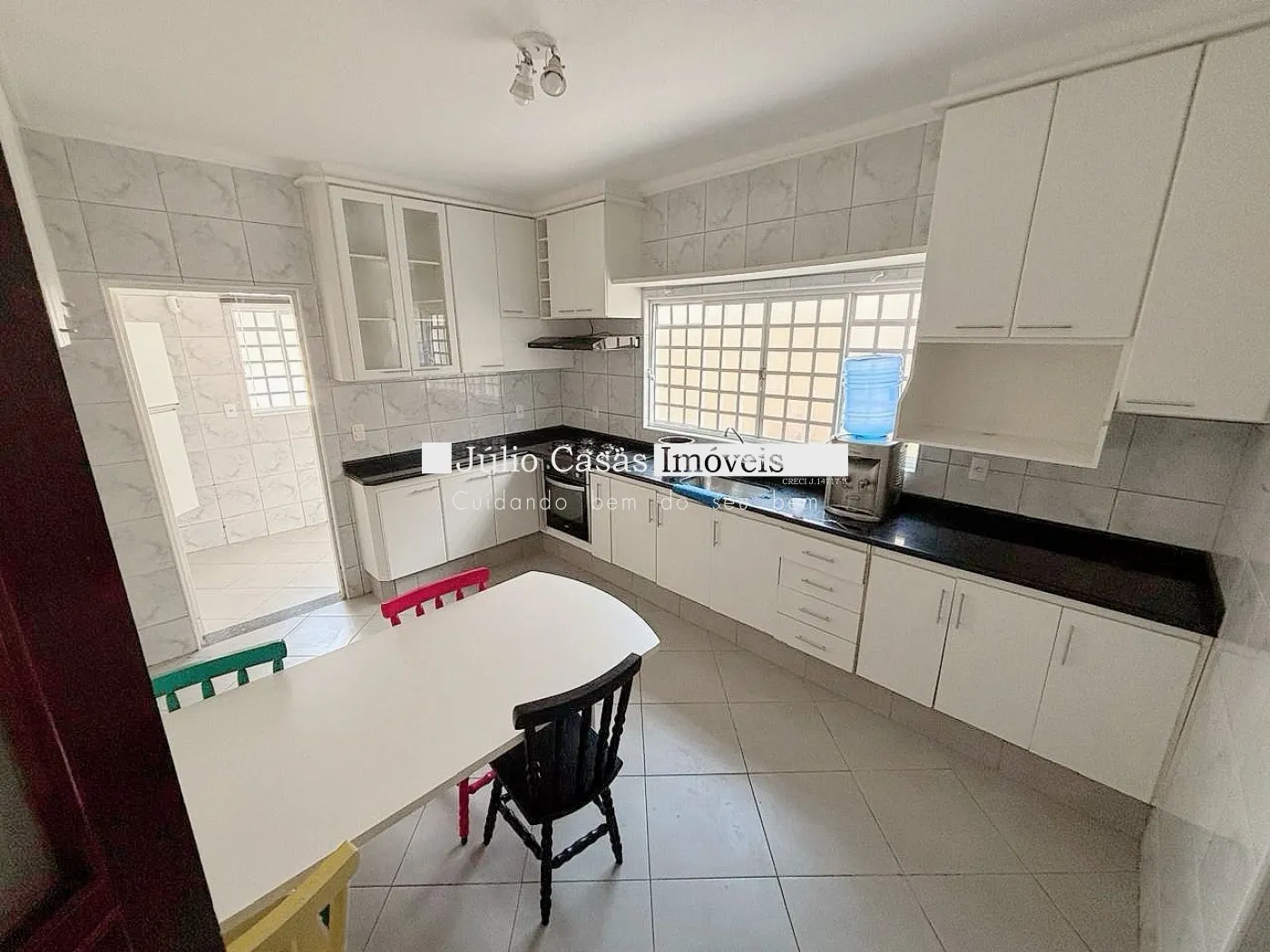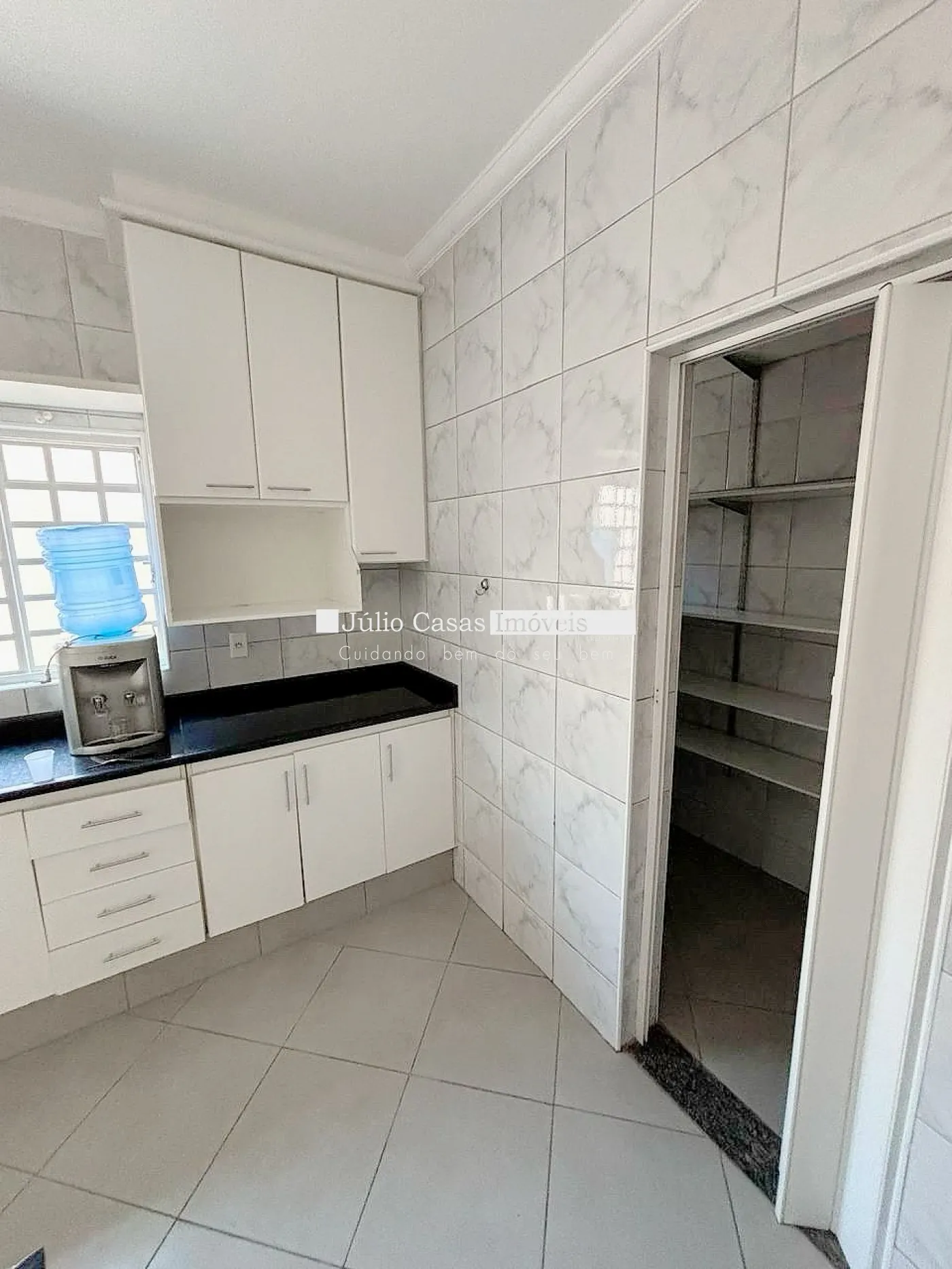 cozinha com armários, despensa, lavanderia, edícula com churrasqueira, pia, wc e quarto.