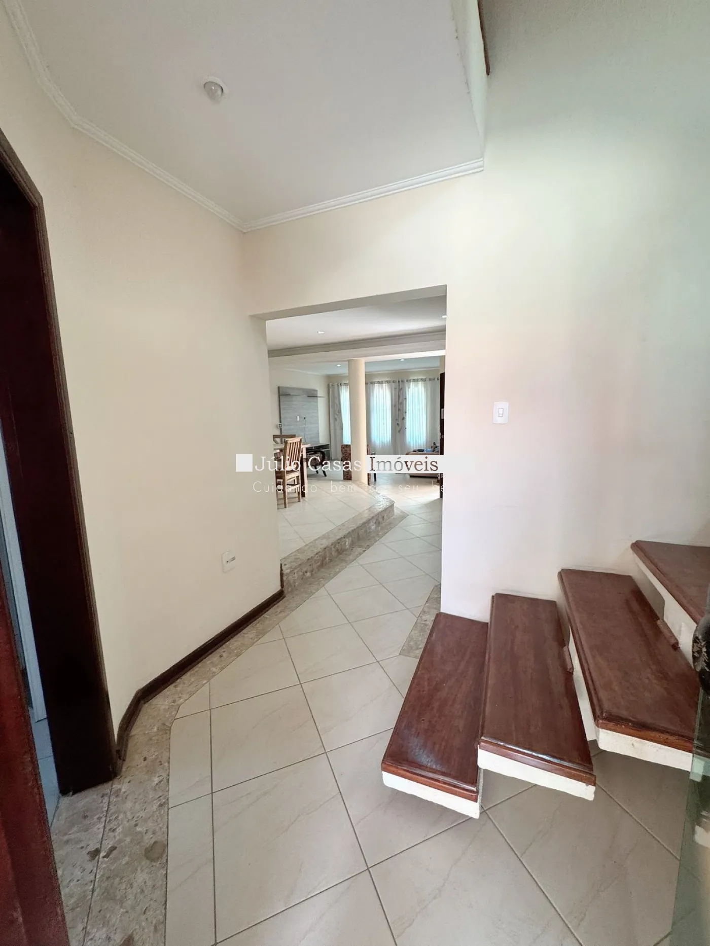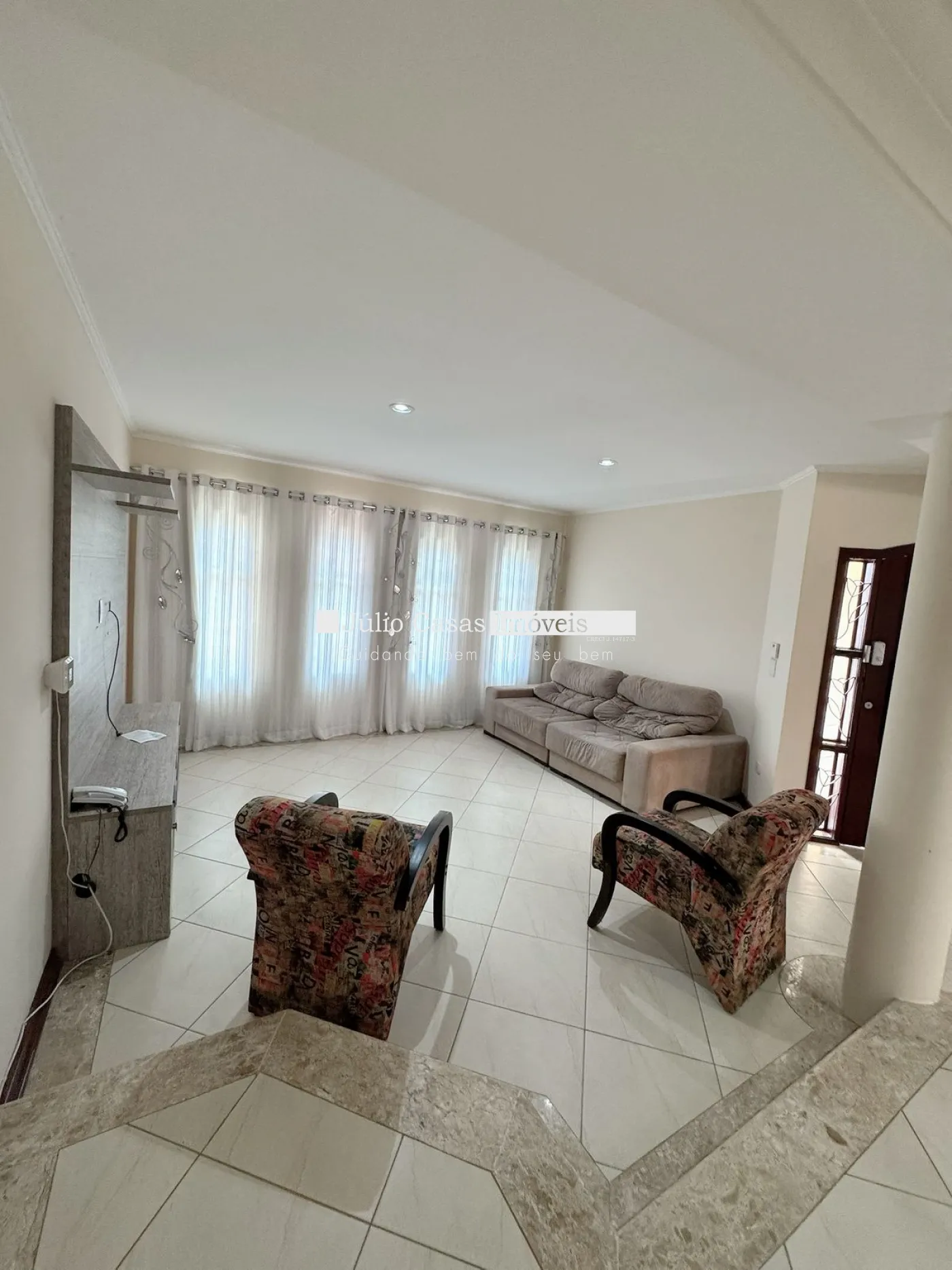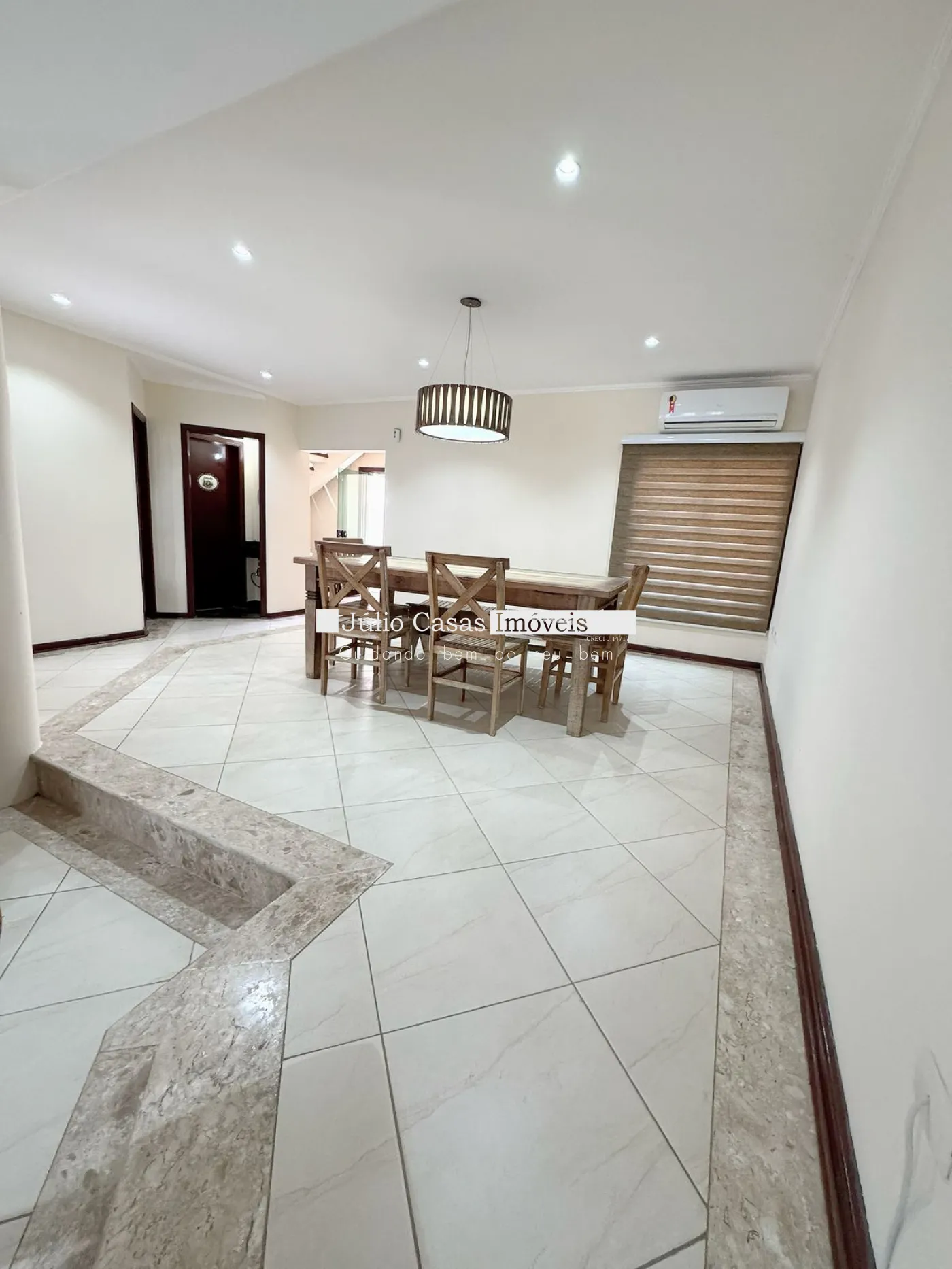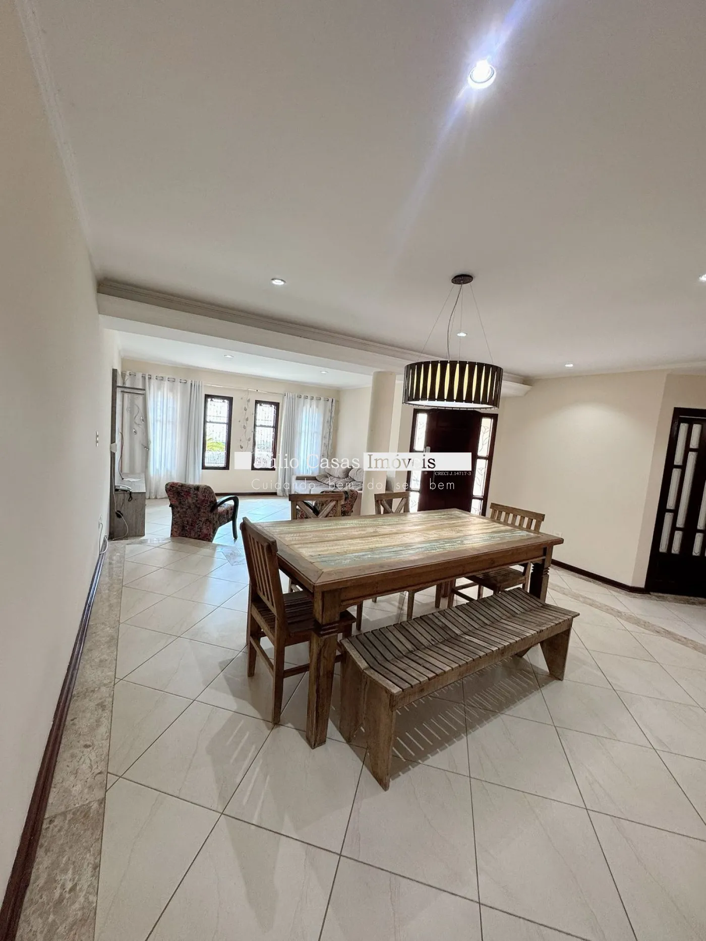 Casa com sala de estar, sala de jantar, sala de tv e escritório.