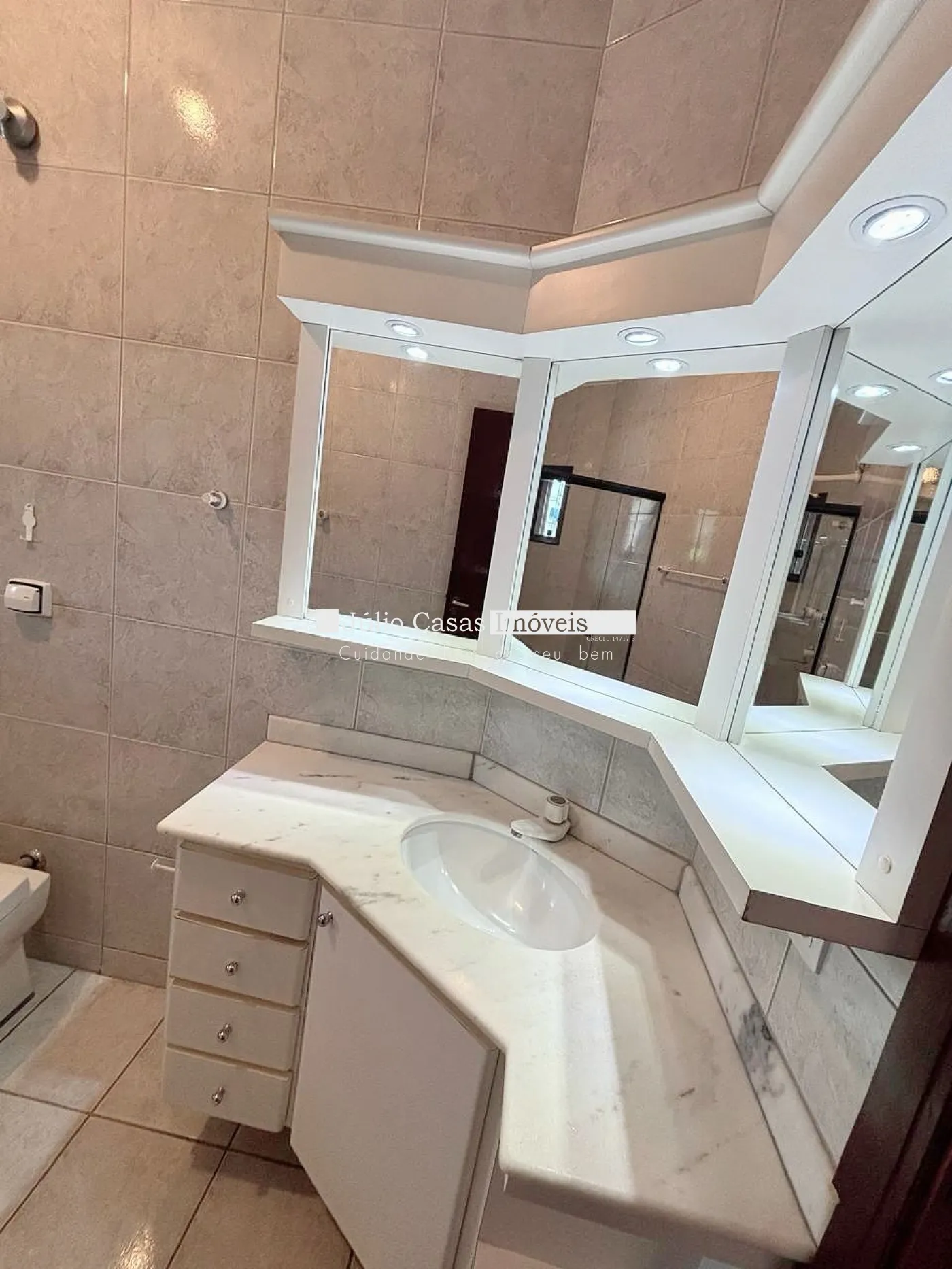banheiros com box em vidro e gabinetes. Garagem para 4 veículos sendo 2 cobertos.